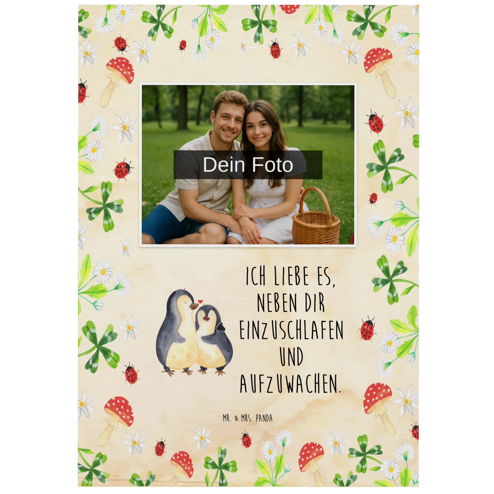 Die personalisierte Foto Postkarte mit den niedlichen Pinguinen Einschlafen von Mr. & Mrs. Panda ist das perfekte Geschenk für jeden Anlass, der mit Liebe, Zuneigung und Herzlichkeit gefeiert wird. Ob Valentinstag, Hochzeitstag oder Jahrestag – diese besondere Postkarte trägt deine ganz persönlichen Botschaften und Erinnerungen in sich.