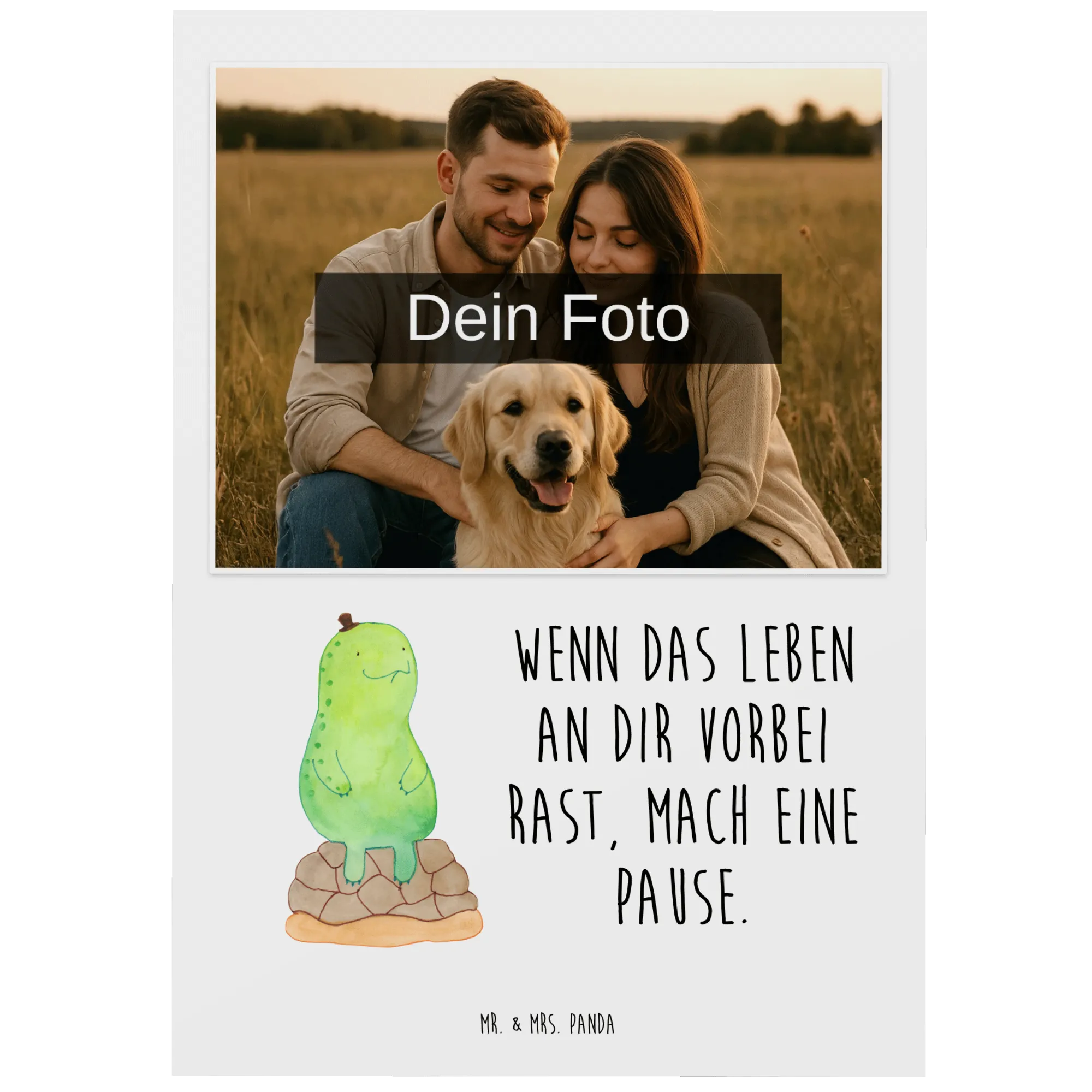 Die personalisierte Foto Postkarte mit dem süßen Motiv der Schildkröte pausiert ist das perfekte Geschenk für jeden, der Achtsamkeit und Entschleunigung in sein Leben bringen möchte. Diese bezaubernde Postkarte zeigt eine Schildkröte, die es sich auf einem Fernseher gemütlich gemacht hat und mit ihrem fröhlichen Gesichtsausdruck lädt sie dich ein, es ihr gleichzutun.