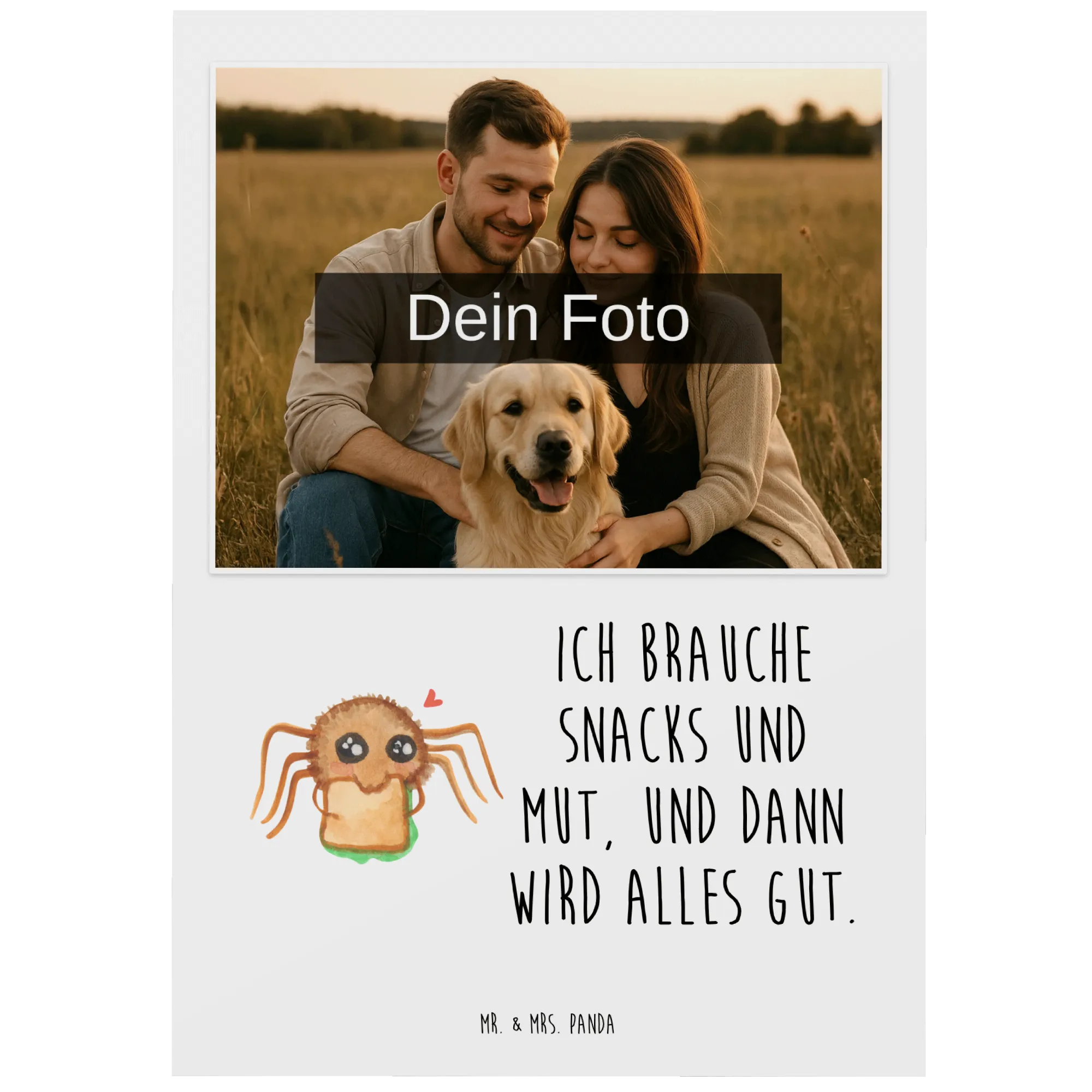 Die personalisierte Foto Postkarte mit dem zauberhaften Motiv 'Spinne Agathe Sandwich' aus der Kollektion von Mr. & Mrs. Panda ist das perfekte Geschenk für jeden, der Lebensfreude und eine Prise Humor schätzt.