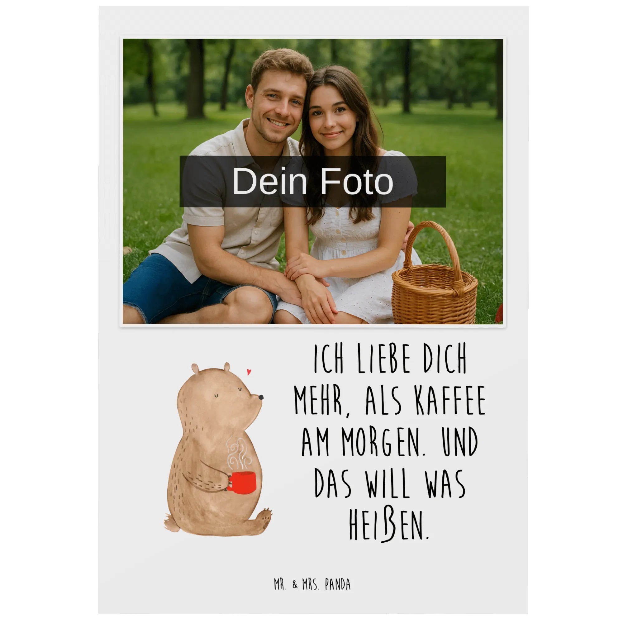 Personalizowana pocztówka ze zdjęciem Niedźwiedź Poranna kawa – Mr. & Mrs. Panda