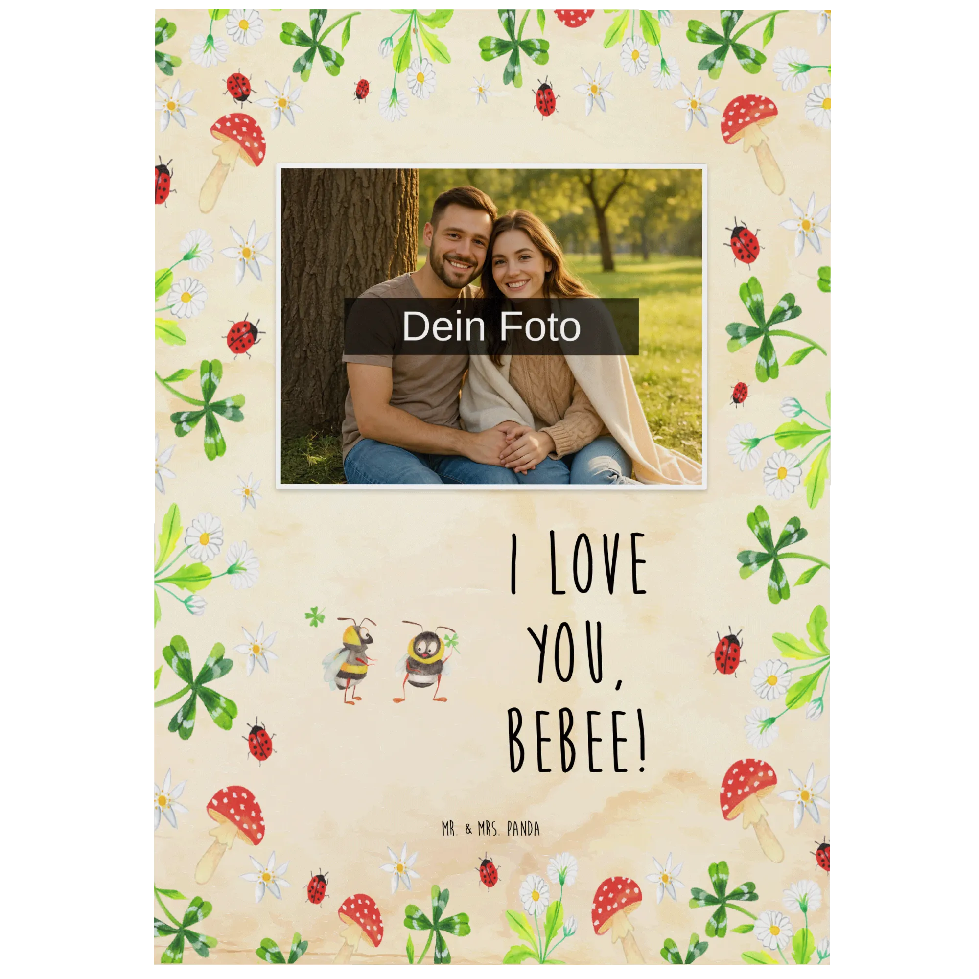 Personalizowana pocztówka ze zdjęciem pszczoły para – Mr. & Mrs. Panda