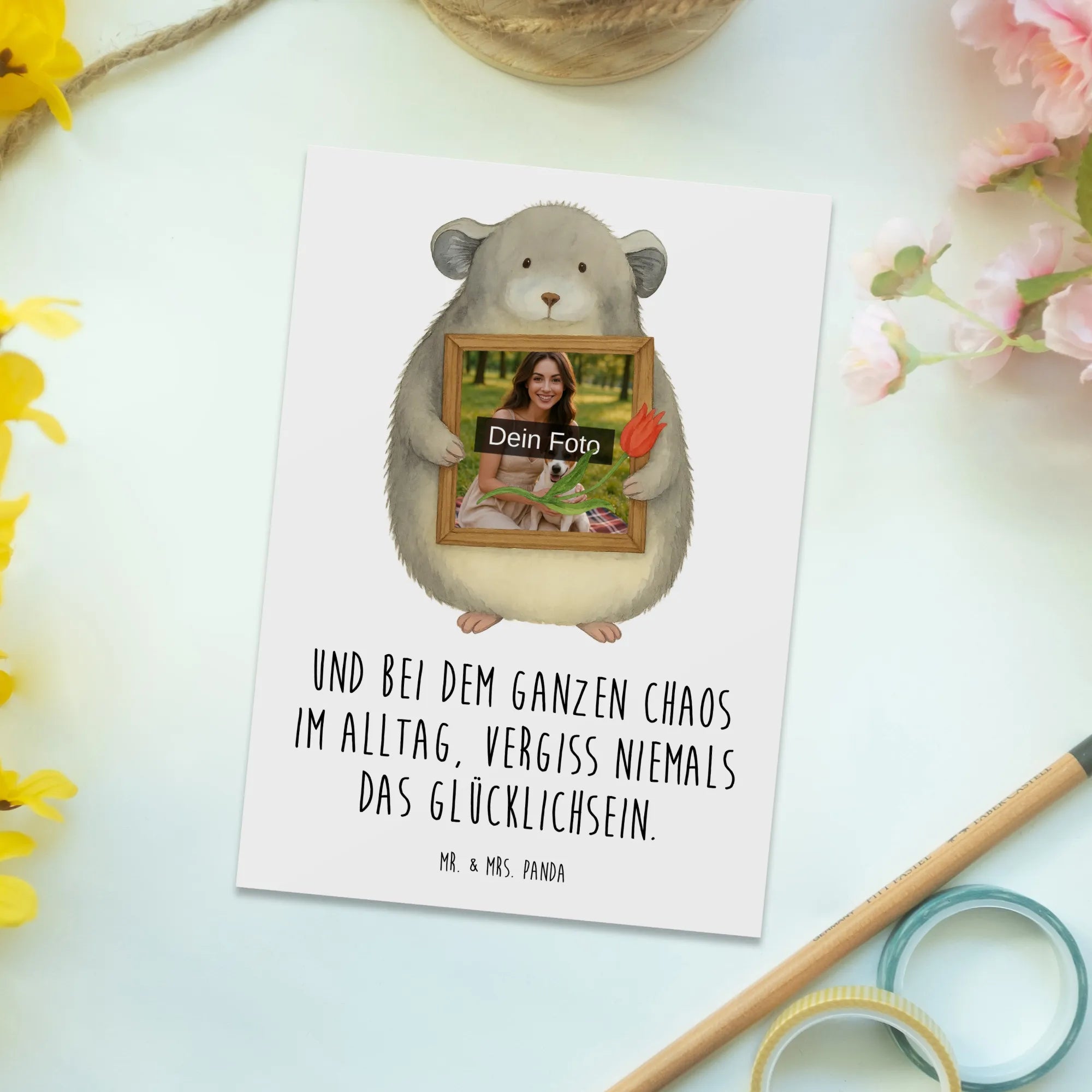 Personalizowana pocztówka ze zdjęciem szynszyla kwiat Design - z napisem