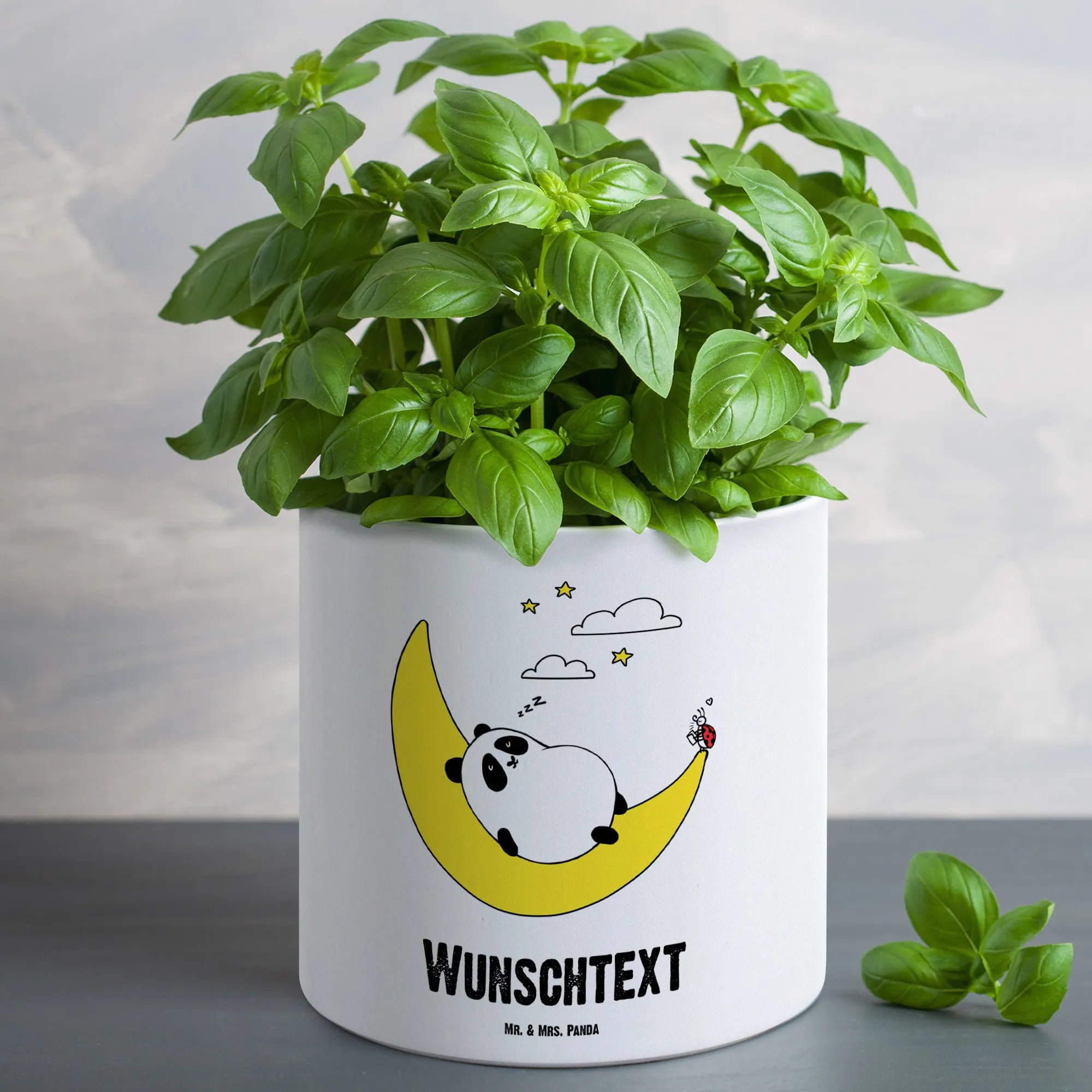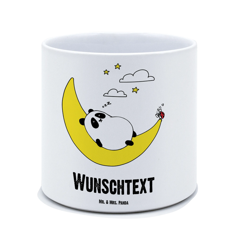 Der personalisierte XL Blumentopf "Easy & Peasy Take it Easy" von Mr. & Mrs. Panda ist das perfekte Geschenk für Pflanzenliebhaber und alle, die ein bisschen mehr Freude in ihr Zuhause bringen wollen. Mit einem bezaubernden Motiv, das einen niedlichen Panda zeigt, der zufrieden auf einer Mondsichel schläft, während ein kleiner Marienkäfer ihm Geschichten vorliest, bringt dieser Blumentopf nicht nur Farbe in dein Zuhause, sondern vermittelt auch eine entspannende Botschaft: Mach es dir einfach und nimm das Leben nicht zu ernst.