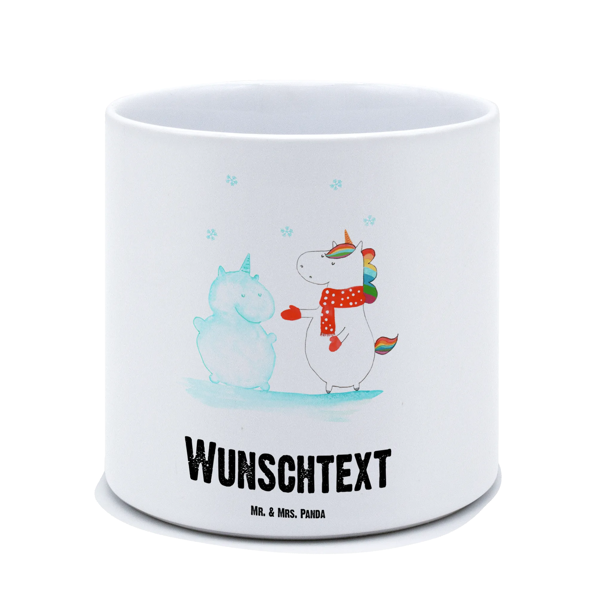 Personalisierter XL Blumentopf „Einhorn Schneemann" – ein zauberhaftes Geschenk aus der Einhorn - Kollektion von Mr. & Mrs. Panda. Das handgezeichnete Motiv zeigt ein süßes Einhorn, das einen Schneemann baut. Der fröhliche Spruch „Hätt‘ ich mich heute erwartet, hätt‘ ich Kuchen da!" bringt garantiert ein Lächeln und macht den Blumentopf zu einem originellen Blickfang.