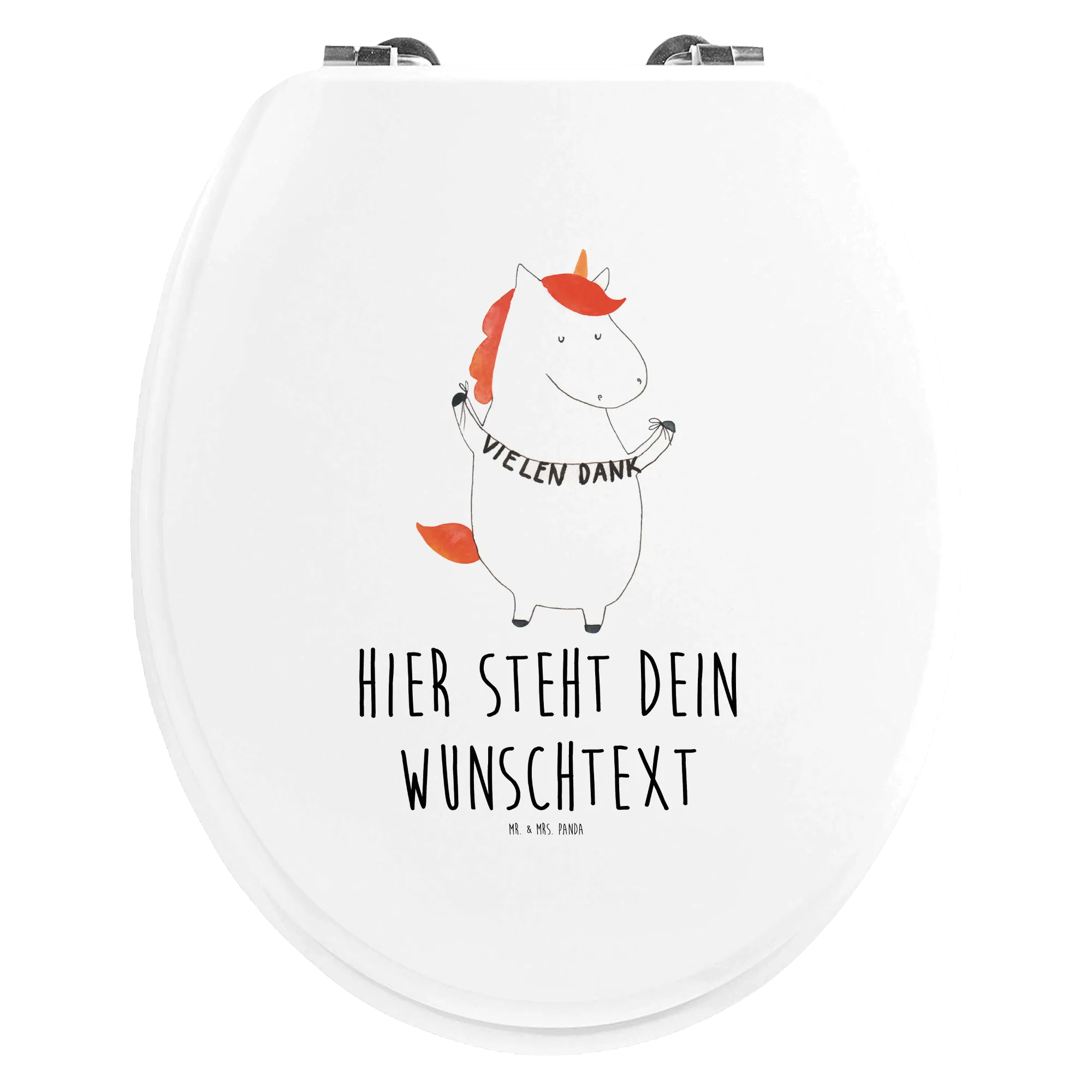 Entdecke den perfekten personalisierten WC Sitz mit dem zauberhaften Einhorn Motiv "Vielen Dank" aus der Einhorn-Kollektion von Mr. & Mrs. Panda!