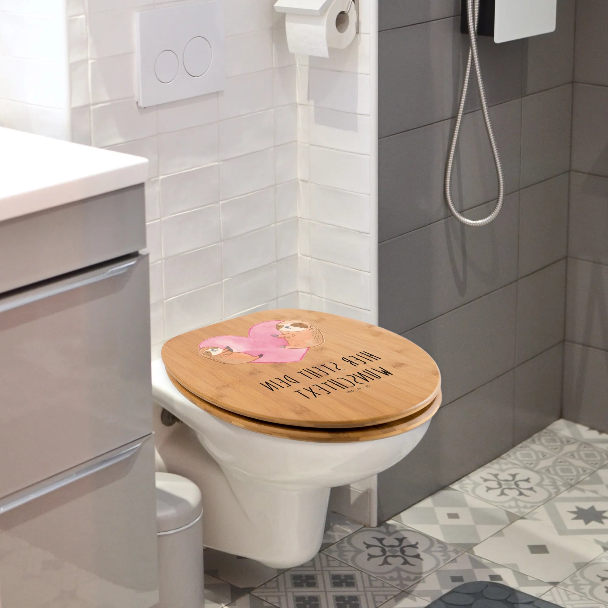 Personalizowany motyw deski WC leniwce Serce - Hartfaser Holzkern Weiß