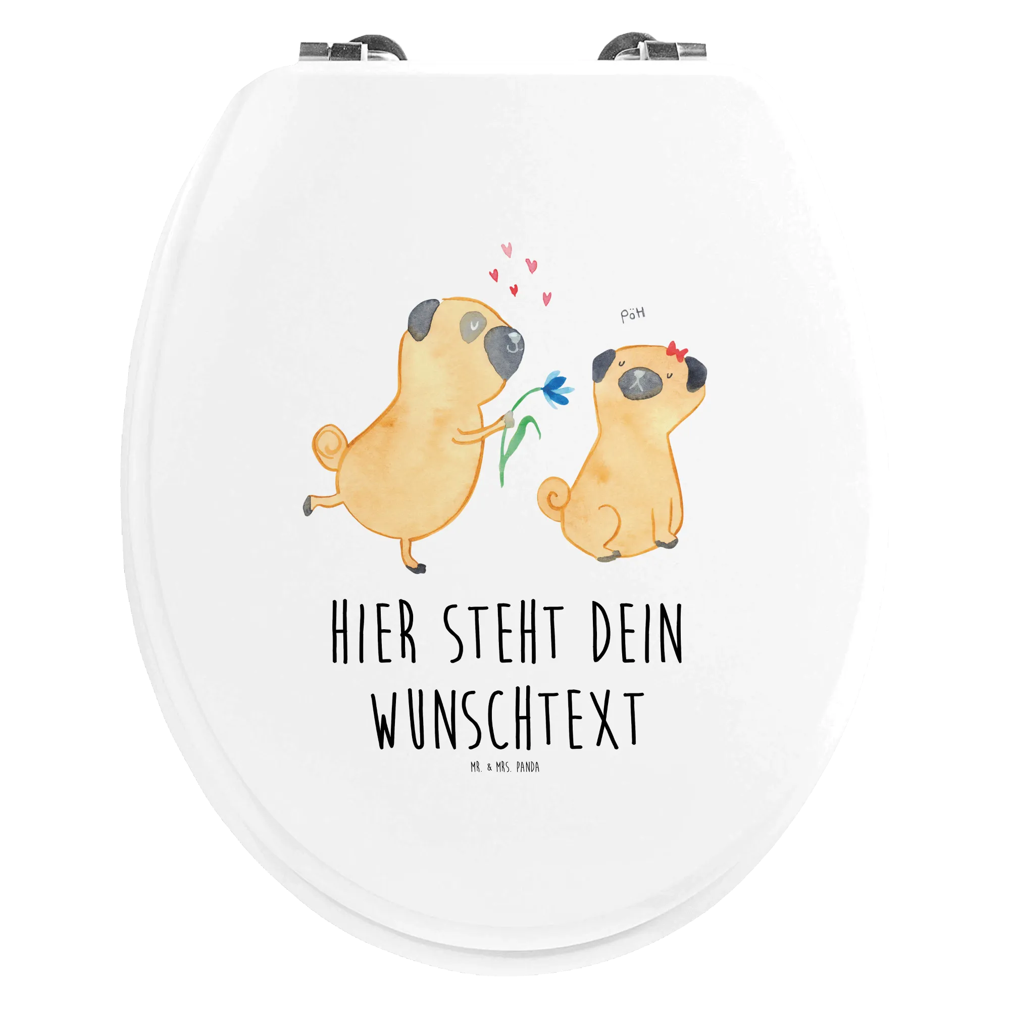 Der personalisierte WC Sitz mit dem Motiv 'Mops verliebt' von Mr. & Mrs. Panda ist das perfekte Geschenk für Hundeliebhaber und Tierfreunde! Dieser Toilettendeckel bringt nicht nur eine Menge Spaß und Lebensfreude in dein Badezimmer, sondern ist auch praktisch und bequem.