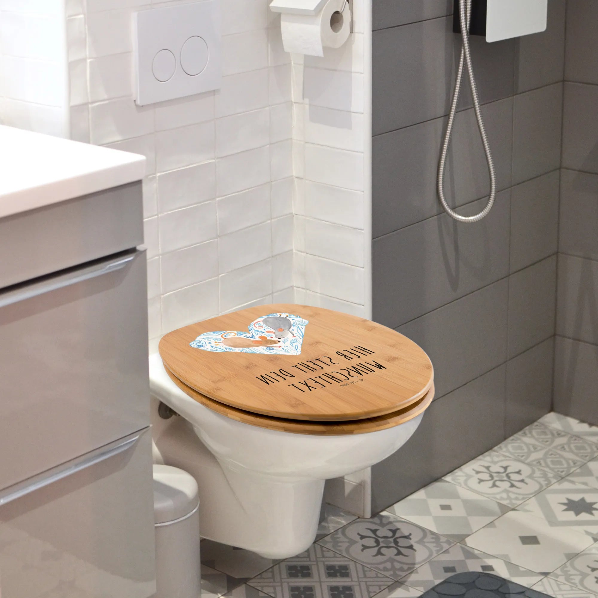 Personalizowany motyw deski WC Myszy serce - Hartfaser Holzkern Weiß