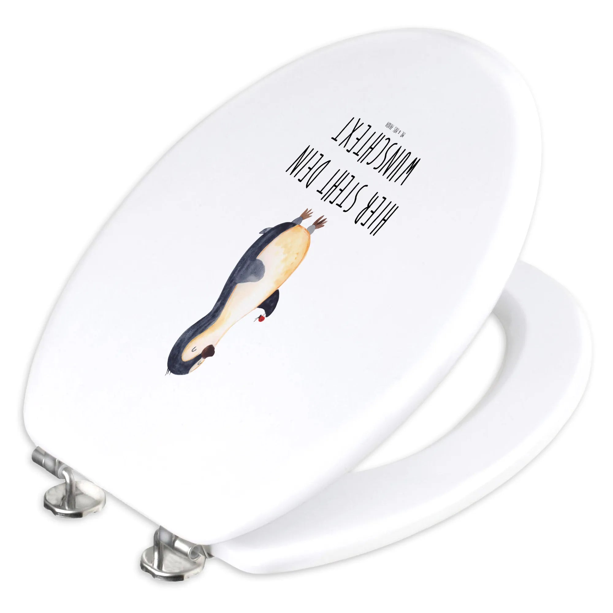 Finde den perfekten Toilettendeckel mit Namen für dein Badezimmer oder verschenke Freude mit diesem einzigartigen Geschenk. Die Pinguin-Kollektion von Mr. & Mrs. Panda bringt frischen Wind in dein Zuhause. Überrasche deine Liebsten mit einem personalisierten Klodeckel, der nicht nur praktisch ist, sondern auch jeden Tag ein Lächeln zaubert. Hol dir jetzt deinen personalisierten WC Sitz mit dem süßen Pinguin-Motiv und ändere dein Badezimmer in eine Wohlfühloase voller Glück und Freude!