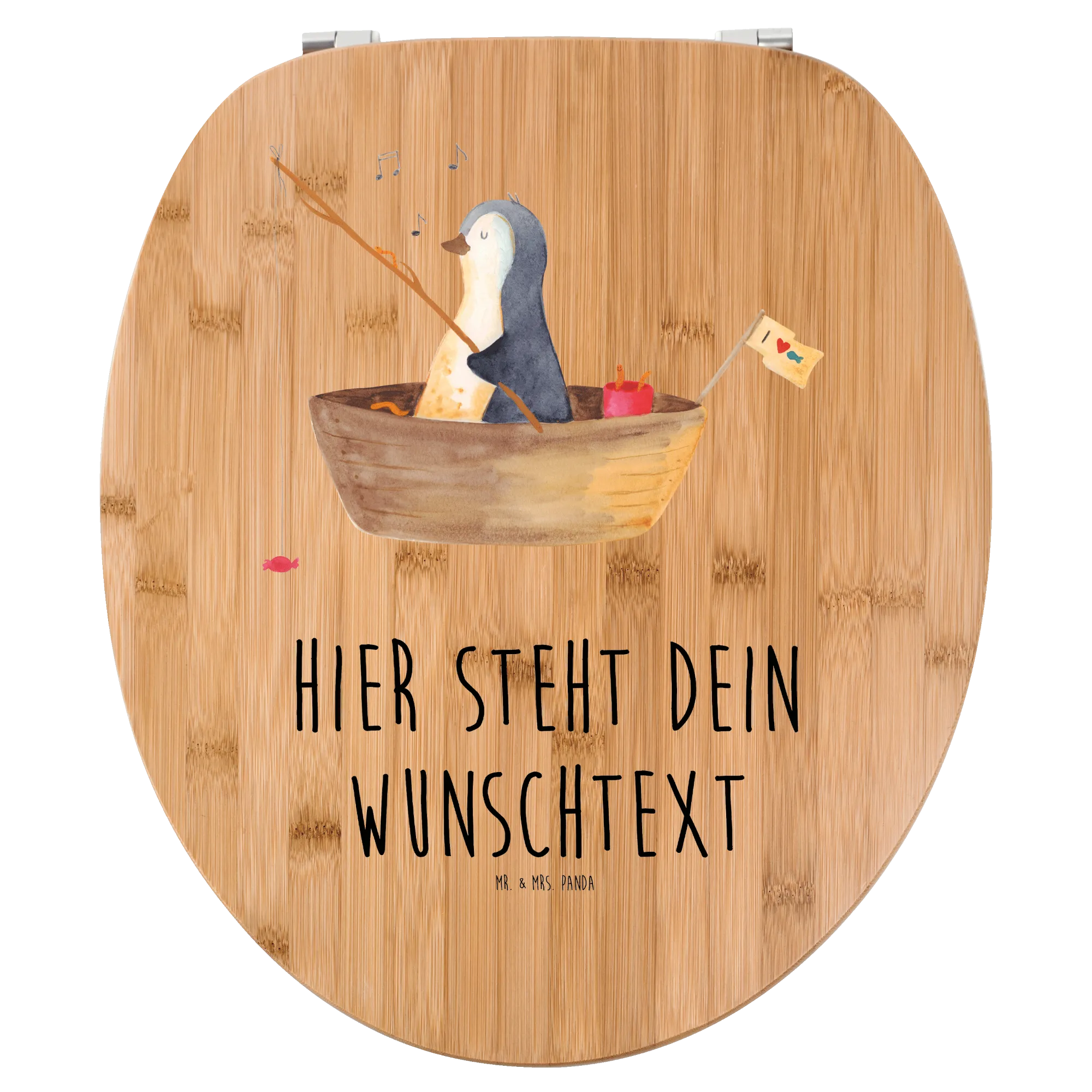 Personalizowany motyw deski WC pingwin łódka wędkarska - Hartfaser Holzkern Weiß
