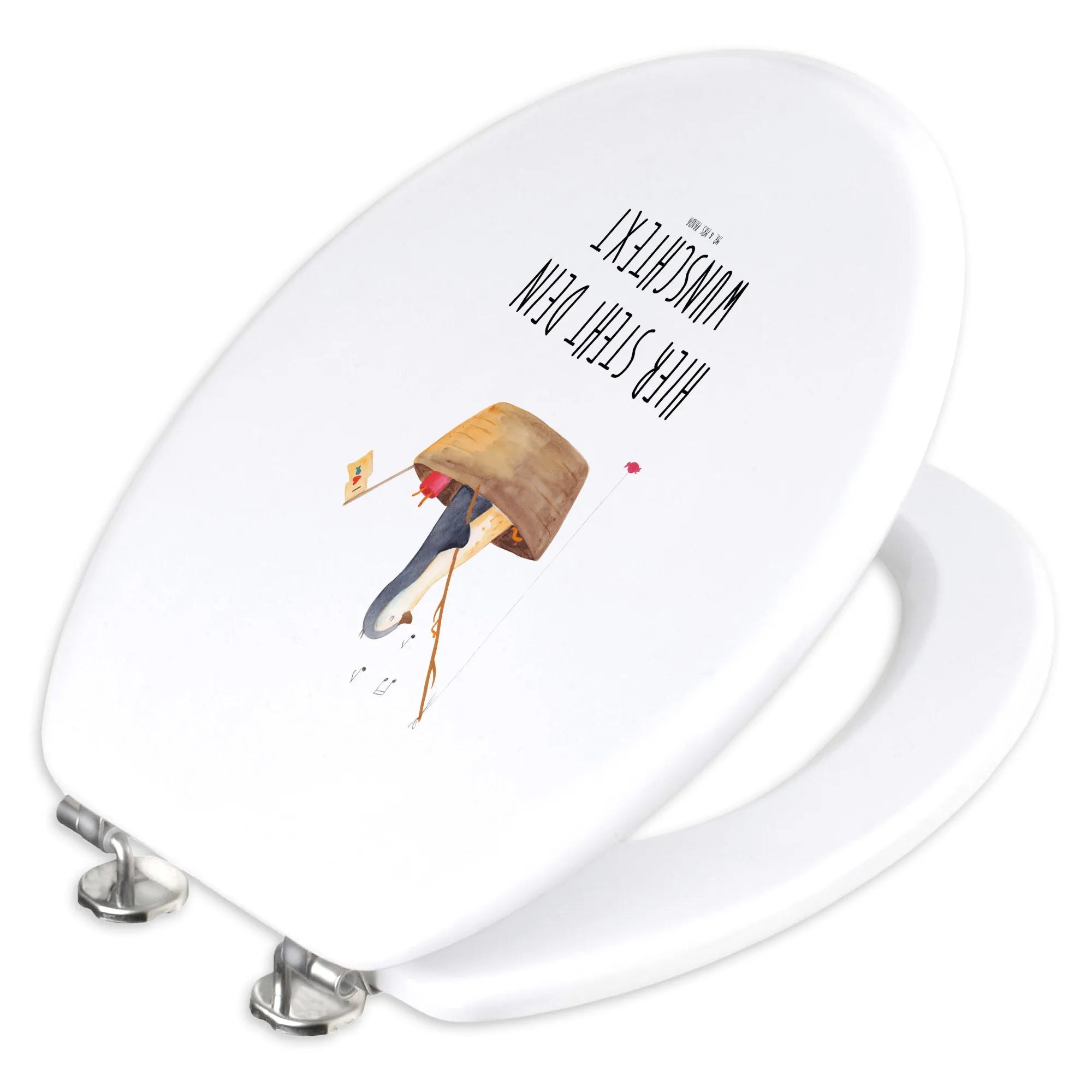 Das fröhliche Motiv eines kleinen Pinguins, der auf einem Boot mit Bonbons angelt, wird nicht nur große Pinguinliebhaber begeistern, sondern auch jedem, der das Leben in vollen Zügen genießen möchte. Ob beim Neustart nach einer Trennung oder einfach für das eigene Zuhause – dieser Toilettensitz ist mit den Maßen 430 mm x 370 mm x 50 mm perfekt für alle Euro-WC-Becken geeignet und verspricht hohen Sitzkomfort, selbst bei kühlen Temperaturen.