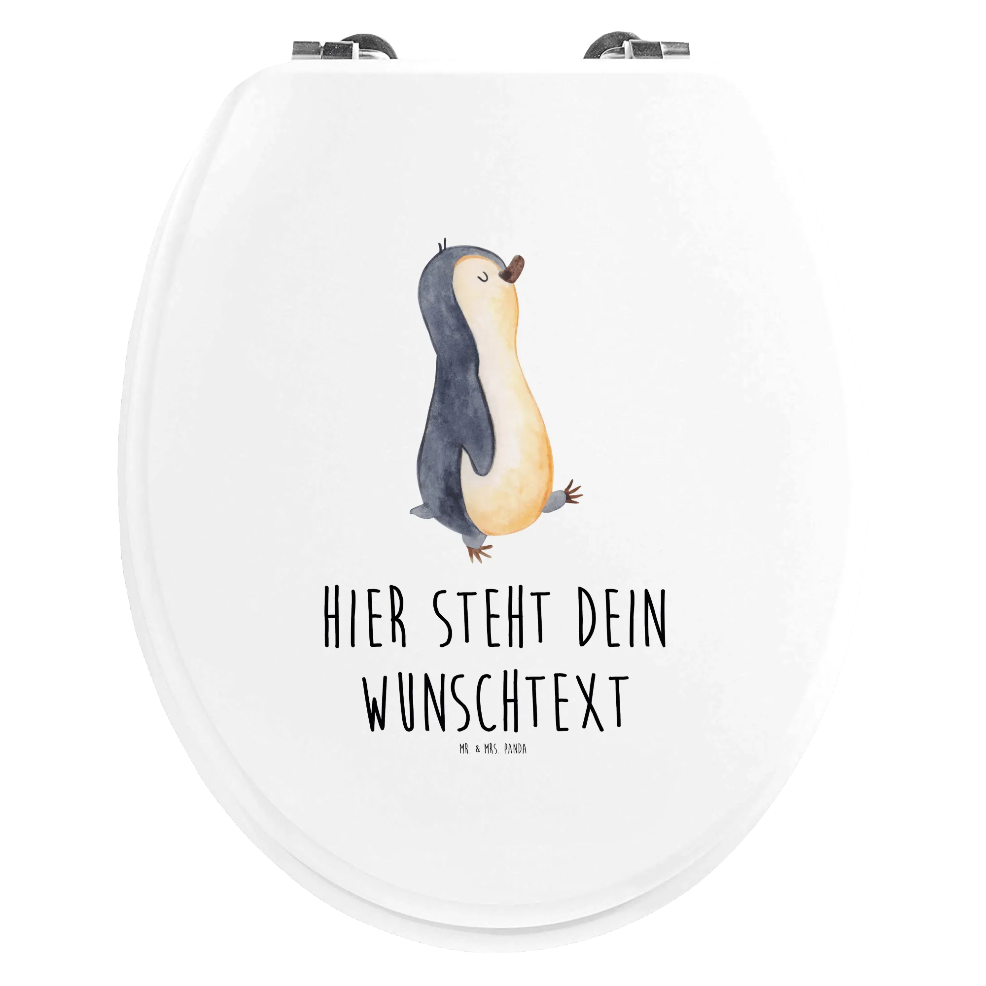 Unser personalisierter WC Sitz mit dem niedlichen Motiv eines marschierenden Pinguins aus der Pinguin-Kollektion ist das perfekte Geschenk für alle, die Freude und Lebensstil ins Badezimmer bringen wollen. Egal ob für Frühaufsteher, Langschläfer oder Familienmitglieder – dieser Toilettendeckel bringt nicht nur einen Hauch von Humor, sondern auch eine persönliche Note in jedes Bad.