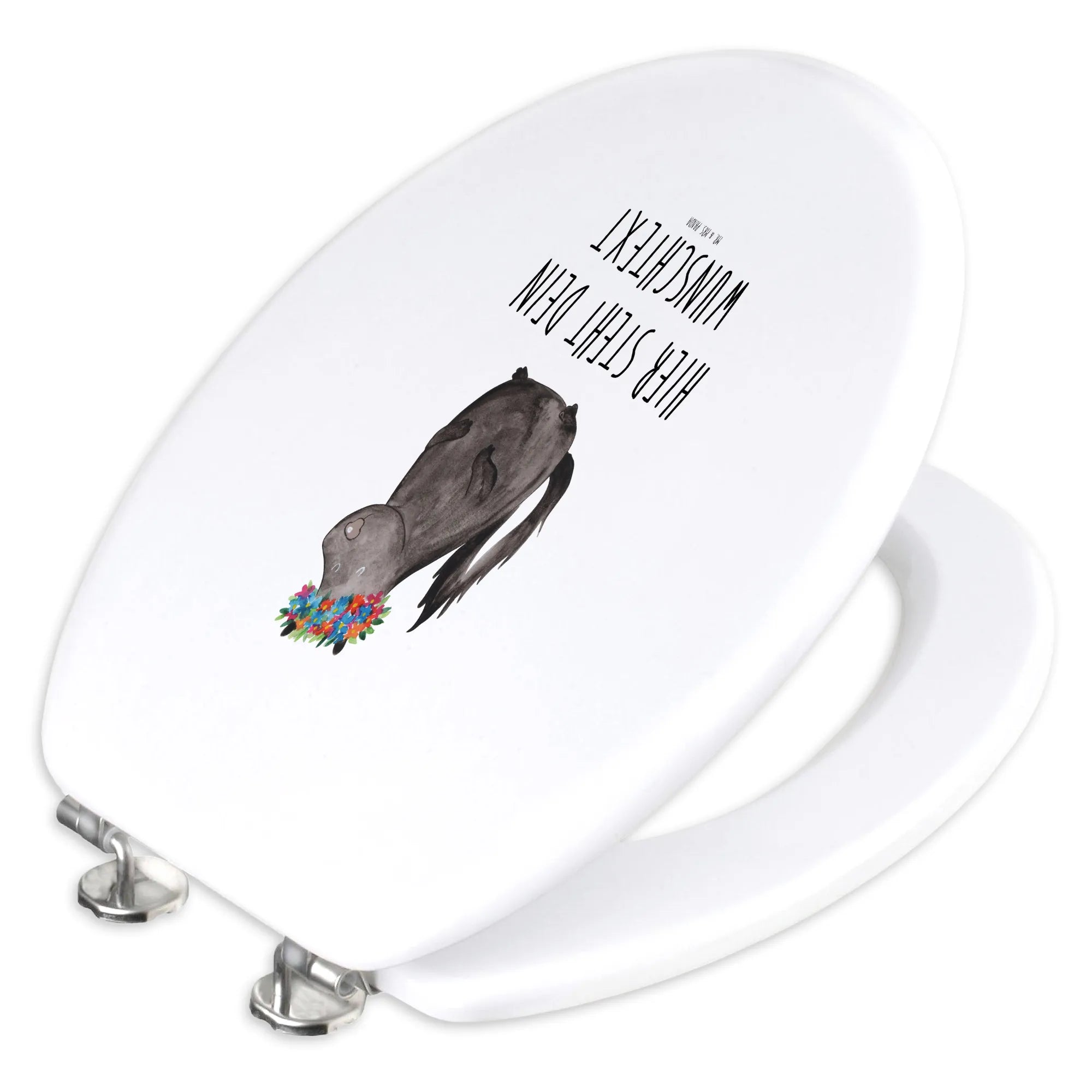 Du suchst nach einem einzigartigen Geschenk, das nicht nur praktisch ist, sondern auch Freude ins Badezimmer bringt? Dann ist die personalisierte Klobrille mit dem bezaubernden Motiv des Stinktiers Blumenmädchen aus der Stinktier-Kollektion von Mr. & Mrs. Panda genau das Richtige für dich! Dieses wunderbare Kunstwerk zeigt ein süßes Stinktier mit einem bunten Blumenkranz und bringt fröhliche Stimmung in jeden Raum.