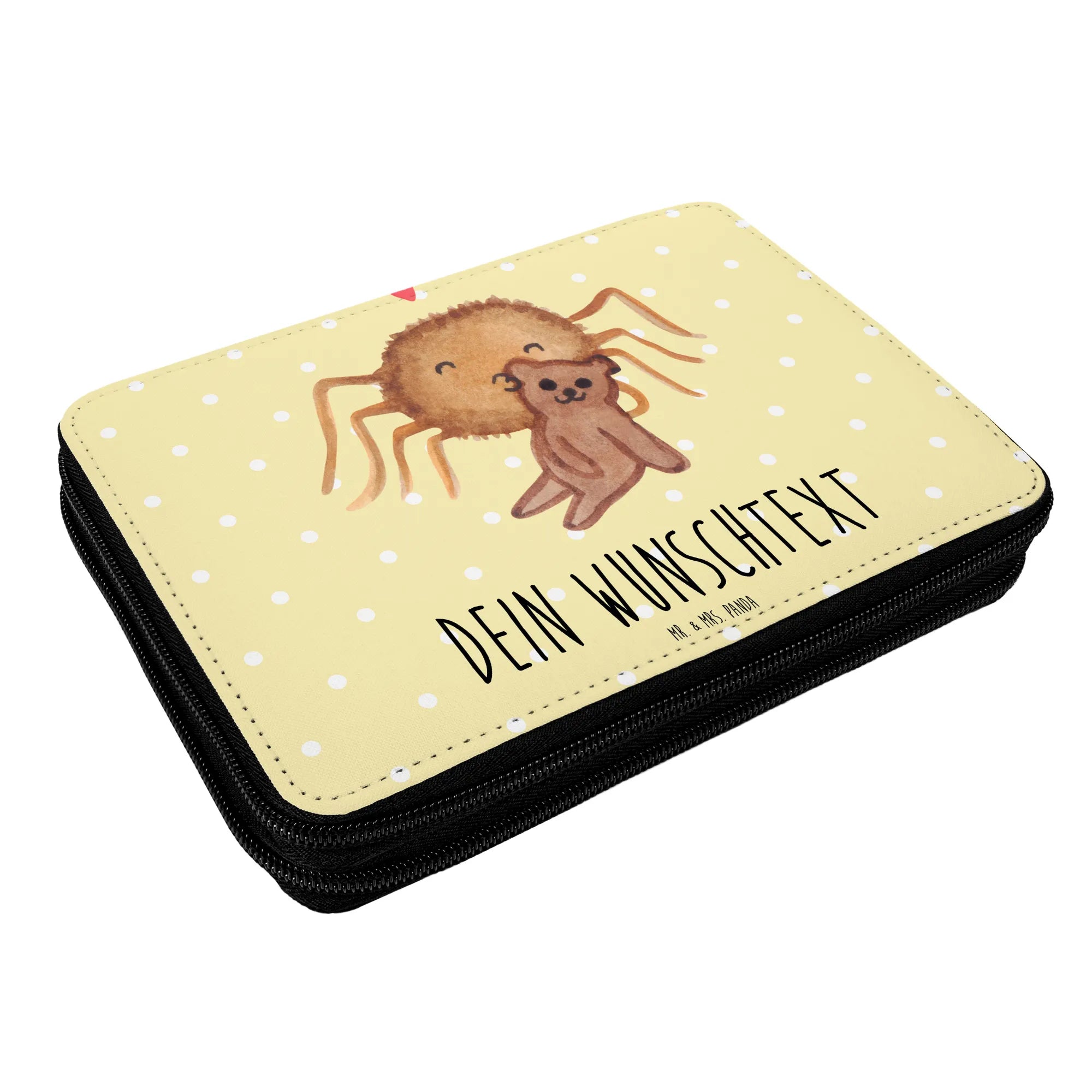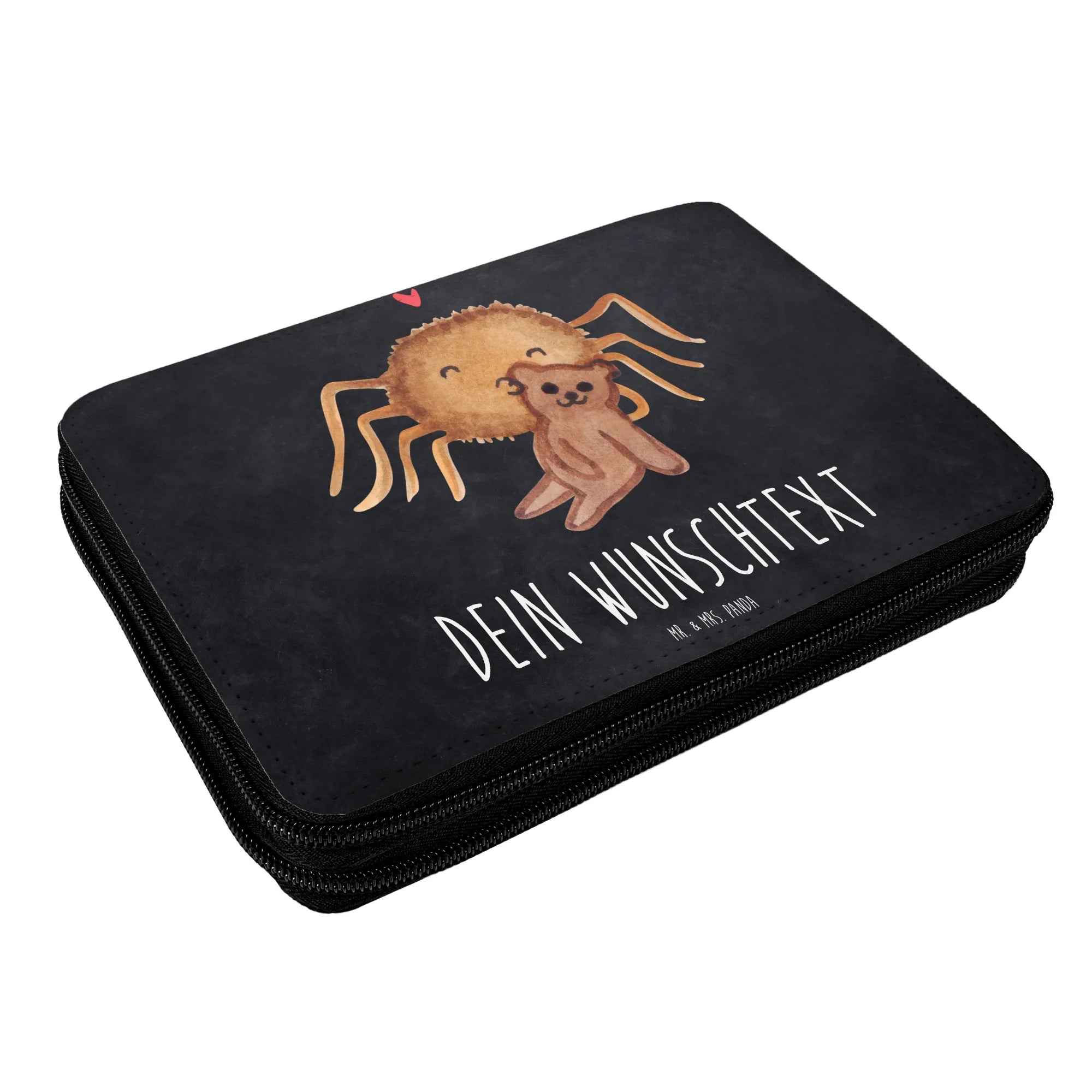 Entdecke die perfekte personalisierte Federmappe von Mr. & Mrs. Panda! Diese zauberhafte Federmappe mit dem entzückenden Motiv der Spinne Agathe, die ihren kleinen Teddy voller Liebe hält, ist nicht nur ein praktisches Utensil für die Schule, sondern auch ein ganz besonderes Geschenk für jedes Kind. Jedes Detail des Designs ist mit viel Liebe von Mrs. Panda handgezeichnet und bringt Freude ins Schulalltag!