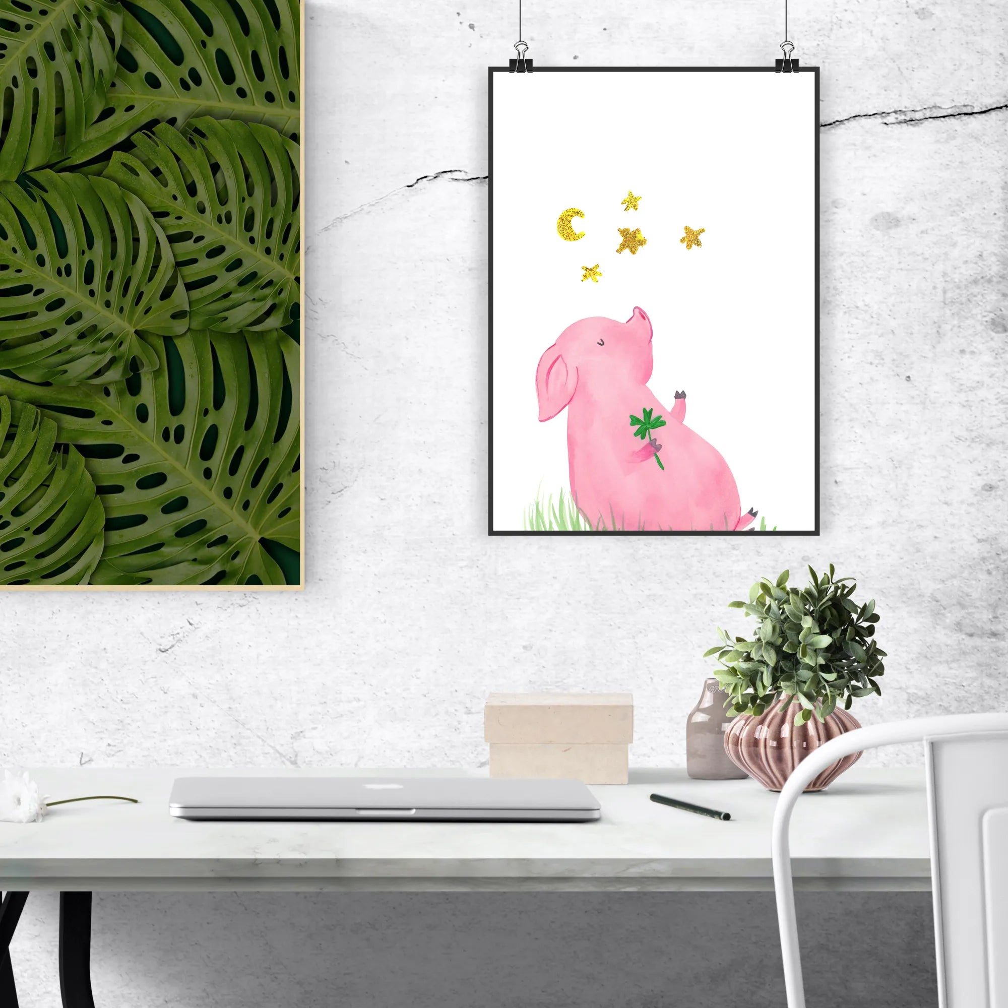 Plakat obcięty świnia Szczęście Motiv - DIN A5 - z napisem