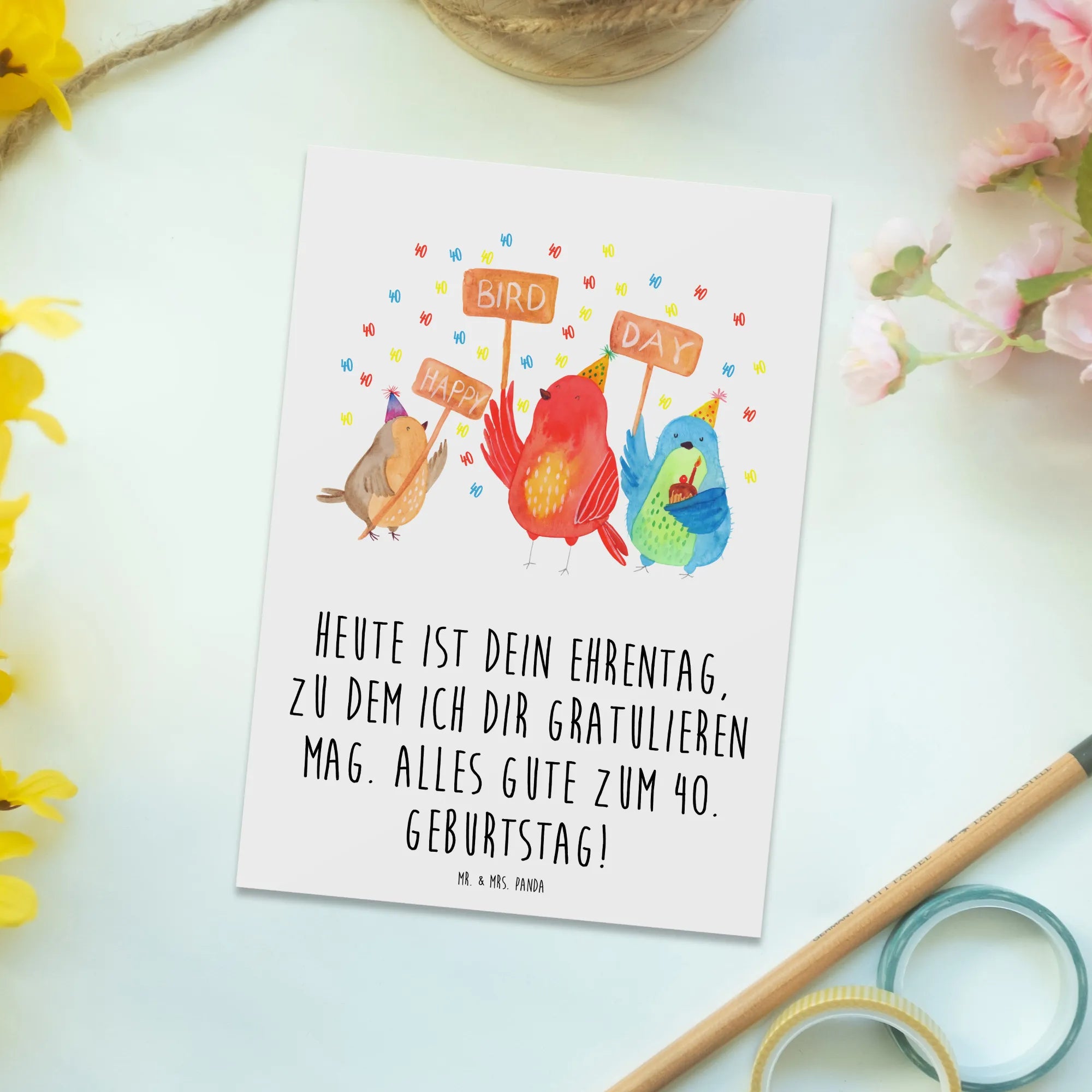Pocztówka 40. urodziny Szczęśliwego dnia ptaków - z napisem
