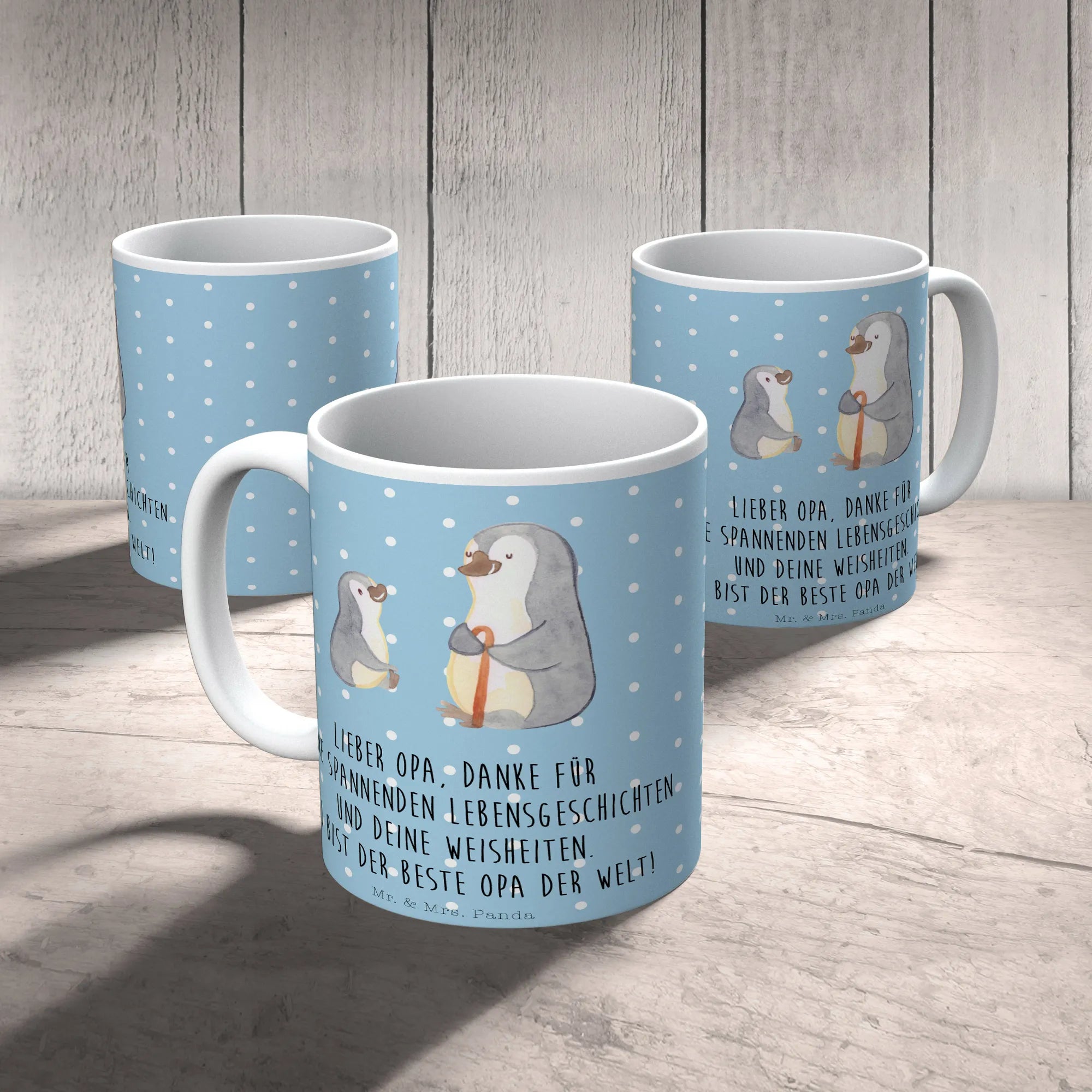 Kubek Pingwin Dziadek Wnuk - Pastelowy niebieski