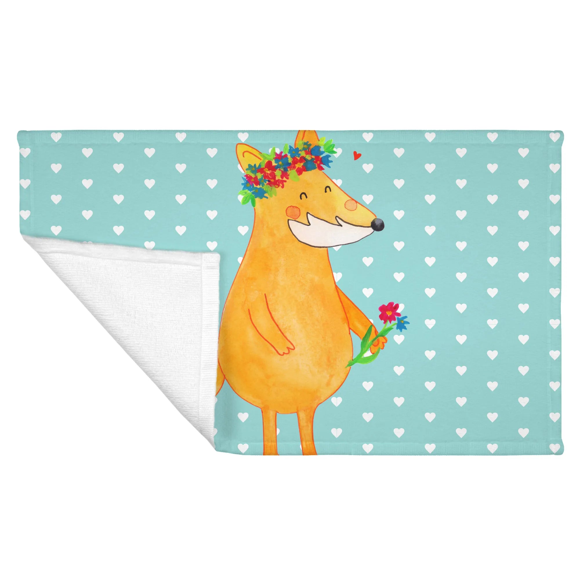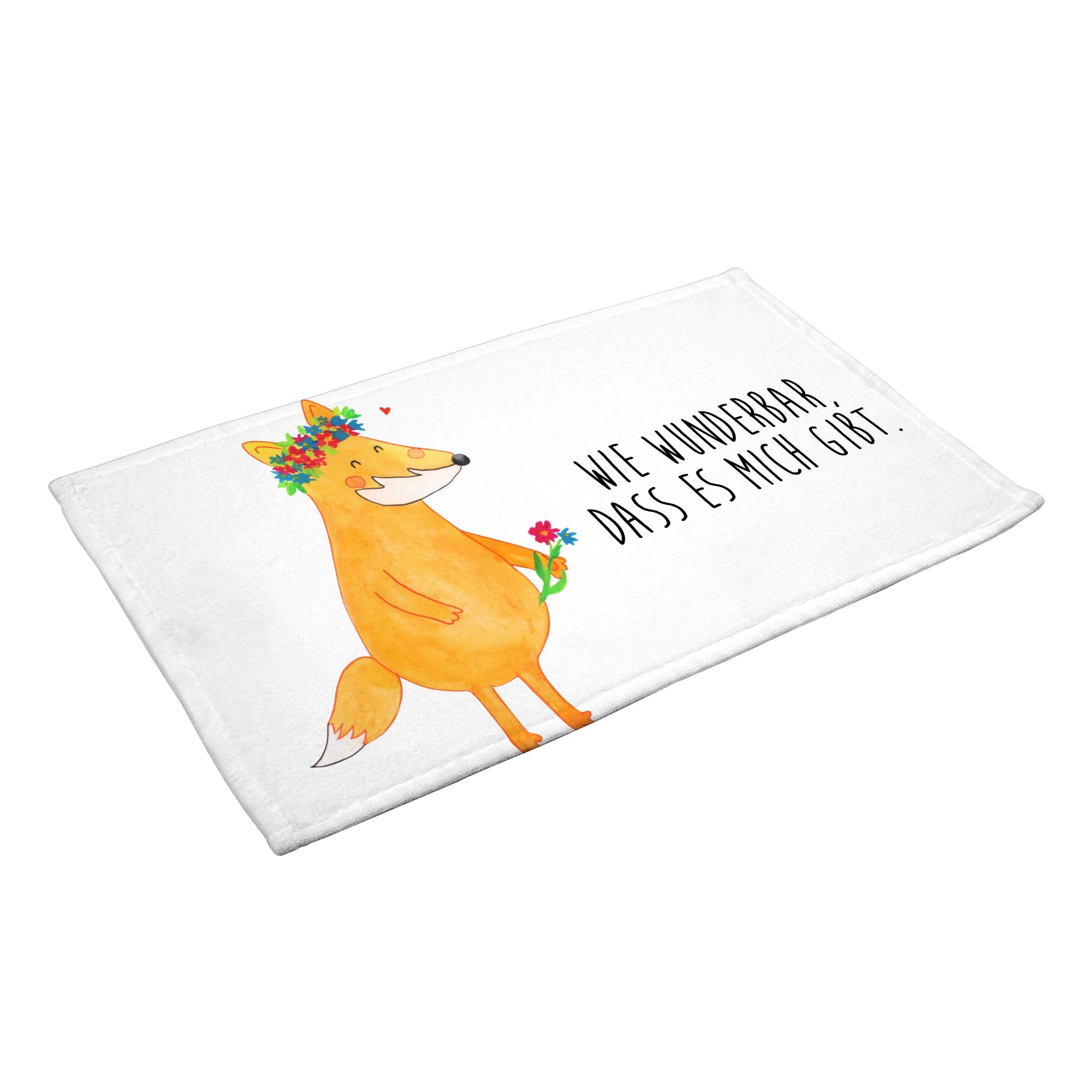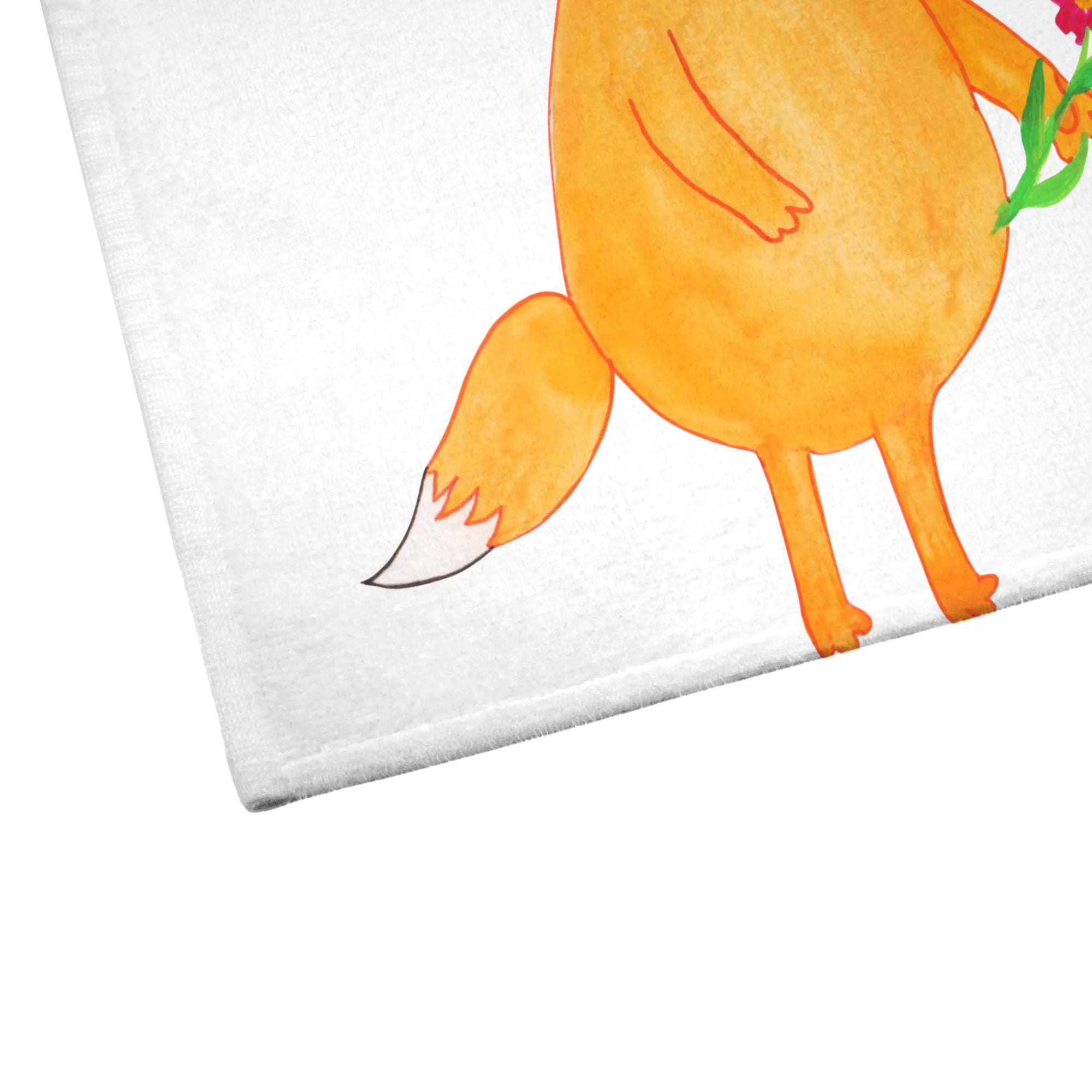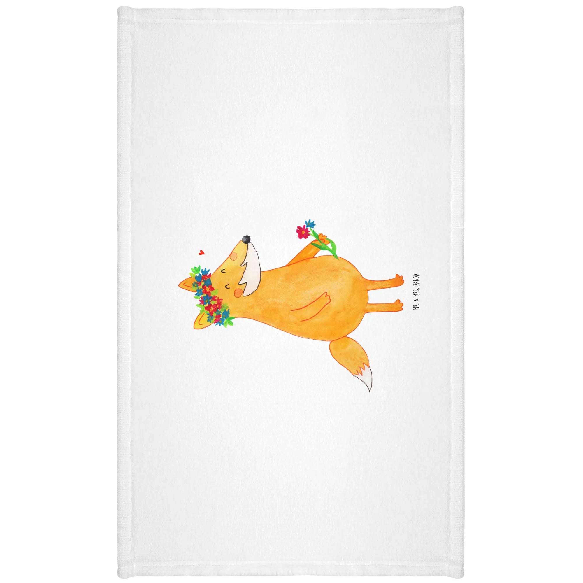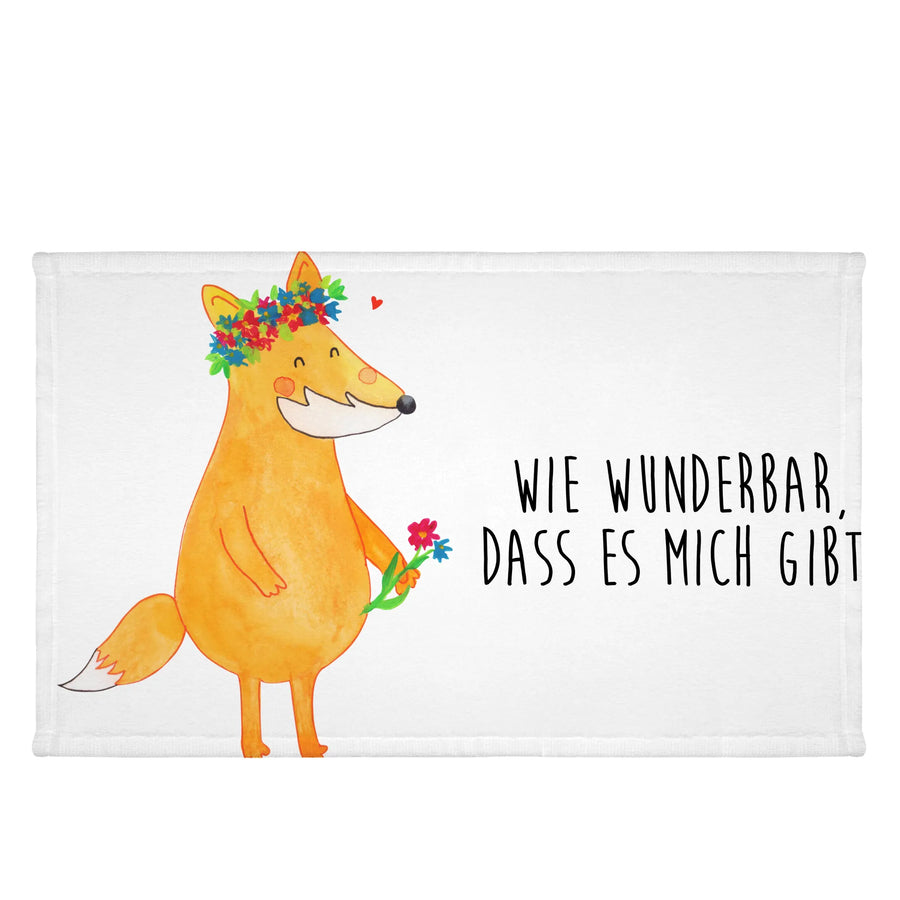 50 x 100 ręcznik lis Kwiaty - z napisem - biały