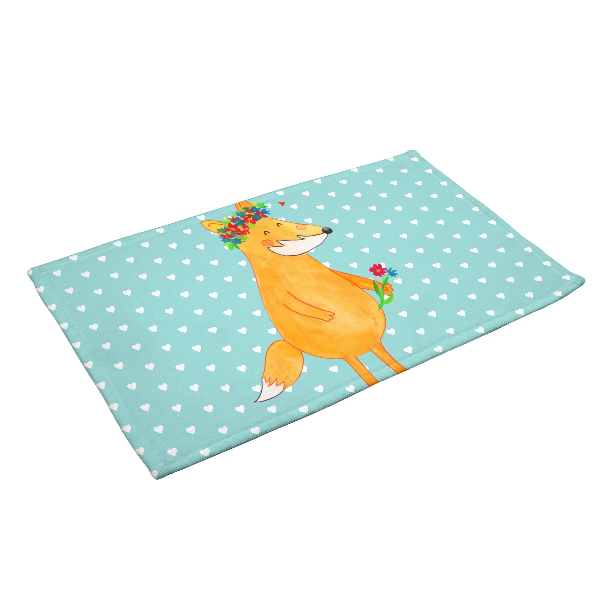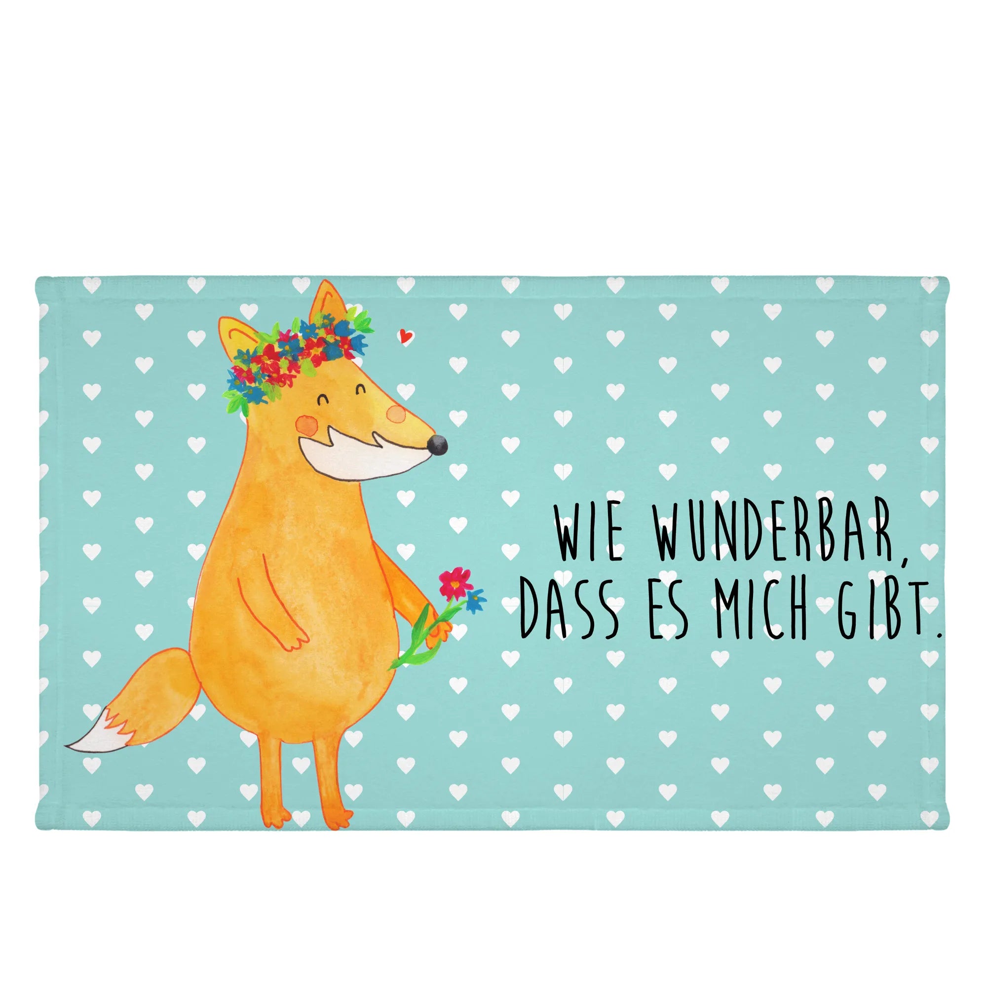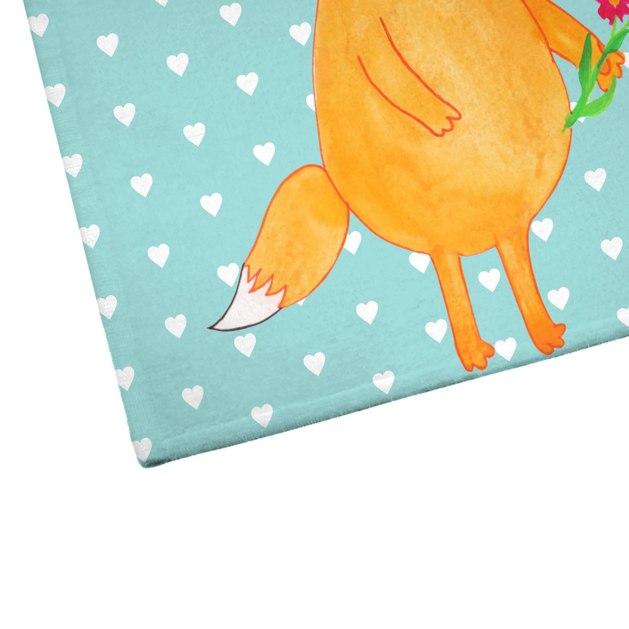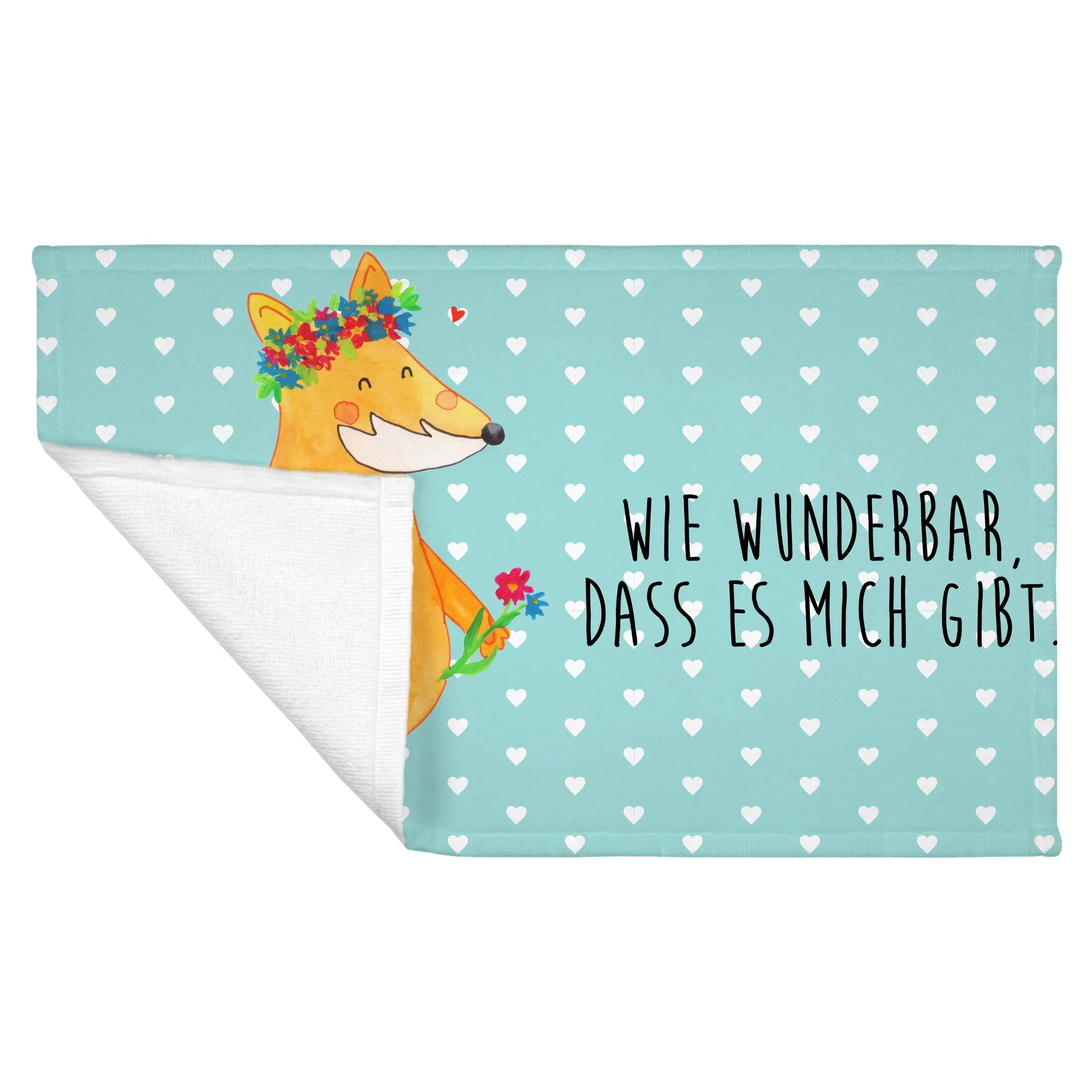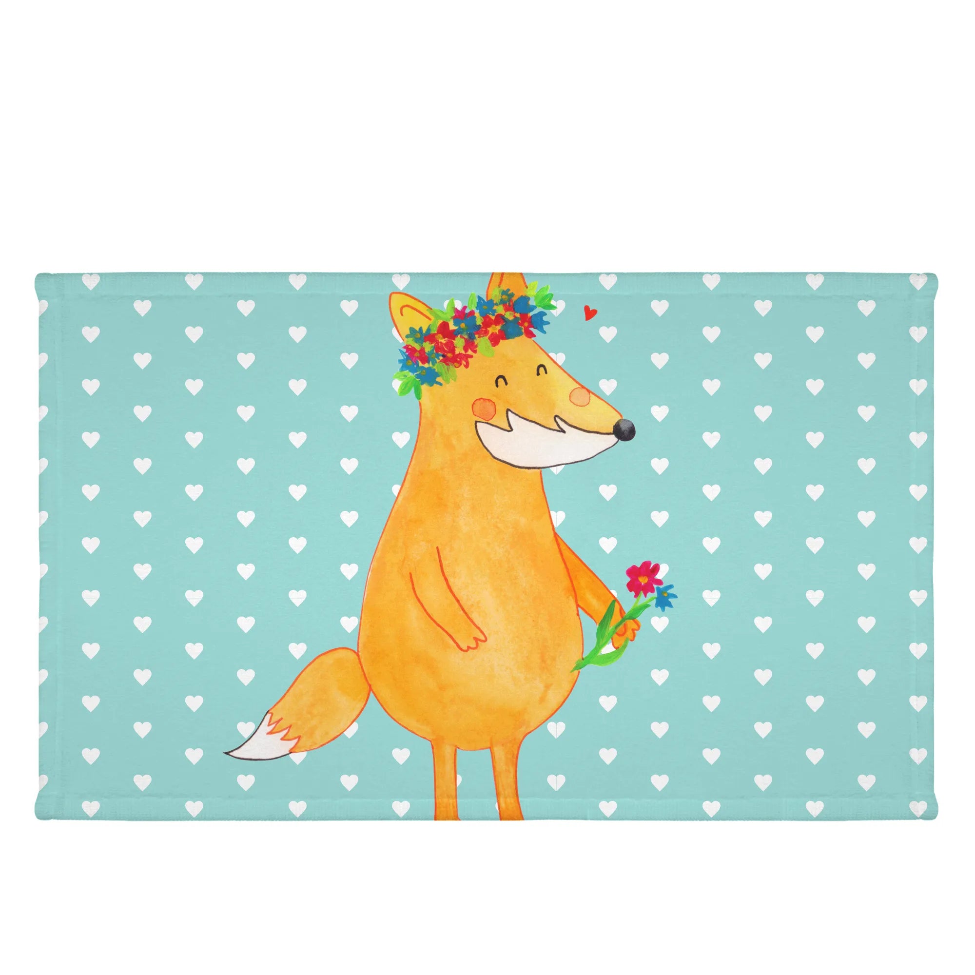 50 x 100 ręcznik lis Kwiaty - z napisem - biały