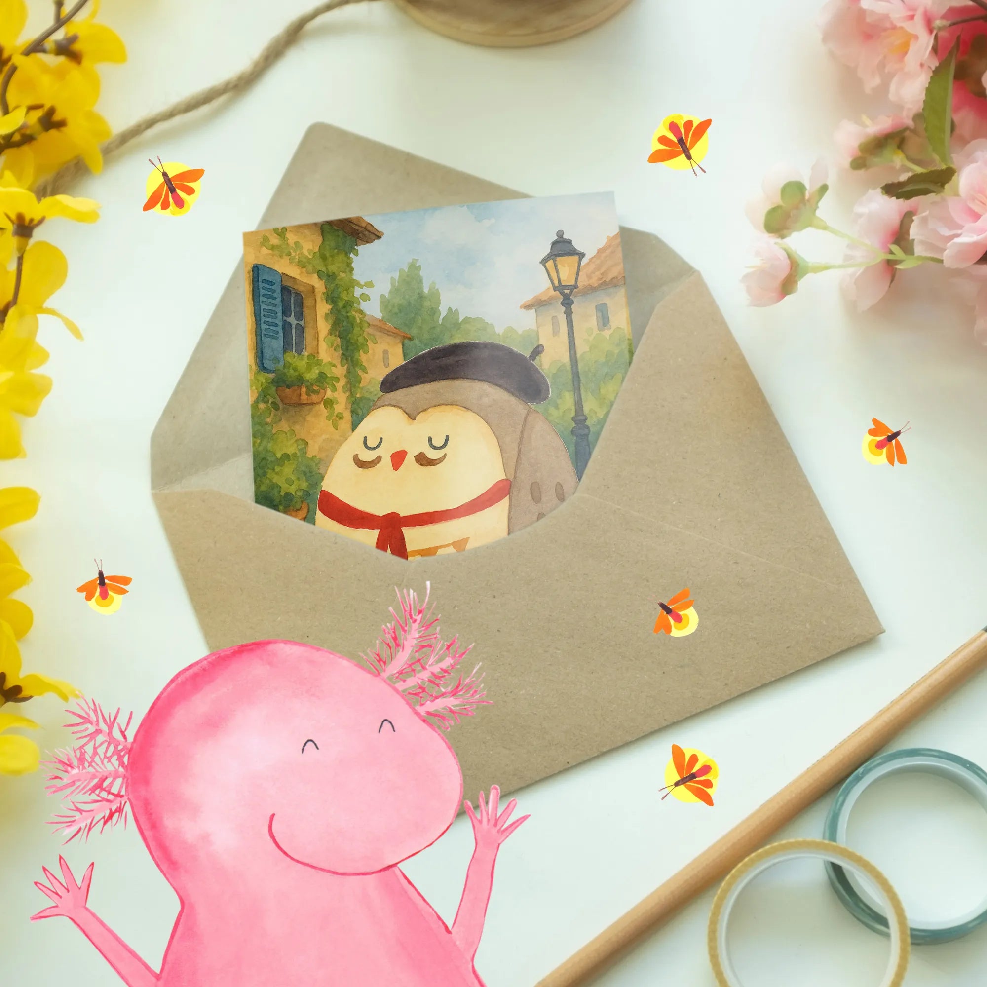 Kartka okolicznościowa sowa Francja Design - z napisem