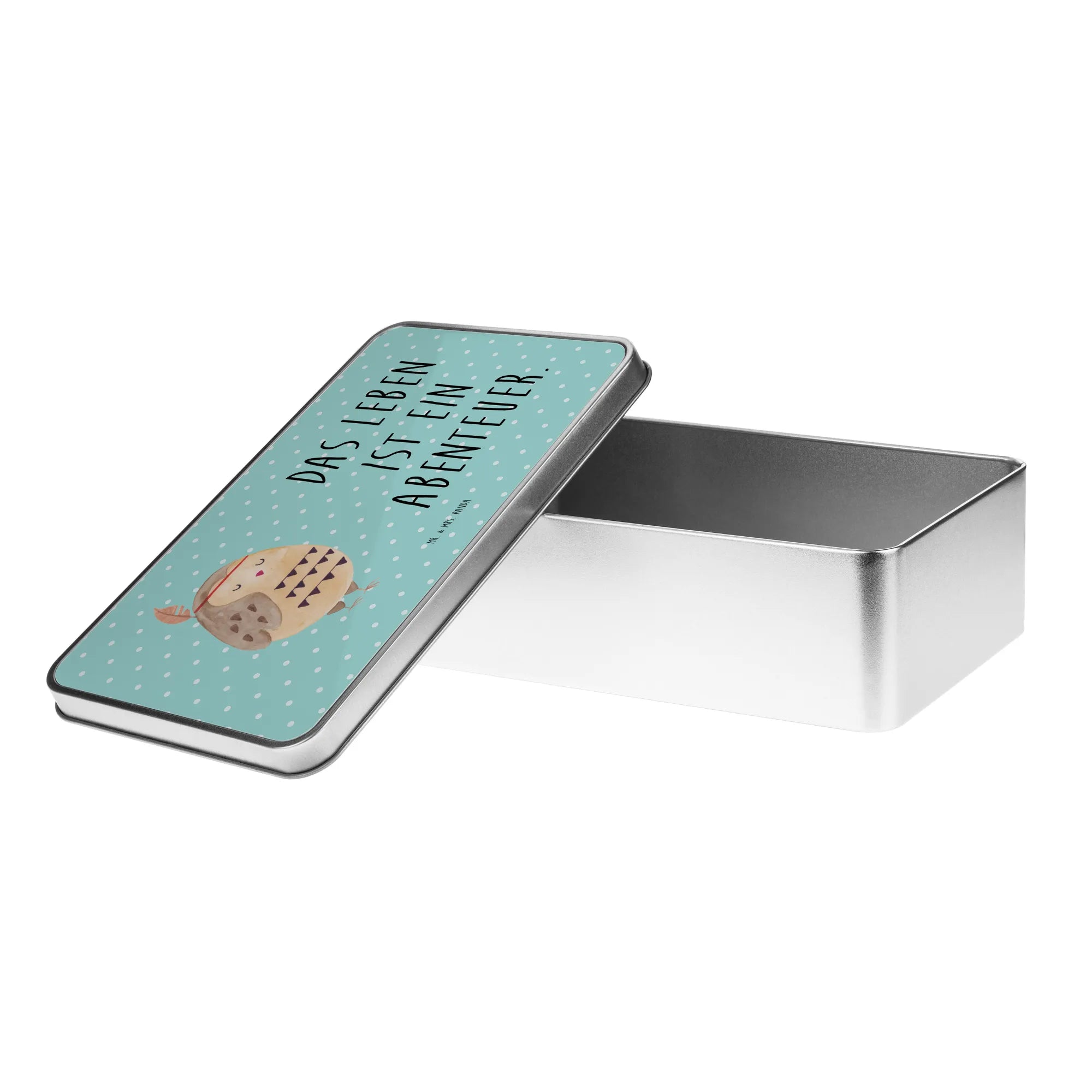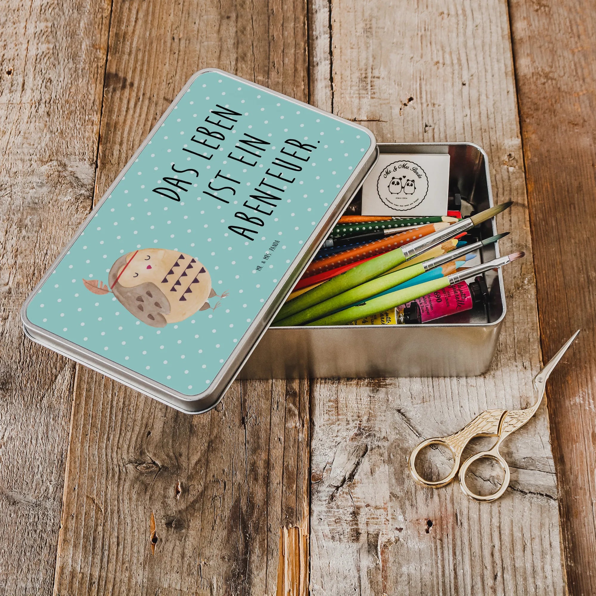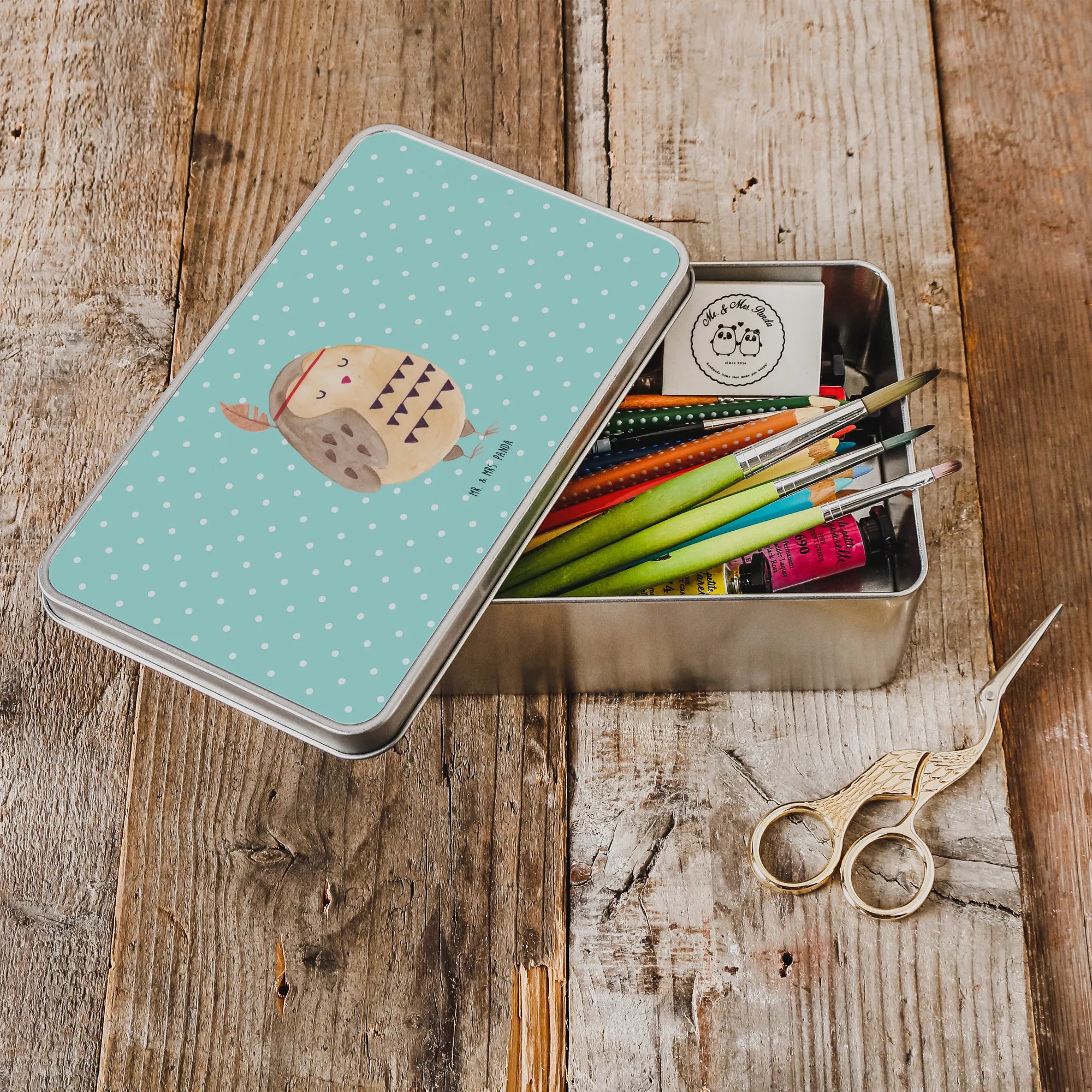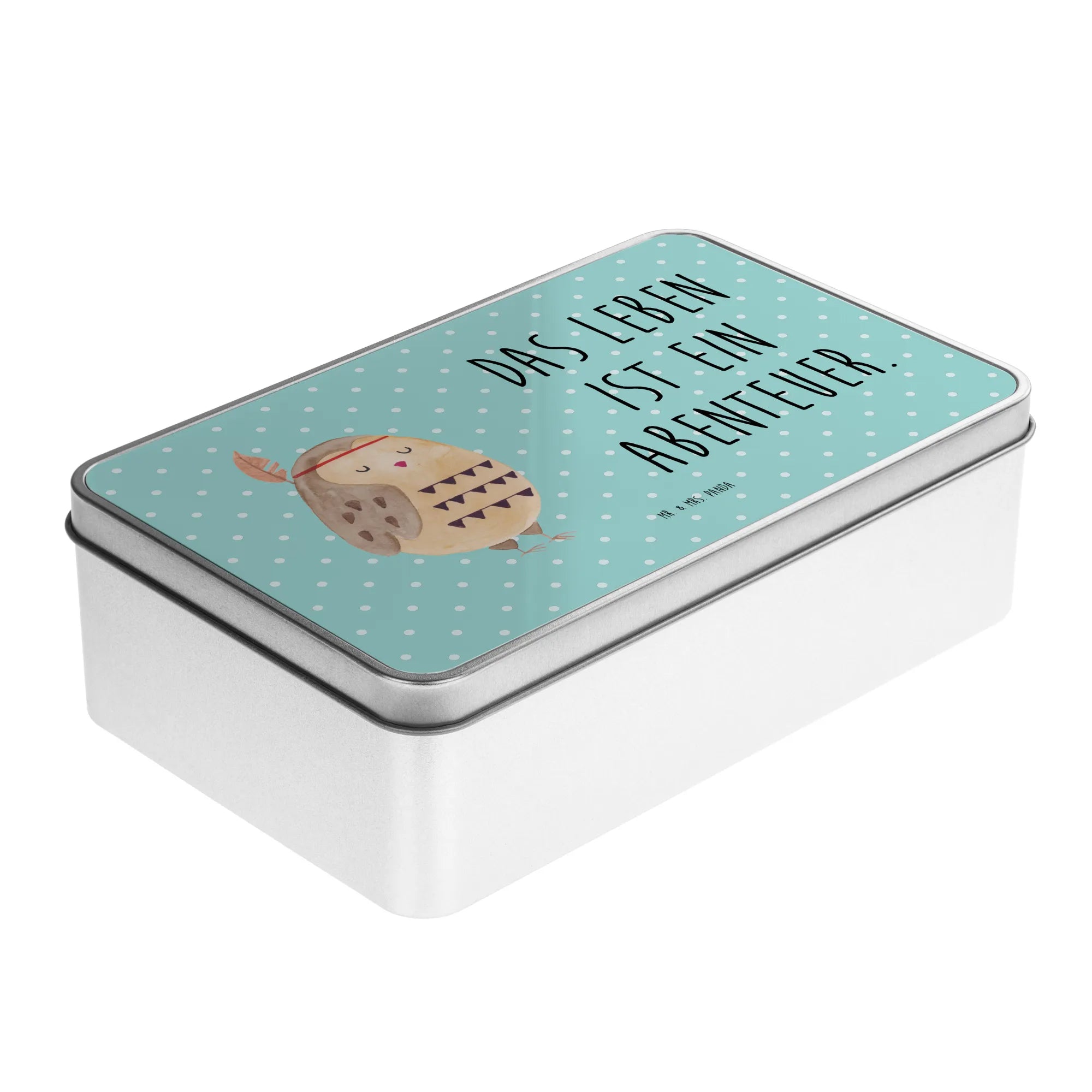 Metalowa puszka sowa Ozdoba z piór - z napisem