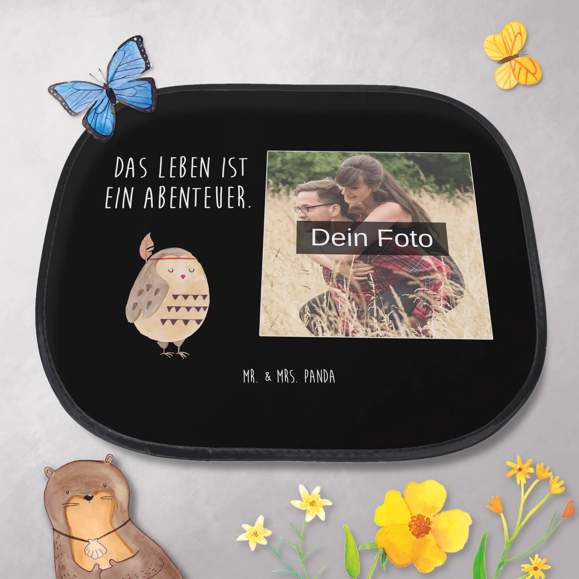 Personalisierbarer Foto Sonnenschutz Auto Eule Federschmuck