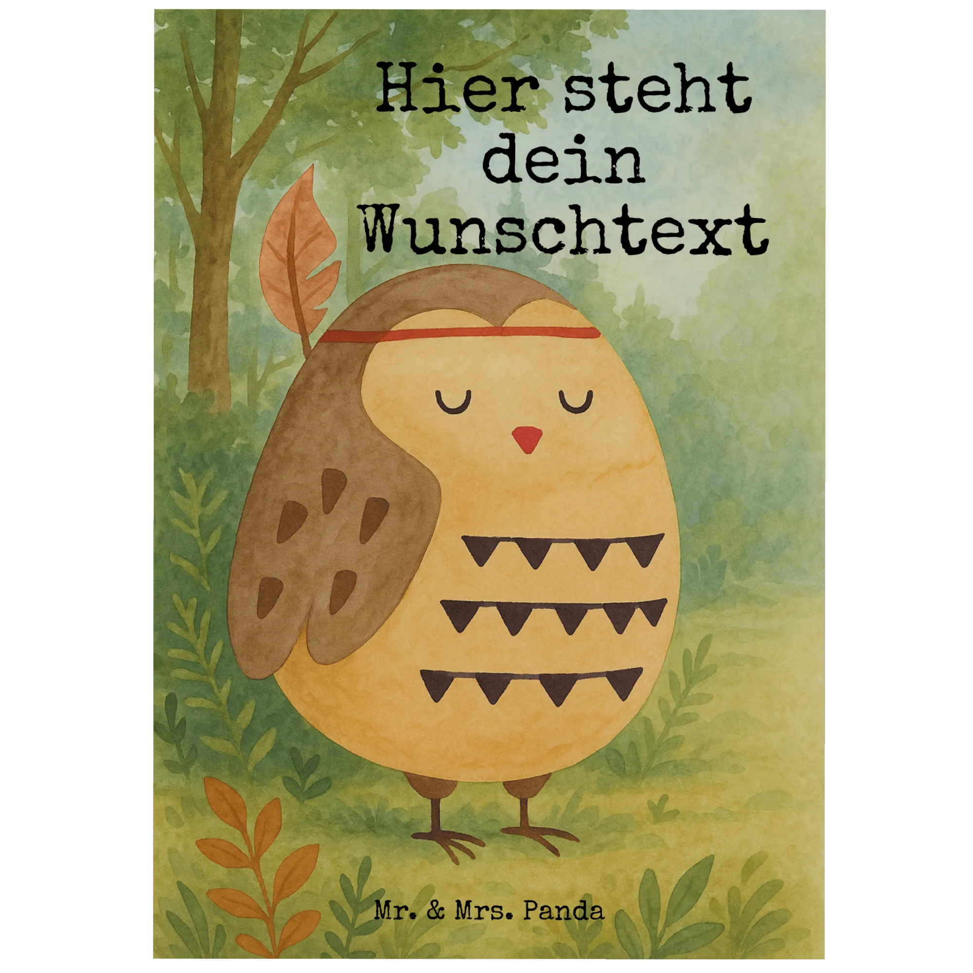 Personalisierte Postkarte „Eule Federschmuck“ – Das Leben ist ein Abenteuer.