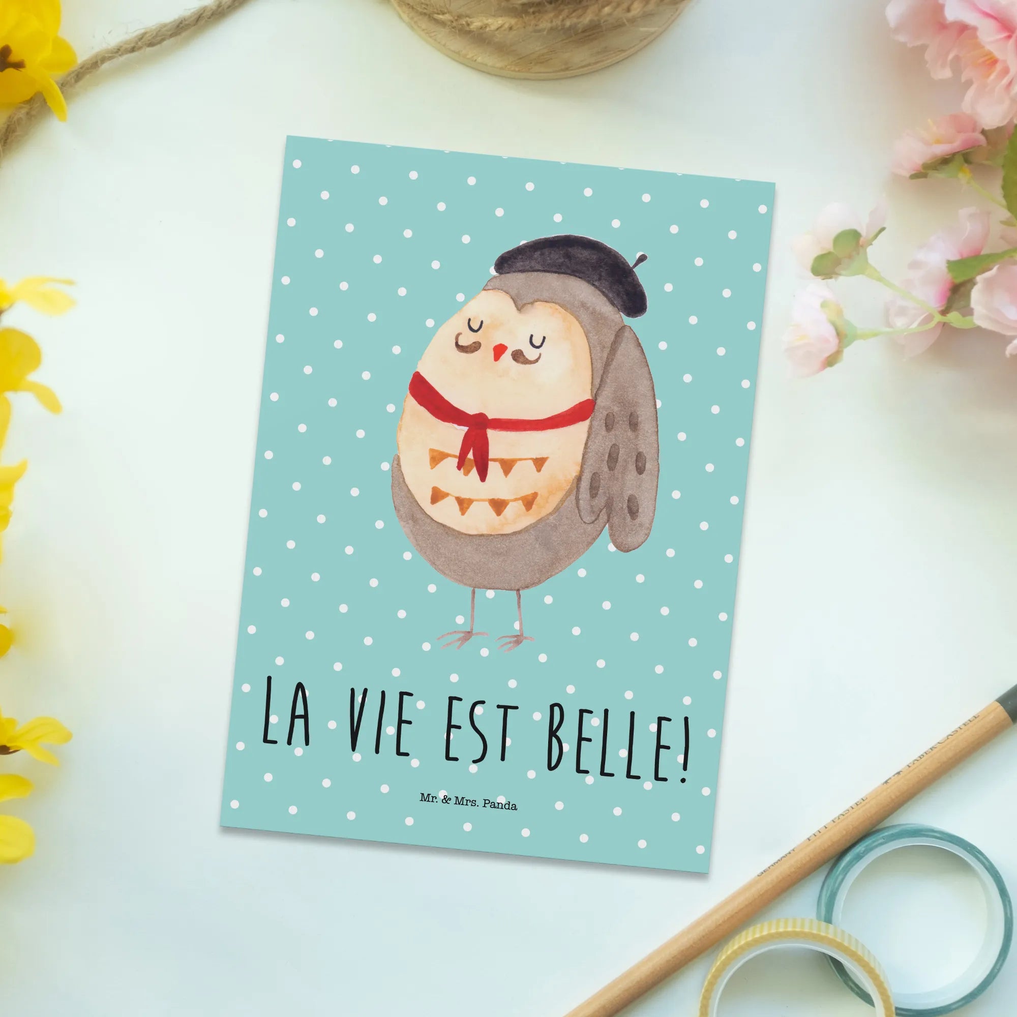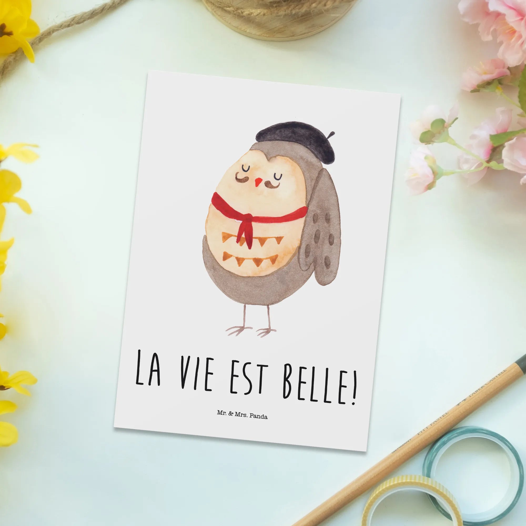 Pocztówka sowa Francja spruchkarte, Fotokarte, Ansichtskarten, Grußkarte, Motivkarte, bildkarte, Designkarte, Kunstkarten, einzelkarte, kunstkarte, Postkarte, Ansichtskarte, Postkarten, Eule, Eulen, Spruch Französisch, Das Leben Ist schön, Owl, Eule Deko, La Vie Est Belle, Spruch schön, Frankreich, Hibou