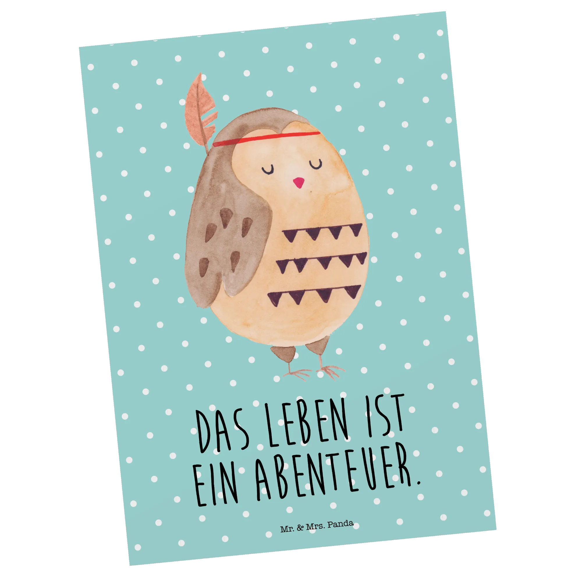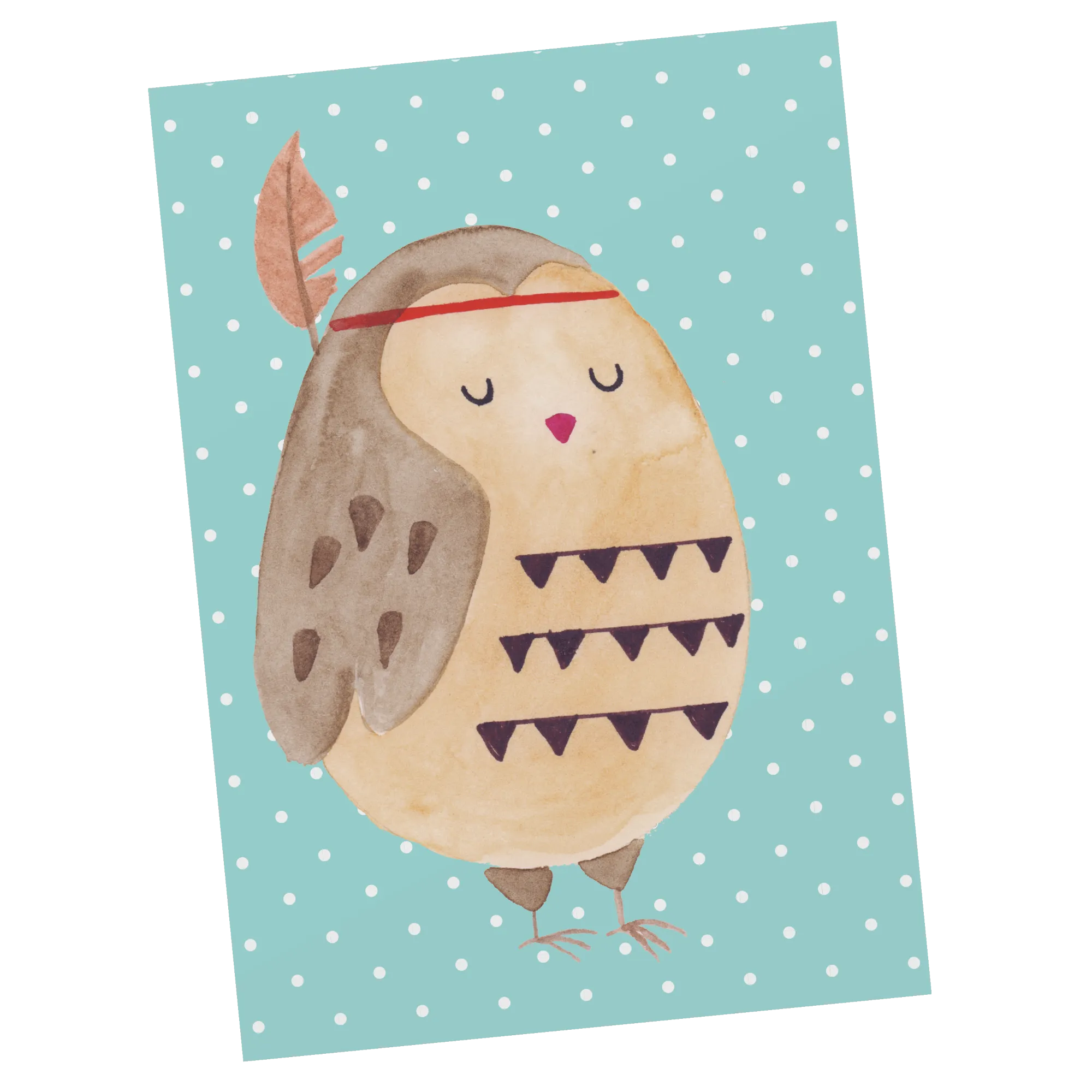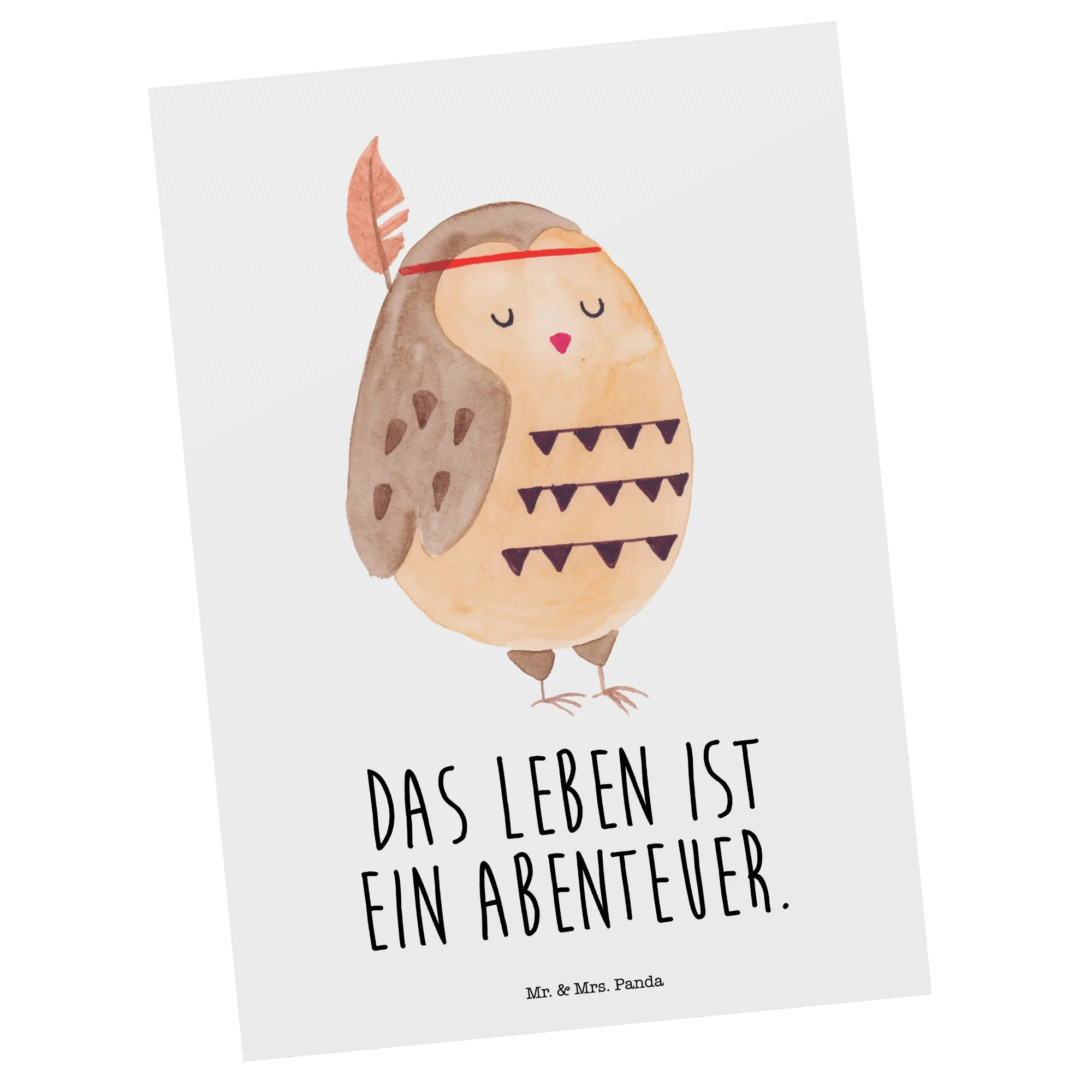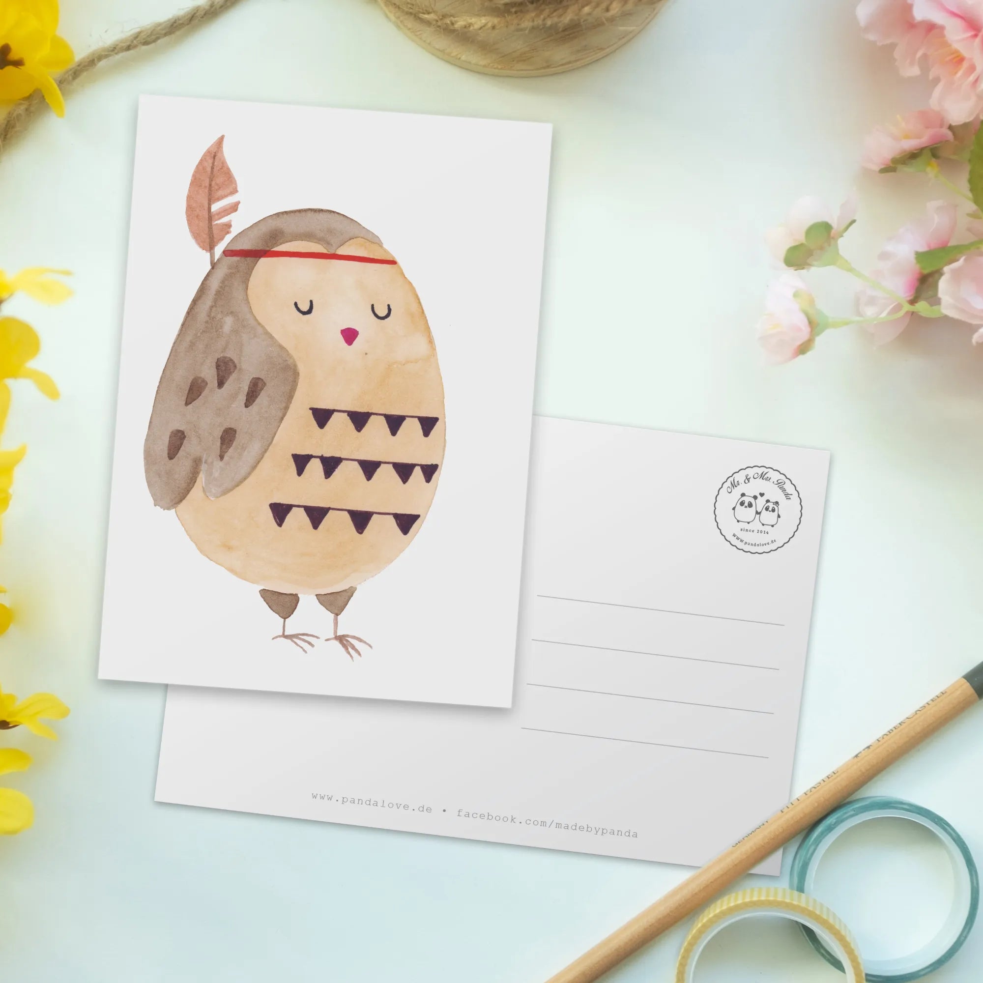 Pocztówka sowa Ozdoba z piór - z napisem - biały