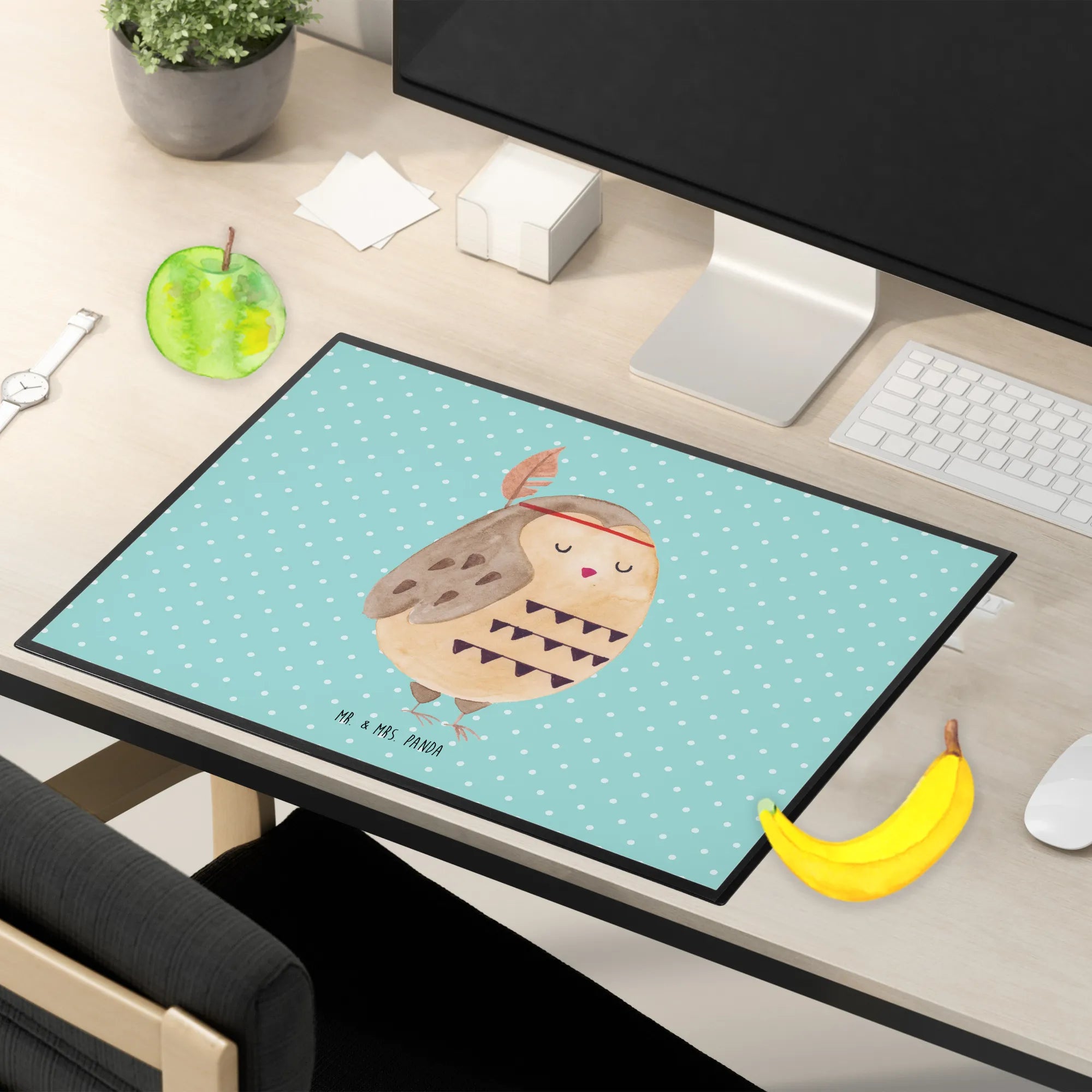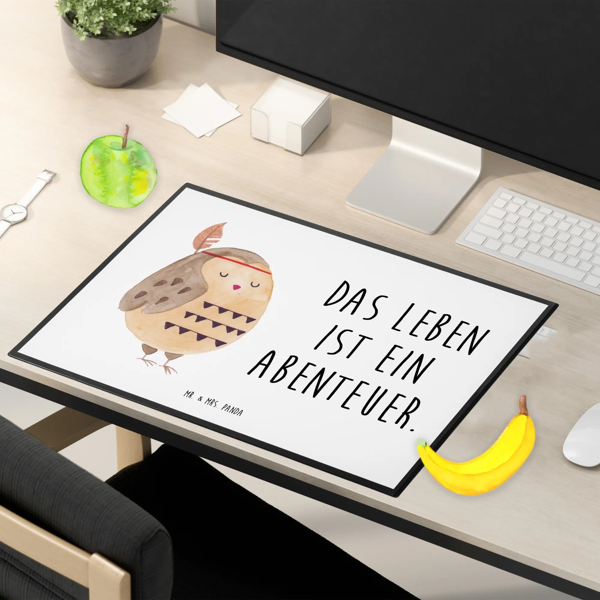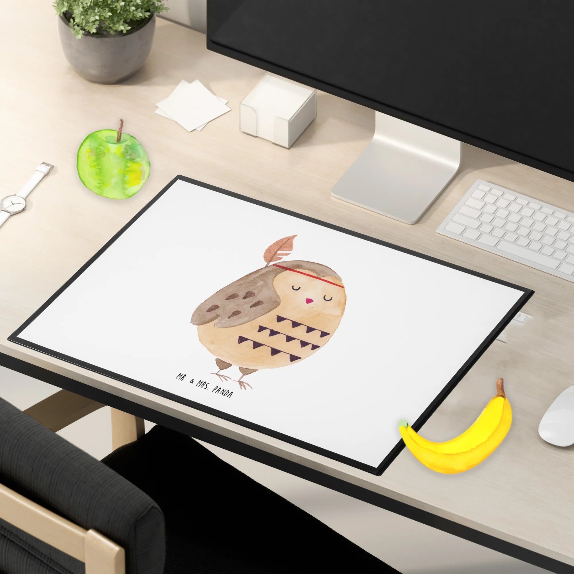 Podkładka na biurko sowa Ozdoba z piór - z napisem - biały