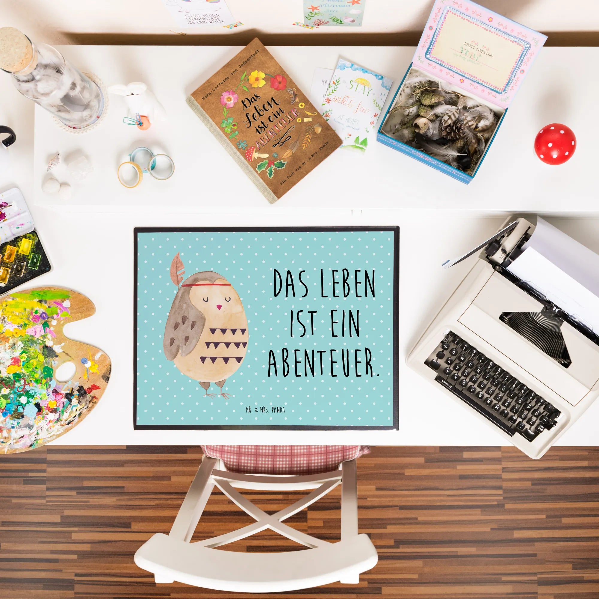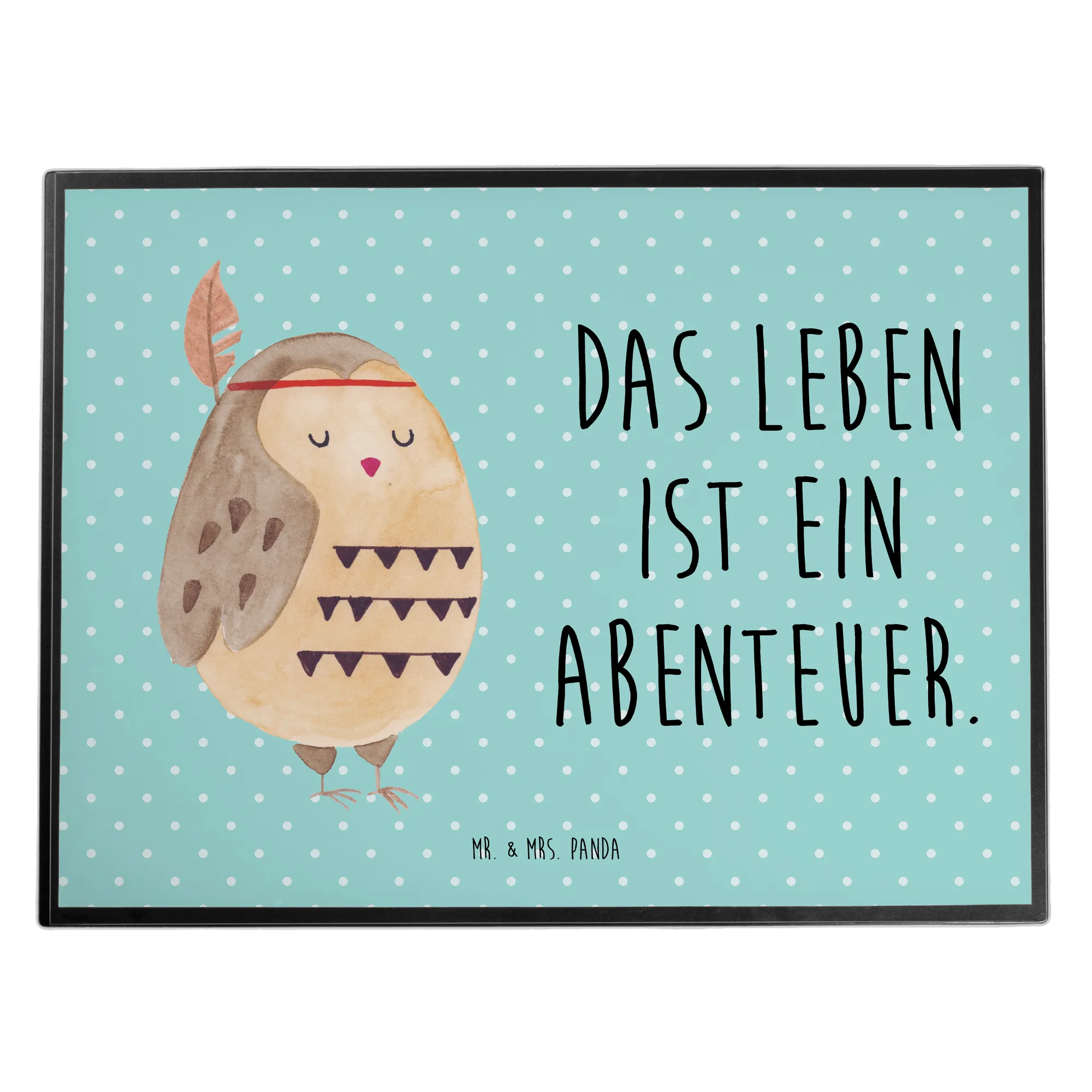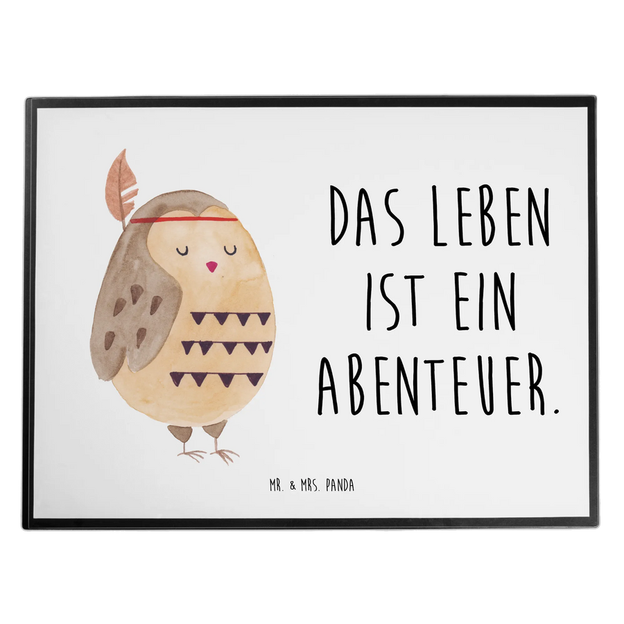 Podkładka na biurko sowa Ozdoba z piór - z napisem - biały