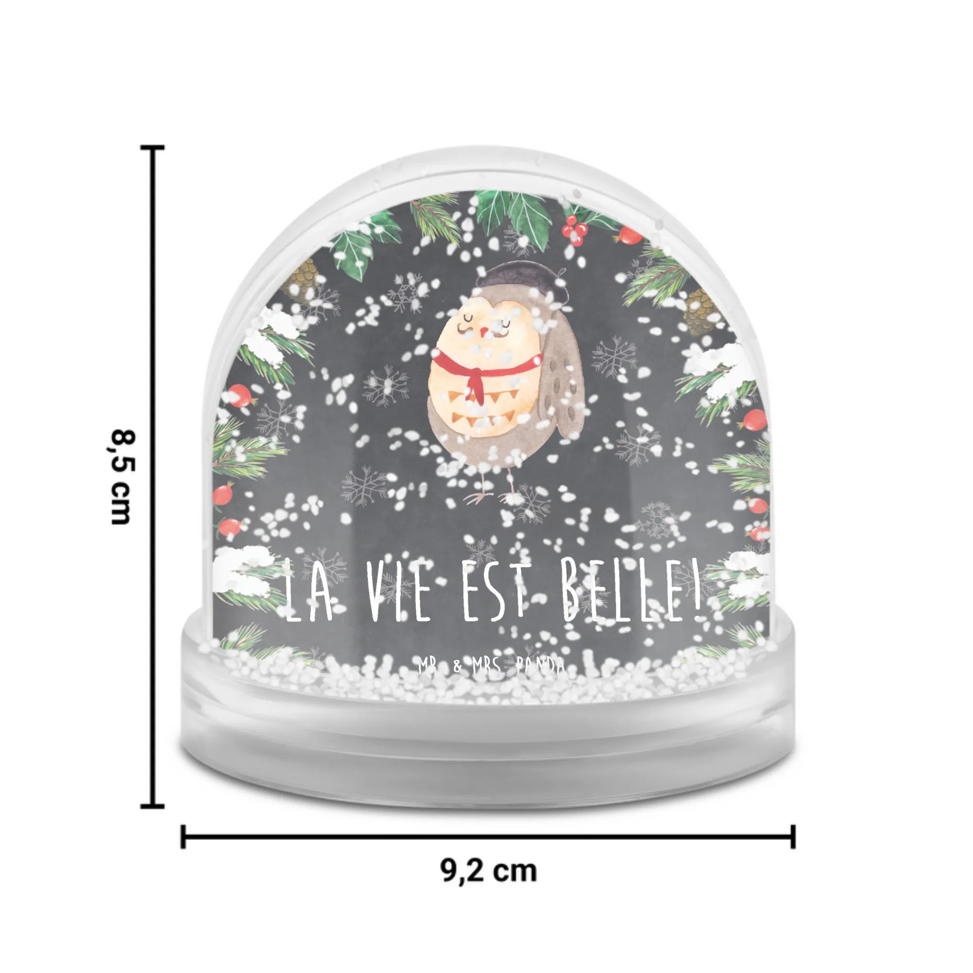 Zauberhafte Schneekugel „Eule Französisch“ – aus der liebevollen Eulen-Kollektion von Mr. & Mrs. Panda. Diese süße Schneekugel zeigt eine elegante Eule im französischen Stil mit Hut, Fliege und Schnurrbart sowie dem fröhlichen Spruch „La vie est belle!“ 🌟. Perfekt als Geschenkidee Schneekugel, als Weihnachtskugel oder einfach als bezaubernde Winterdeko.
