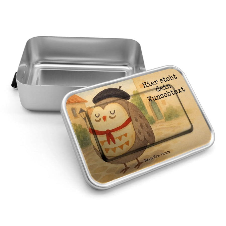 Spersonalizowany metalowy pojemnik na lunch sowa Francja Design - pastelowy turkus