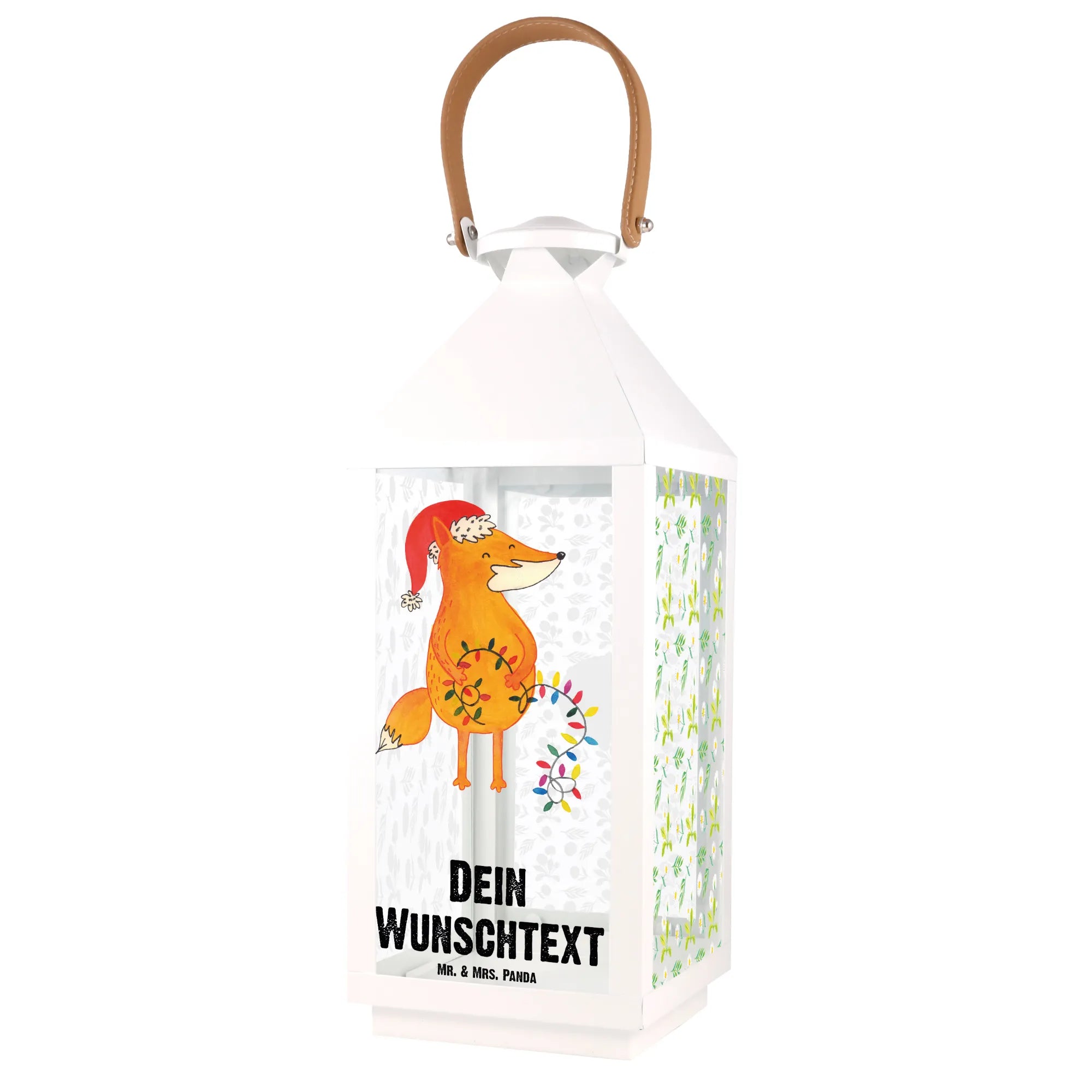 Die personalisierte Deko Laterne "Fuchs Weihnachten" aus der Winter Kollektion von Mr. & Mrs. Panda ist das perfekte Geschenk, um die Vorfreude auf die Weihnachtszeit zu zelebrieren. Mit ihrem fröhlichen Fuchs-Motiv, der eine weihnachtliche Kappe trägt und spielerisch mit einer bunten Lichterkette agiert, bringt sie eine festliche Atmosphäre in jedes Zuhause.