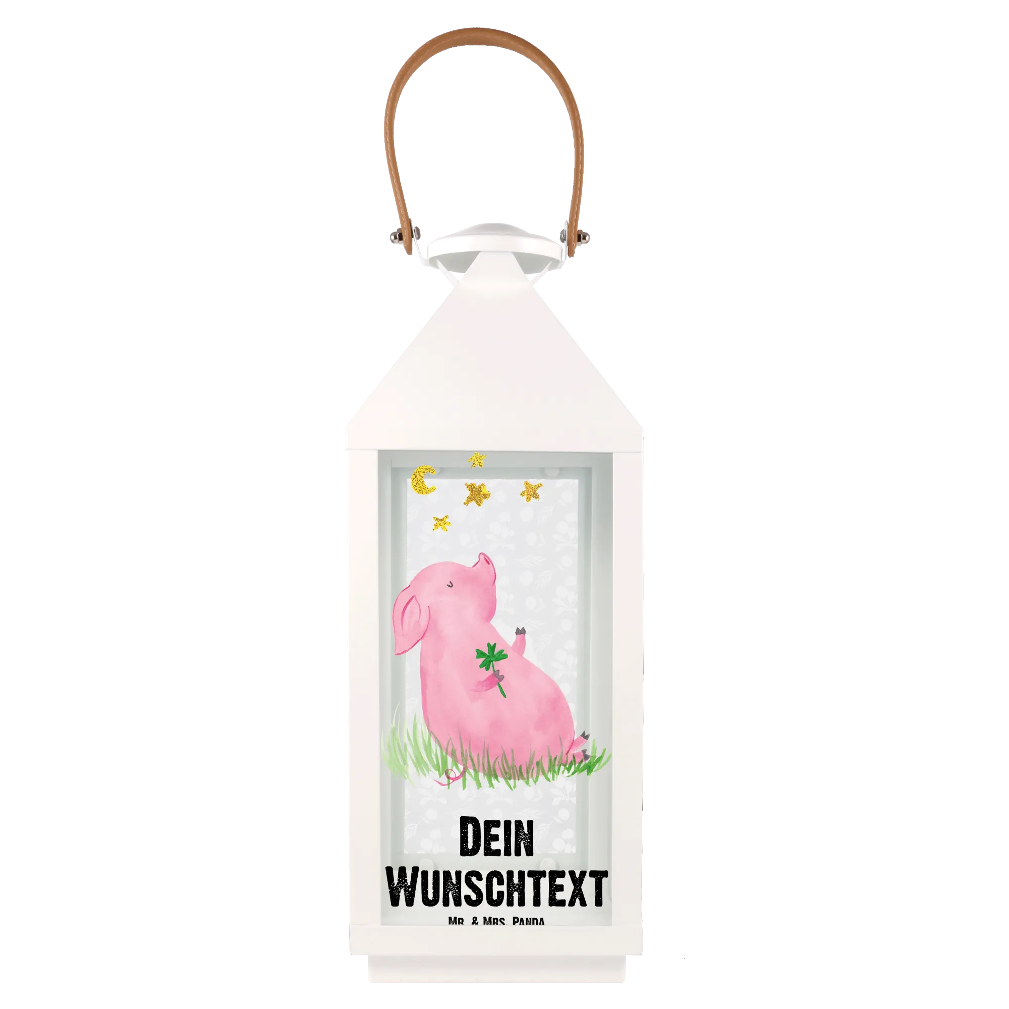 Du bist auf der Suche nach einer besonderen Geschenkidee, die das Herz erfreut und das Zuhause zum Strahlen bringt? Dann ist die personalisierte Deko Laterne Glücksschwein von Mr. & Mrs. Panda genau das Richtige für dich! Mit ihrem einzigartigen Design und der liebevollen Botschaft inspiriert sie dazu, Träume zu verwirklichen und Glück in dein Leben zu bringen. Die Laterne zeigt ein niedliches Glücksschwein, das ein Kleeblatt in der Hand hält – ein echtes Symbol für Glück und Zufriedenheit. Diese charmante Lichtquelle ist mehr als nur eine Gartenlampe; sie ist ein Glücksbringer, der jedem Raum eine warmherzige Note verleiht.