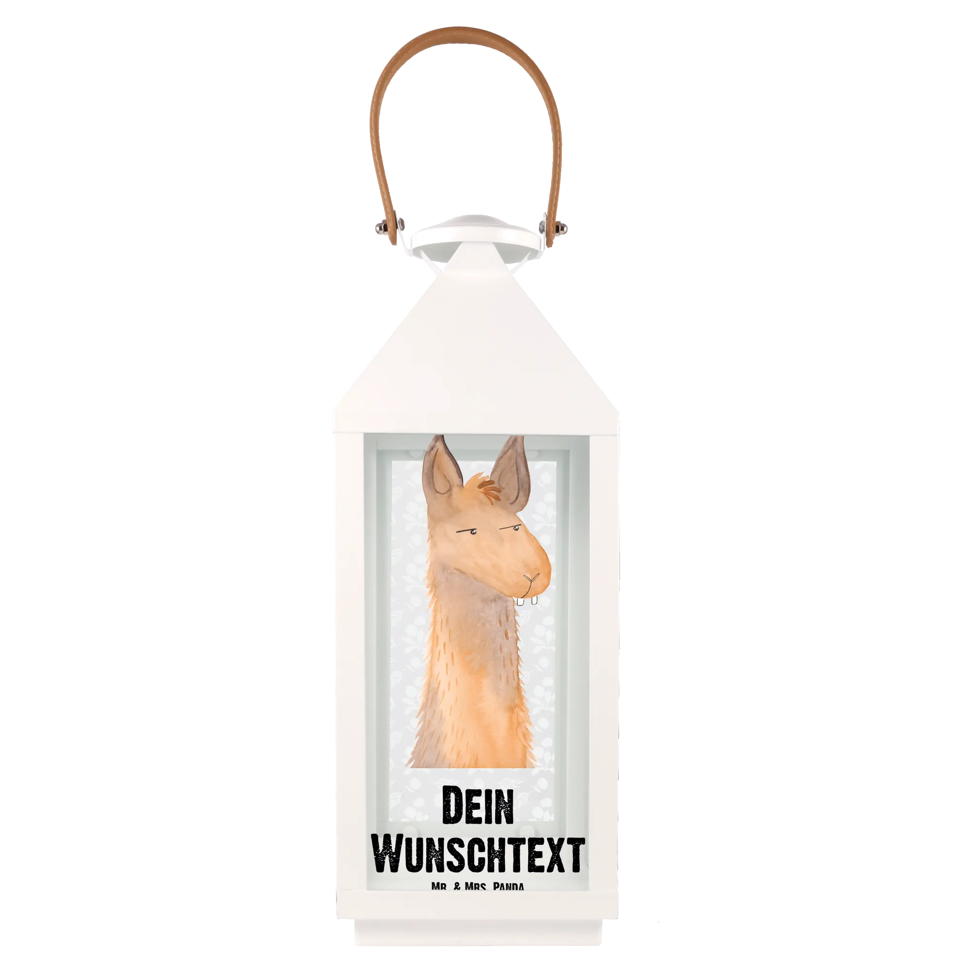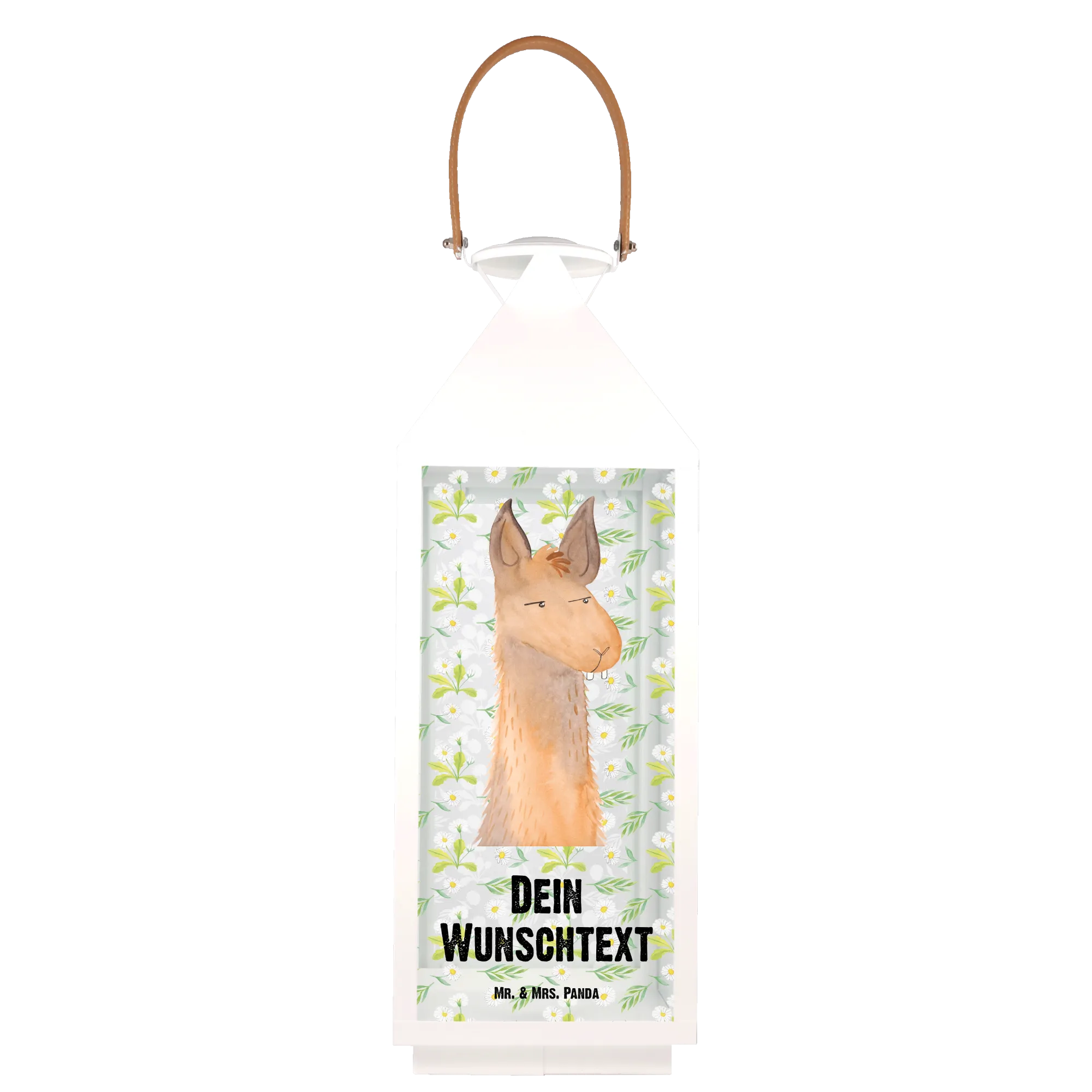Die personalisierte Deko Laterne mit dem Lamakopf "genervt" aus der Lama-Kollektion von Mr. & Mrs. Panda ist die perfekte Gartendekoration, um deinem Außenbereich eine einzigartige Note zu verleihen. Mit einem liebevoll designten Lamakopf, der genervt zur Seite blickt, bringt diese Laterne nicht nur Licht, sondern auch eine charmante Botschaft in deine Gartenlandschaft.