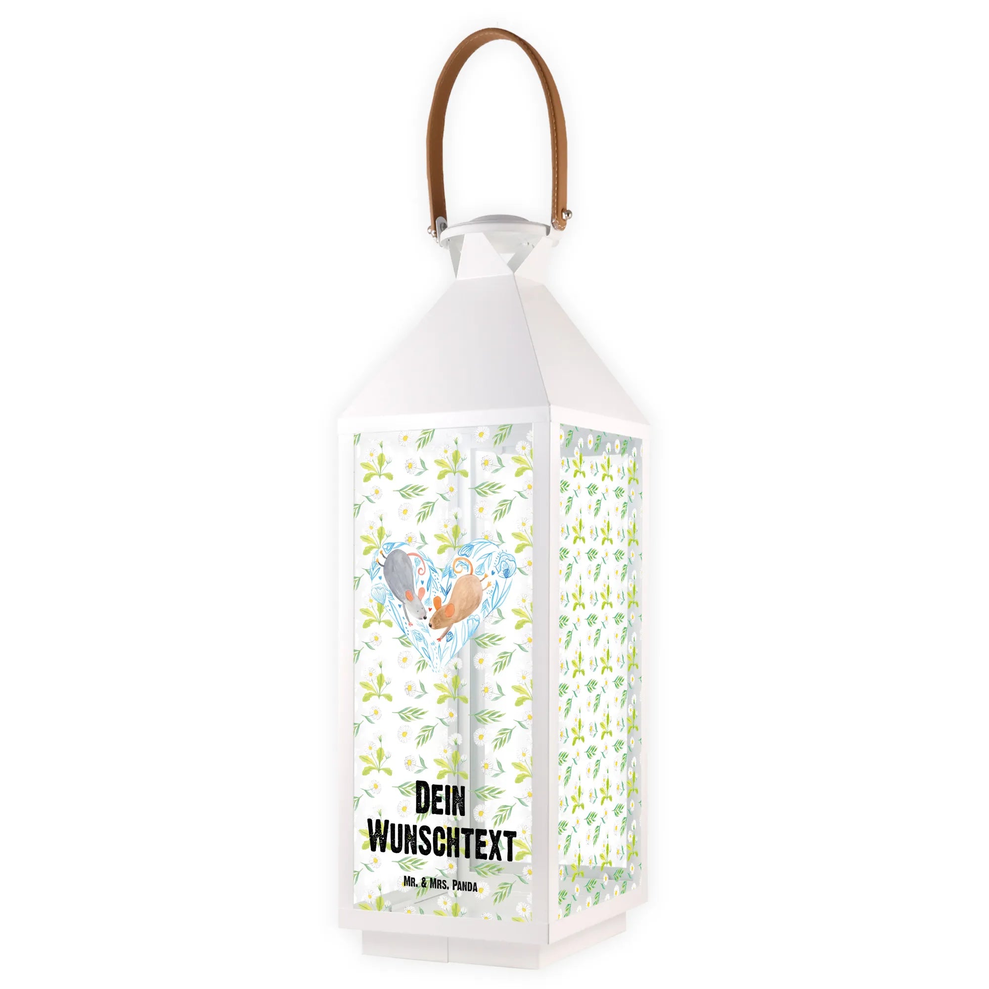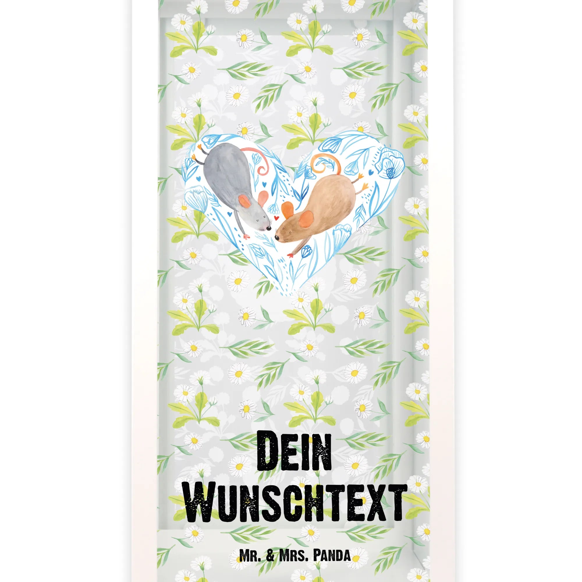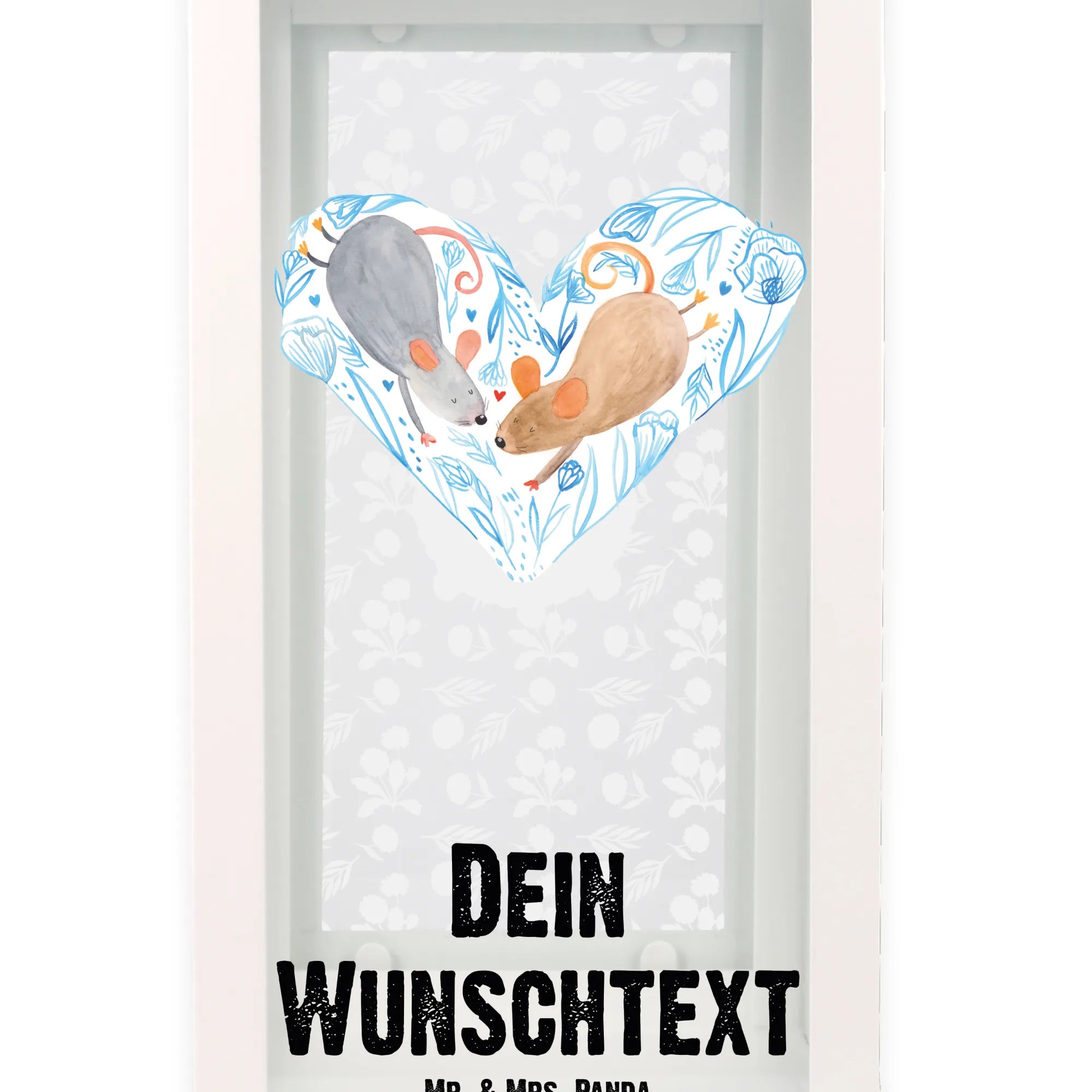 Die personalisierte Deko Laterne Mäuse Herz aus der Liebe Kollektion von Mr. & Mrs. Panda ist das perfekte Geschenk für alle, die ihre Liebe stilvoll zelebrieren möchten. Diese wunderschöne Laterne ist nicht nur eine tolle Gartendekoration, sondern auch eine bezaubernde Möglichkeit, Deine Zuneigung zum Ausdruck zu bringen. Mit ihrem zauberhaften Motiv von zwei süßen Mäusen, die ein Herz formen, vermittelt sie eine romantische Botschaft: 'Wir zwei gegen den Rest der Welt.'