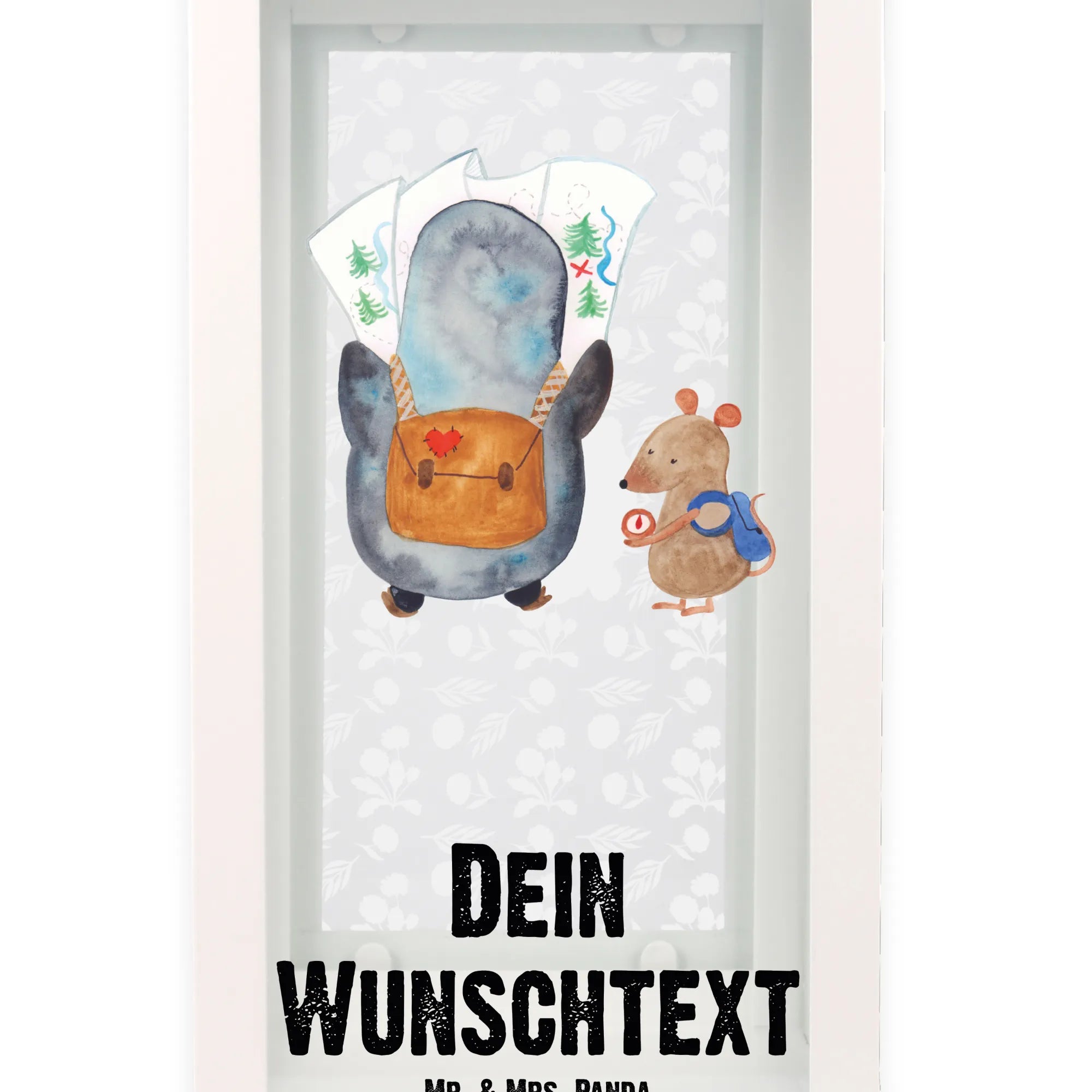 Personalisiertes Windlicht Pinguin & Maus Wanderer - S