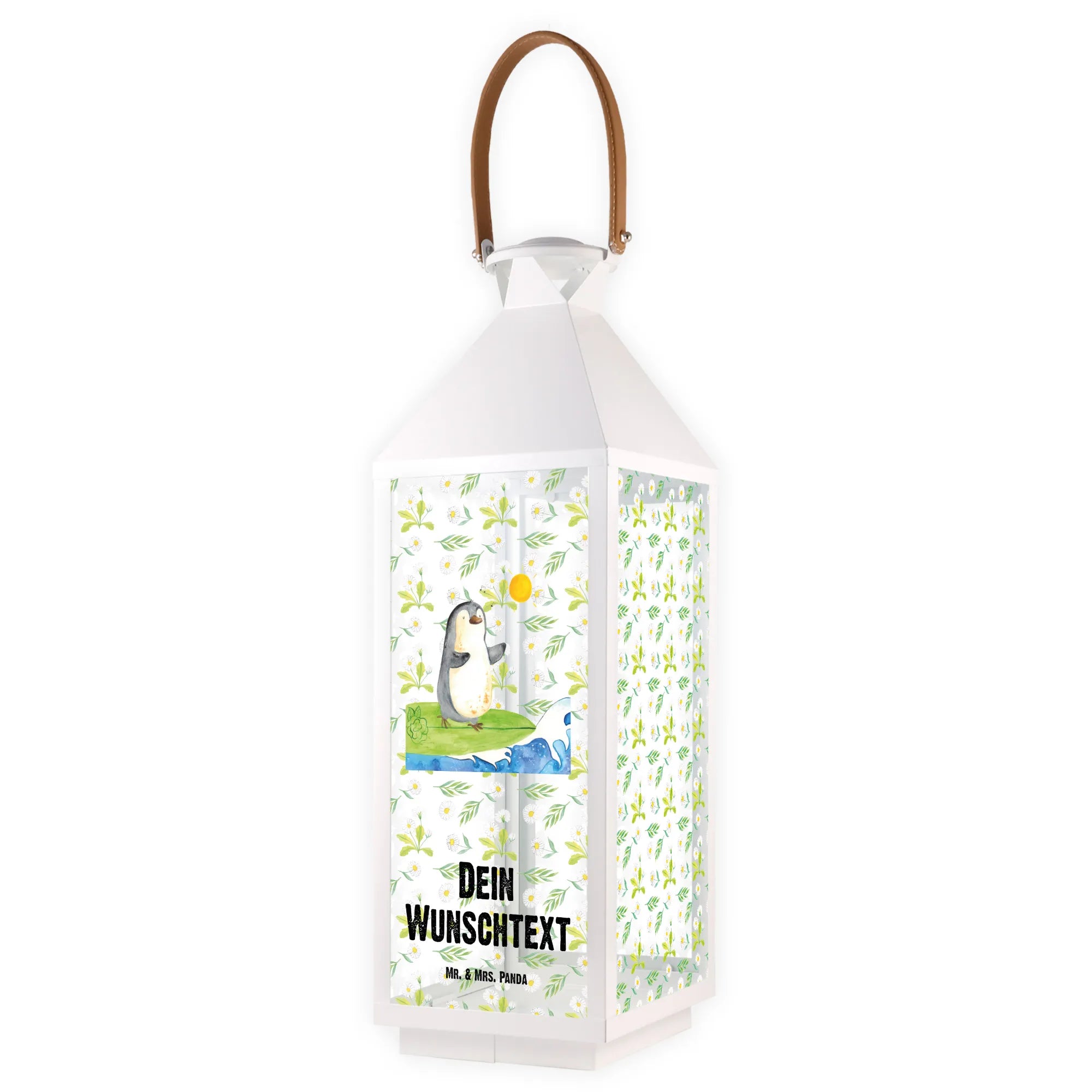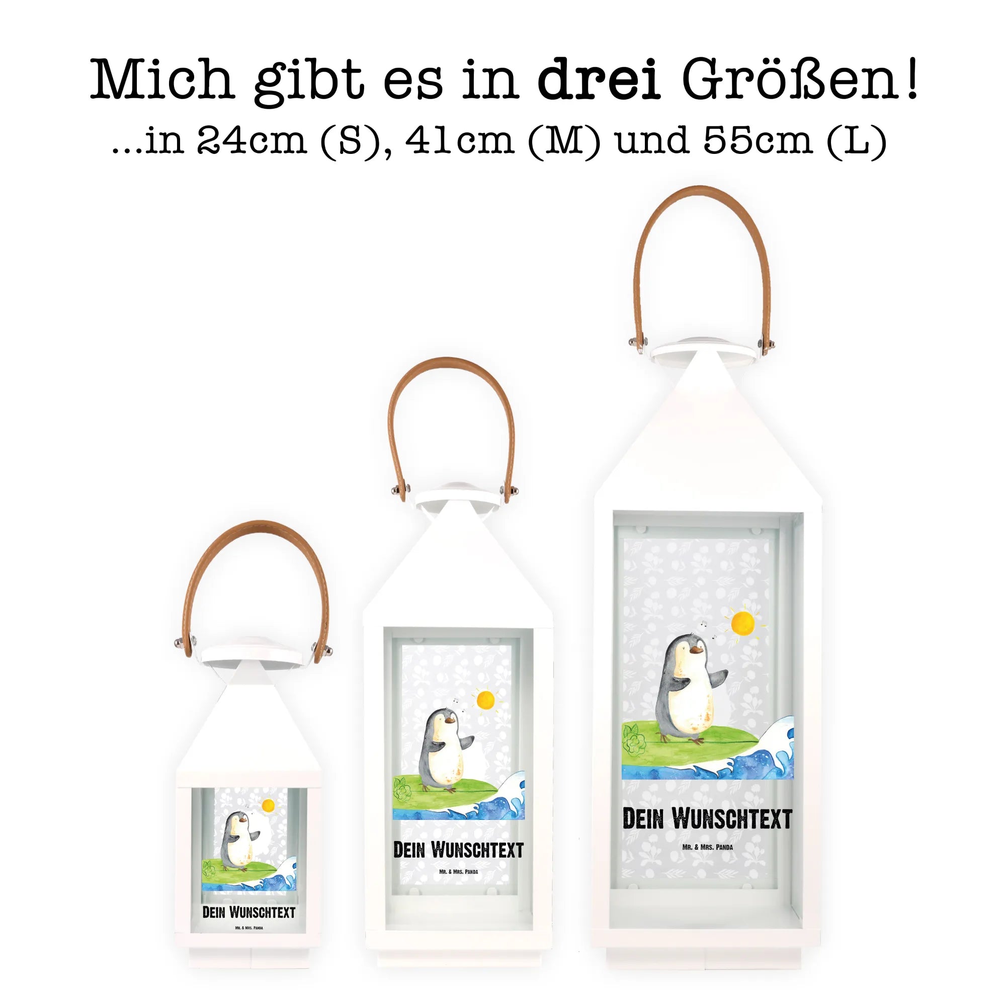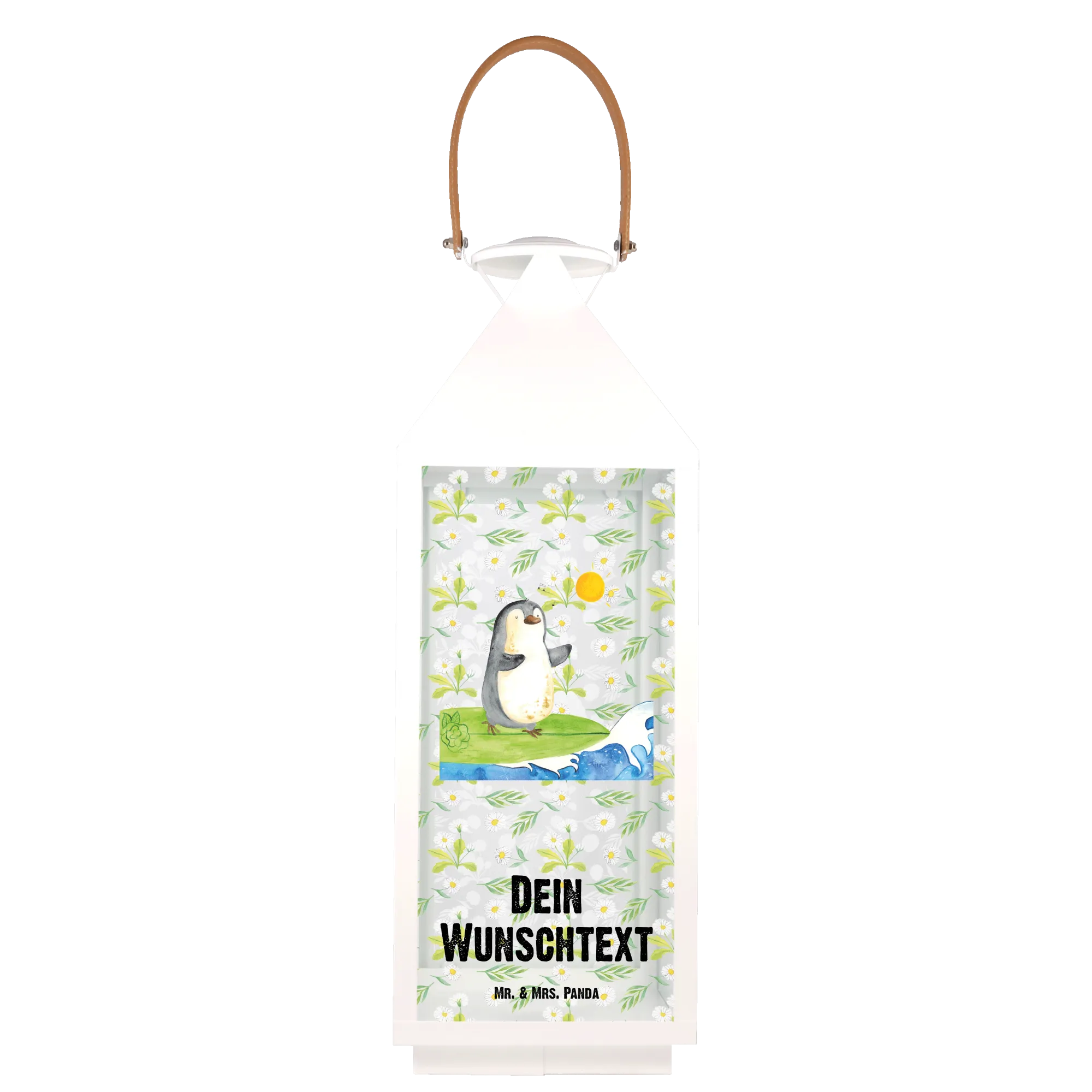 Entdecke die wunderschöne personalisierte Deko Laterne mit dem süßen Motiv des Pinguin Surfers aus der Pinguin-Kollektion von Mr. & Mrs. Panda. Diese charmante Laterne ist nicht nur ein echter Hingucker in Deinem Garten, sondern trägt auch zur Gemütlichkeit Deiner Terrasse oder Deines Balkons bei. Hergestellt aus hochwertigem, langlebigem Metall und feinem Glas, strahlt sie nicht nur Stil, sondern auch Wärme aus, egal ob Du sie drinnen oder draußen verwendest.