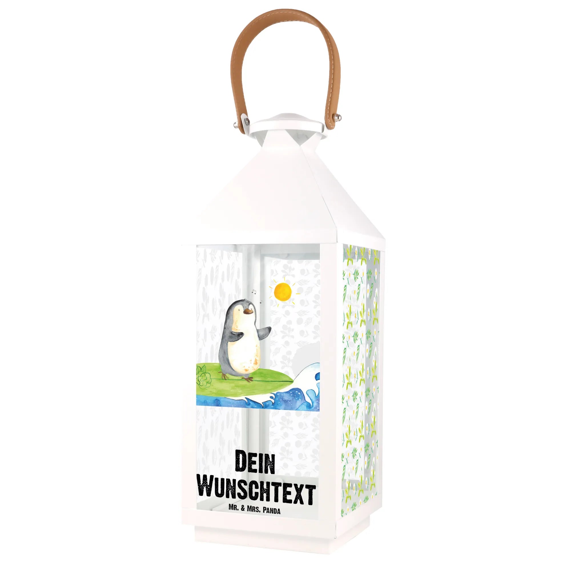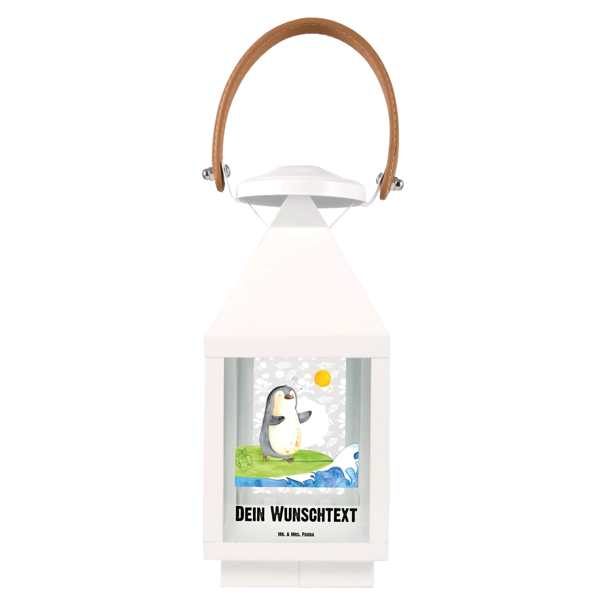 Die personalisierte Deko Laterne im süßen Pinguin Surfer Design ist das perfekte Geschenk für alle, die das Leben in vollen Zügen genießen. Mit einem liebevoll handgezeichneten Motiv zeigt sie einen coolen Pinguin, der auf seinem Surfbrett die Wellen reitet. Egal, ob Du die Laterne für Deinen eigenen Garten nutzen möchtest oder sie als Geschenk für einen Pinguin-Liebhaber suchst - dieses Stück entführt Dich an die schönsten Strände und sorgt für eine entspannte Urlaubsstimmung.