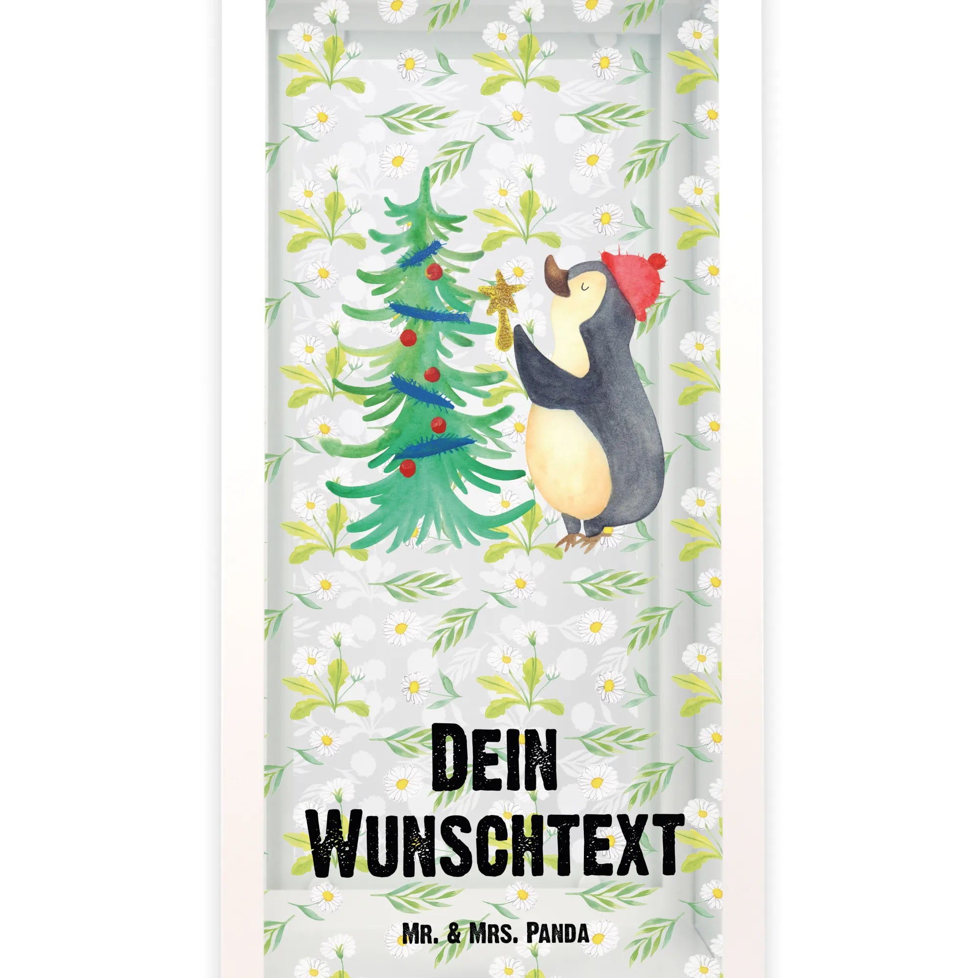 Die personalisierte Deko Laterne mit dem niedlichen Pinguin und dem Weihnachtsbaum aus der Winter Kollektion von Mr. & Mrs. Panda ist der perfekte Begleiter für die besinnliche Zeit des Jahres! Diese liebevoll gestaltete Laterne bringt nicht nur Licht in dein Zuhause, sondern auch eine ganz besondere Atmosphäre.