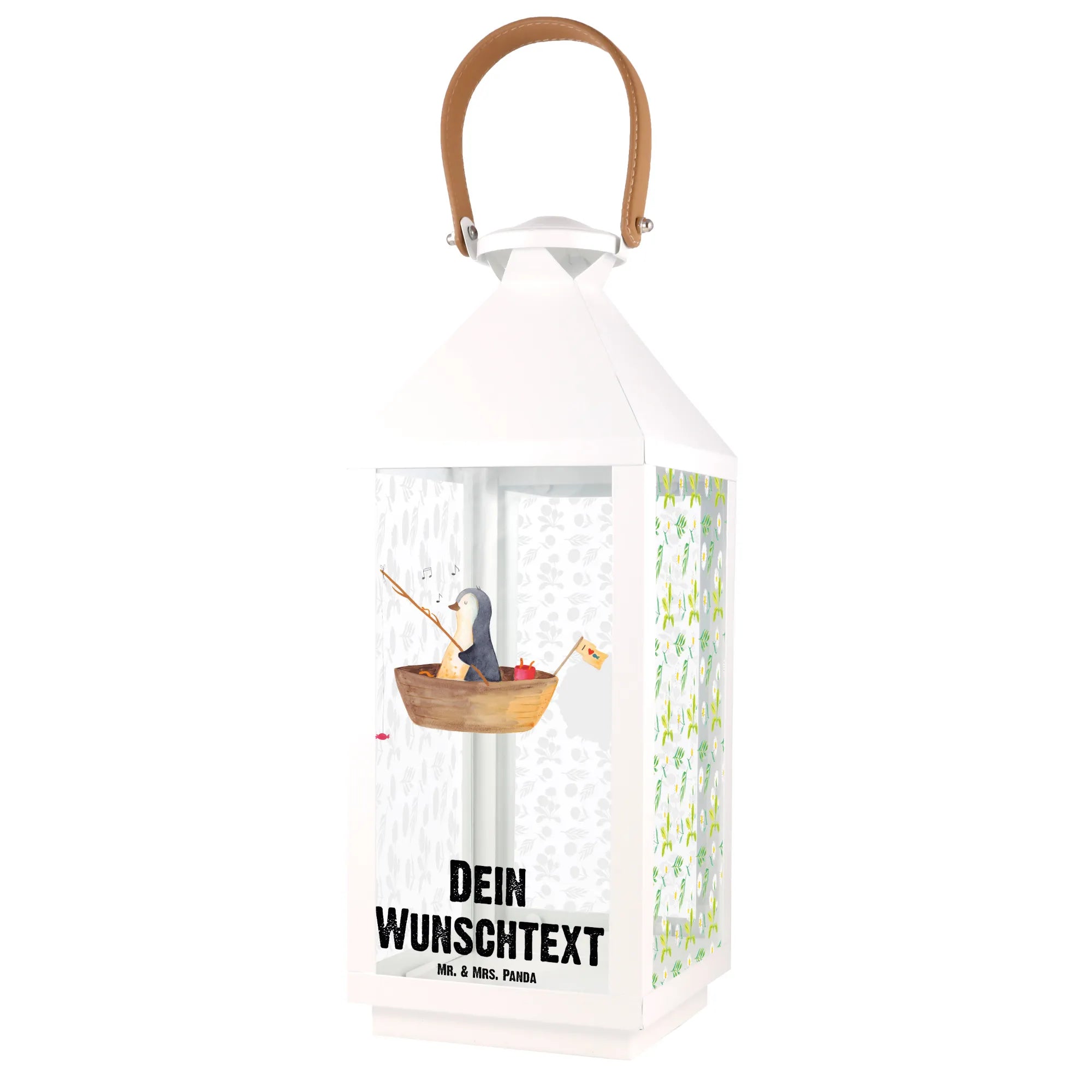 Spersonalizowana dekoracyjna latarnia pingwin łódka wędkarska - S