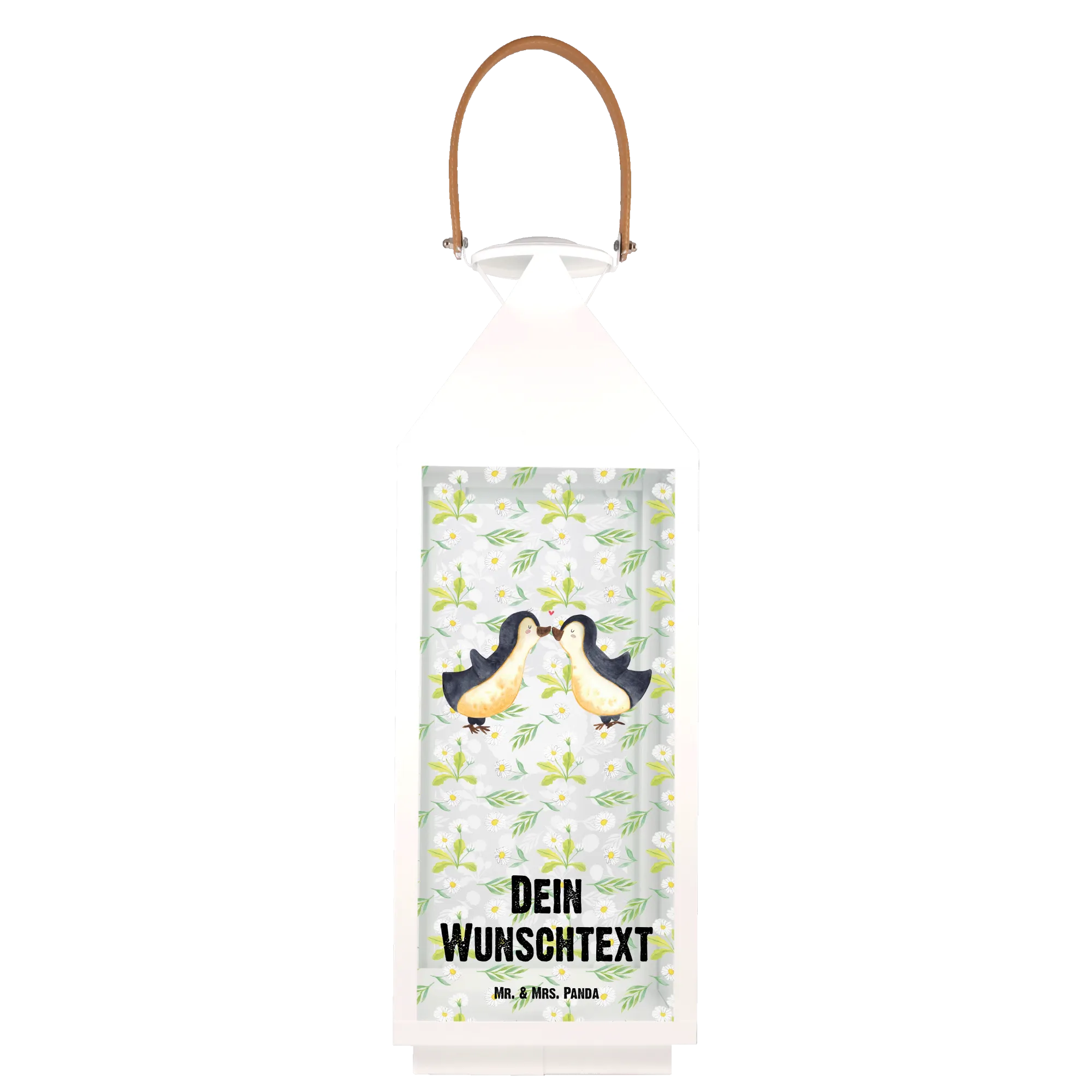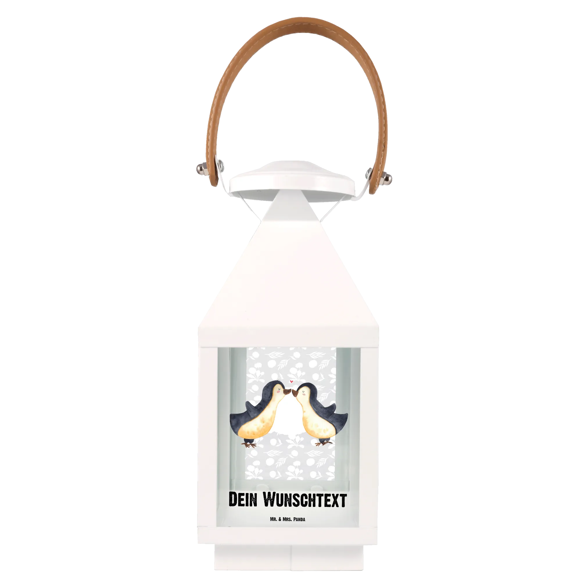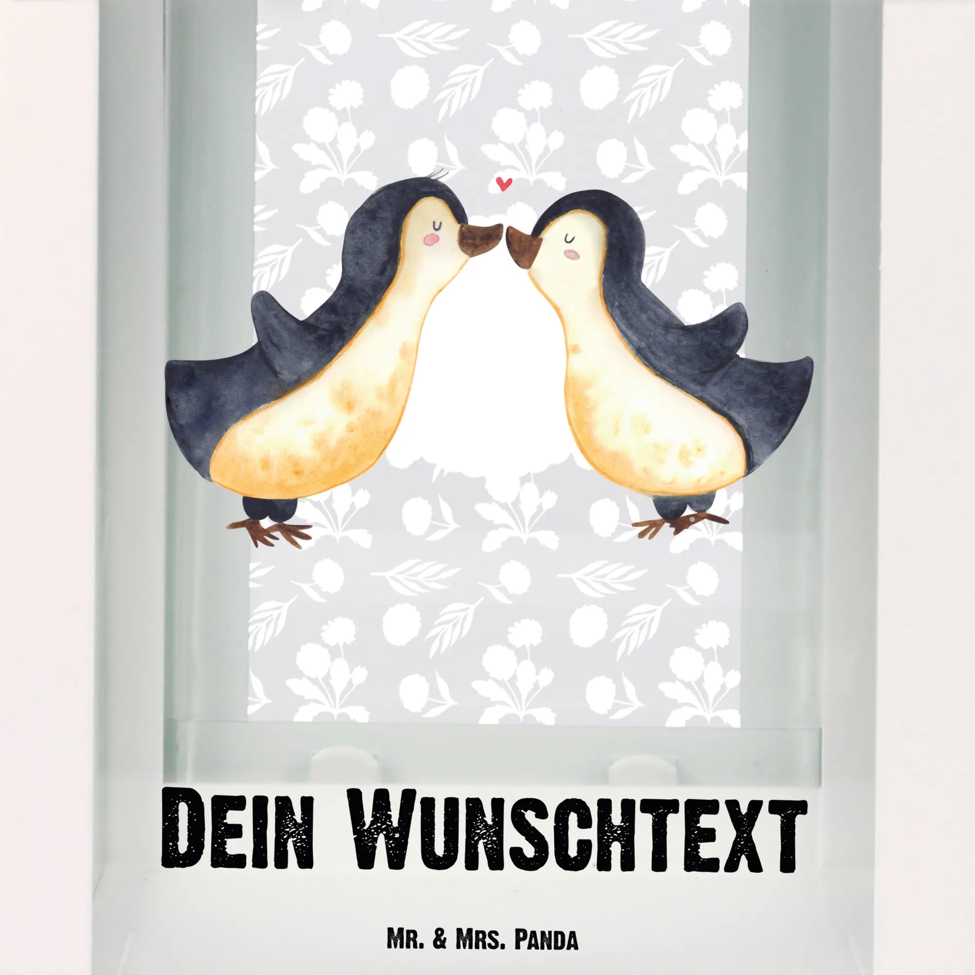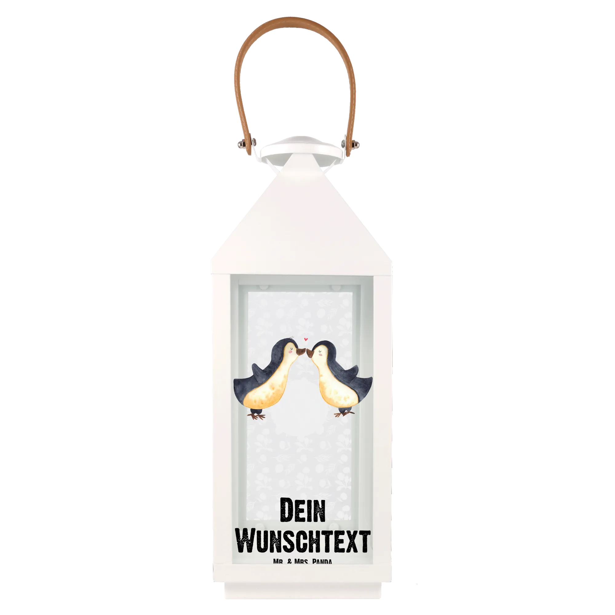 Spersonalizowana dekoracyjna latarnia Pingwiny Pocałunek - S