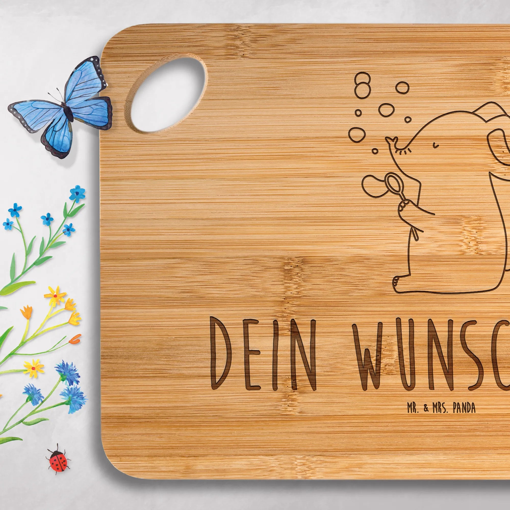 Entdecke das perfekte personalisierte Schneidebrett mit dem zauberhaften Motiv 'Elefant Seifenblasen' aus der Kollektion Small World von Mr. & Mrs. Panda!