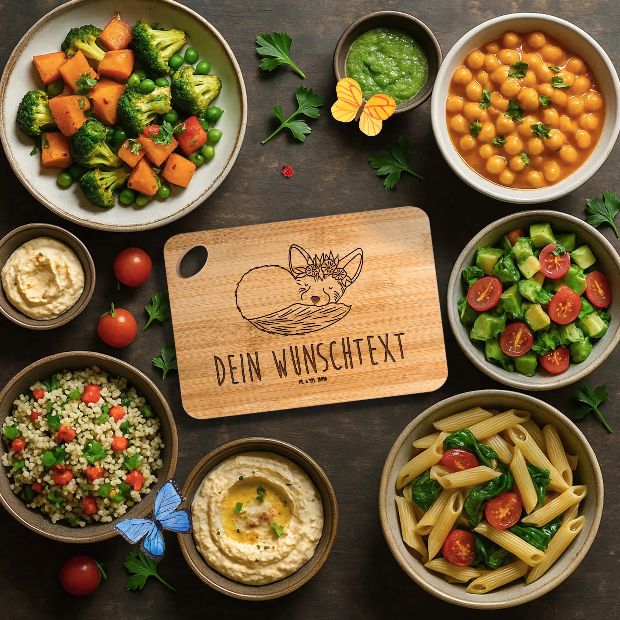 Entdecke das personalisierte Schneidebrett mit dem süßen Wüstenfuchs Blumenkranz aus der Afrika Kollektion von Mr. & Mrs. Panda! Dieses einzigartige und stabile Bambus Schneidebrett ist nicht nur ein praktisches Küchenutensil, sondern auch ein wunderbares Geschenk für alle, die die exotische Tierwelt Afrikas lieben oder einfach Freude an individuellen Geschenkideen haben.