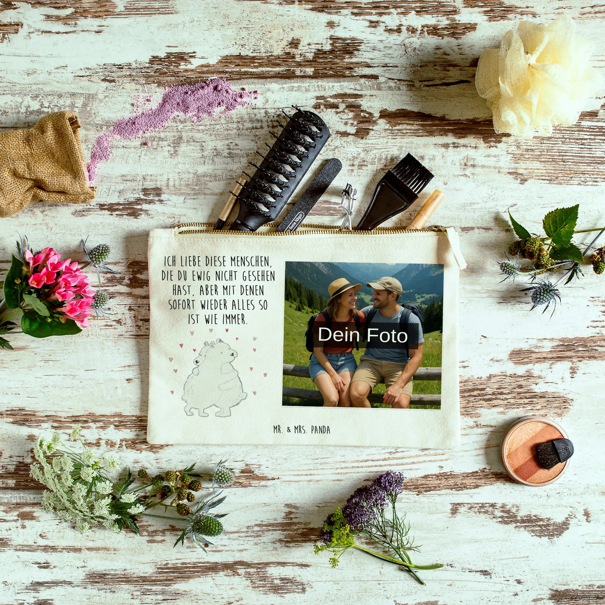 Personalisierte Foto Schminktasche Eisbär Umarmen – Mr. & Mrs. Panda