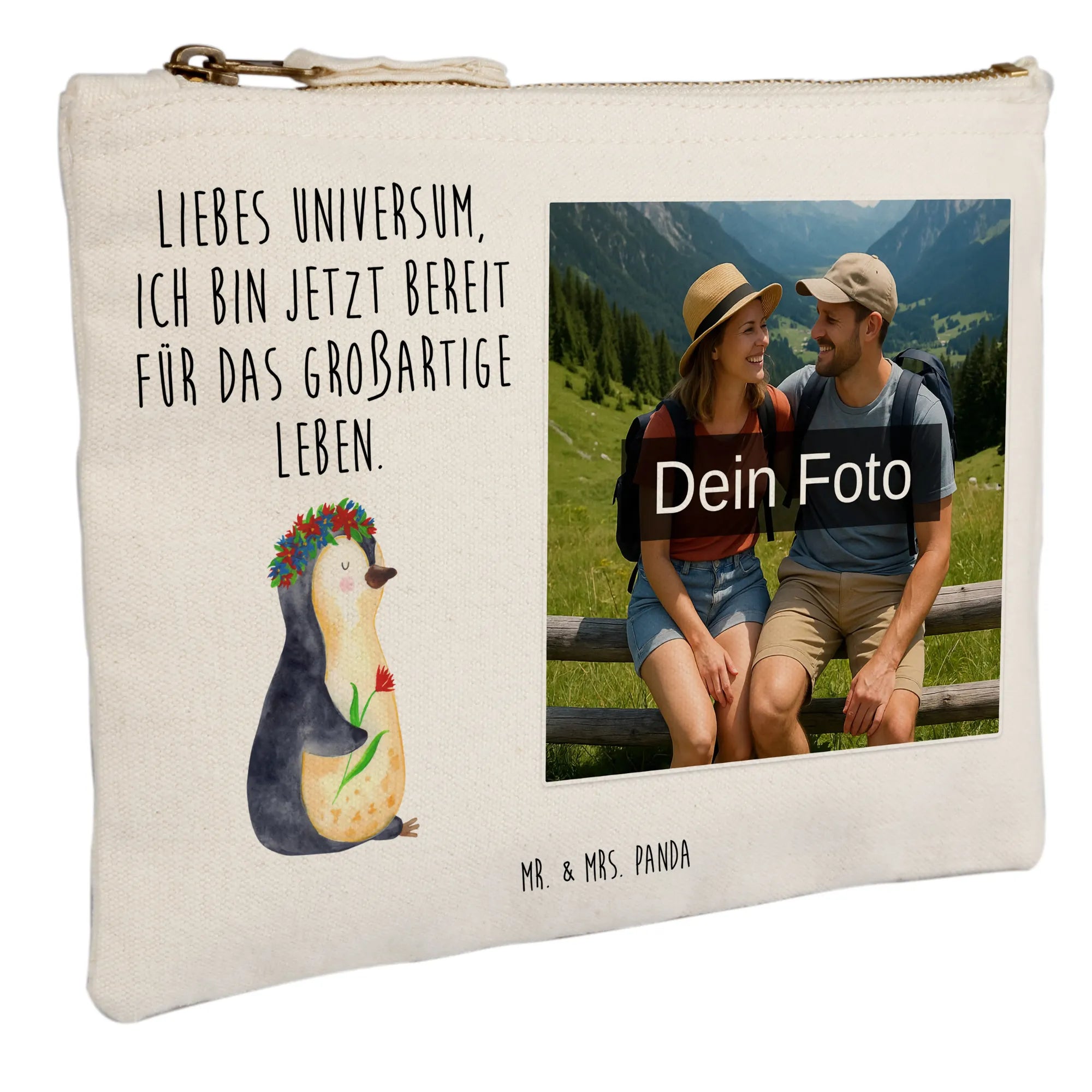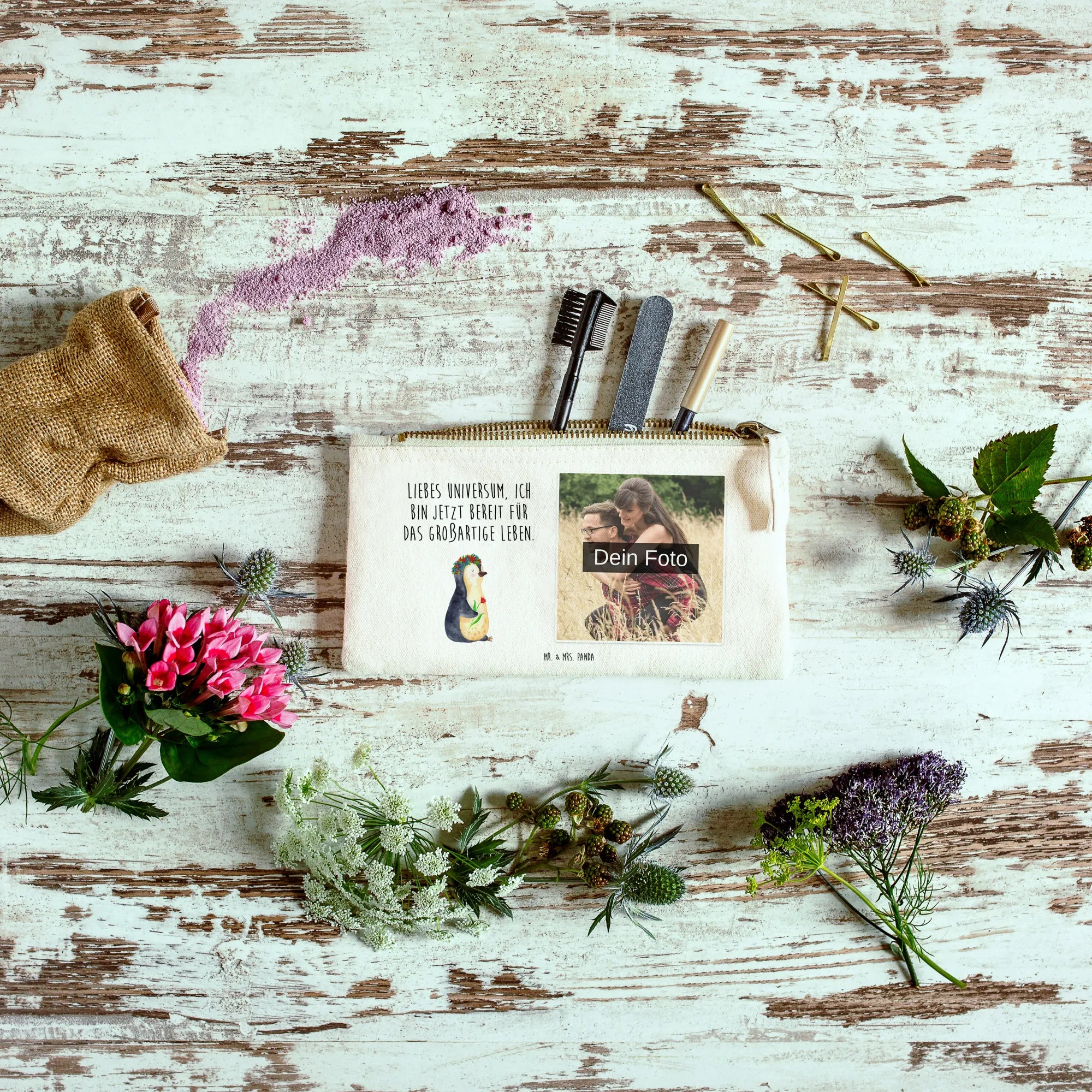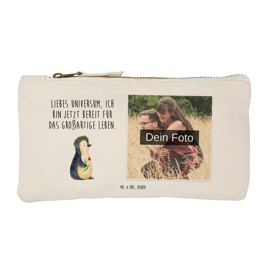 Personalisierte Foto Schminktasche Pinguin Blumen - Größe S Klein