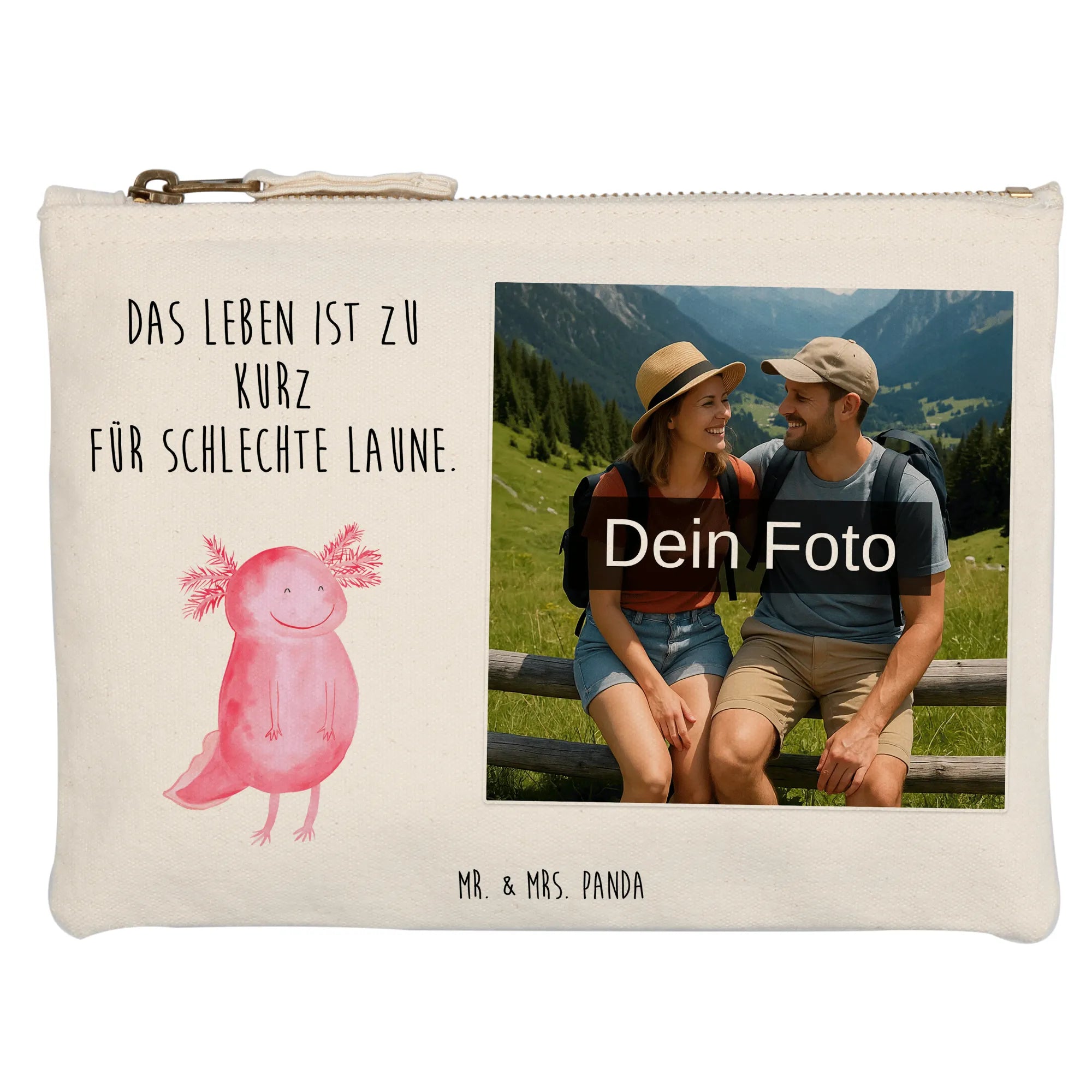 Spersonalizowana kosmetyczka ze zdjęciem Aksolotl Szczęśliwy - Größe S Klein