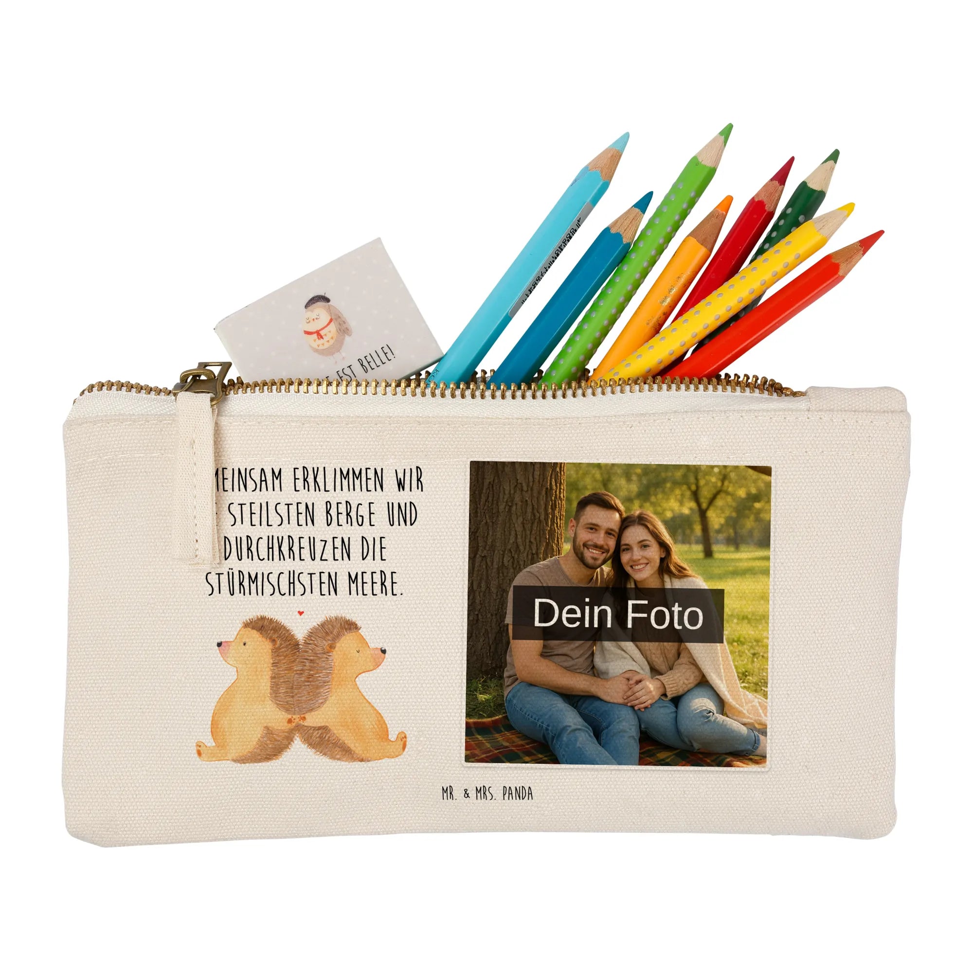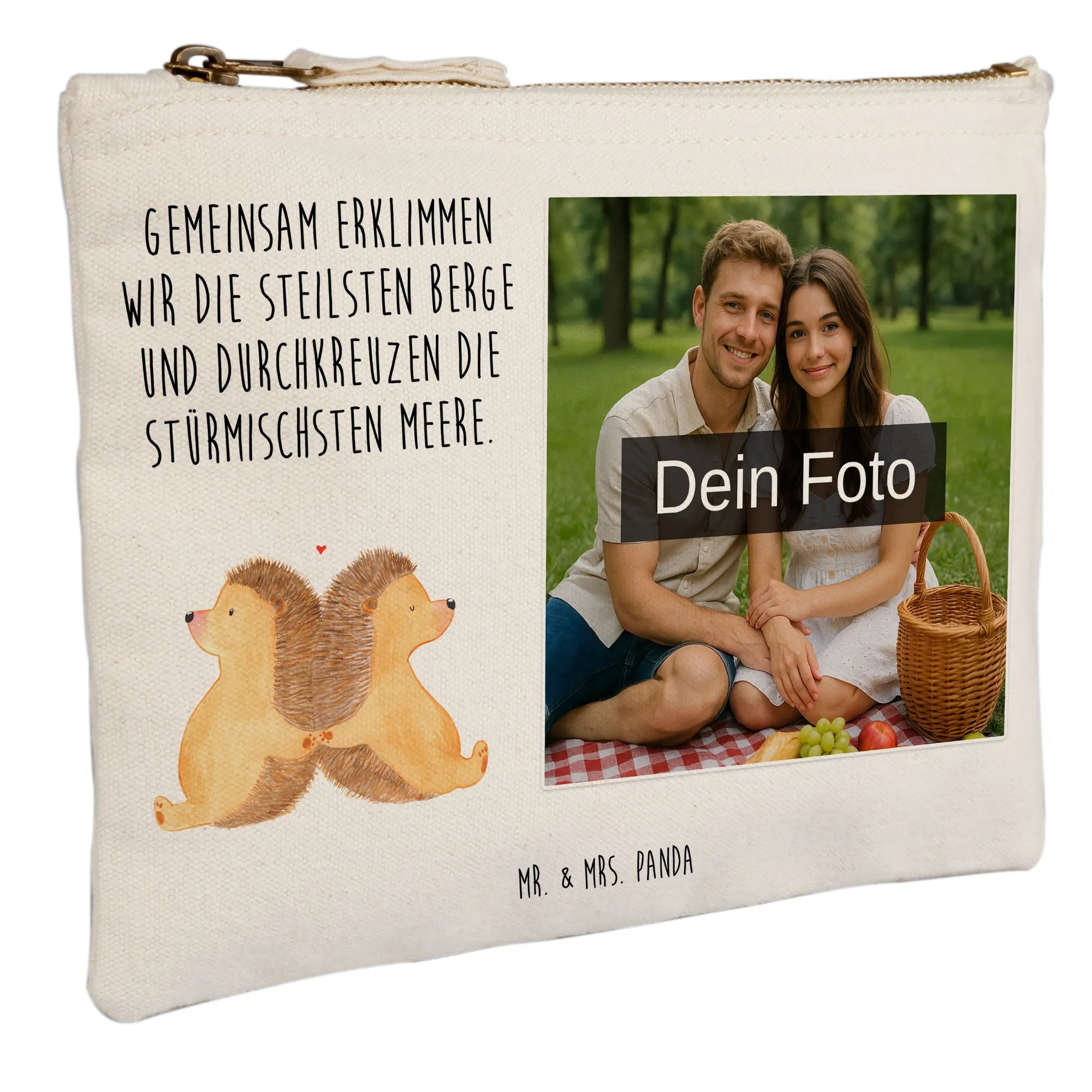 Spersonalizowana kosmetyczka ze zdjęciem Jeże trzymające się za łapki - Größe S Klein
