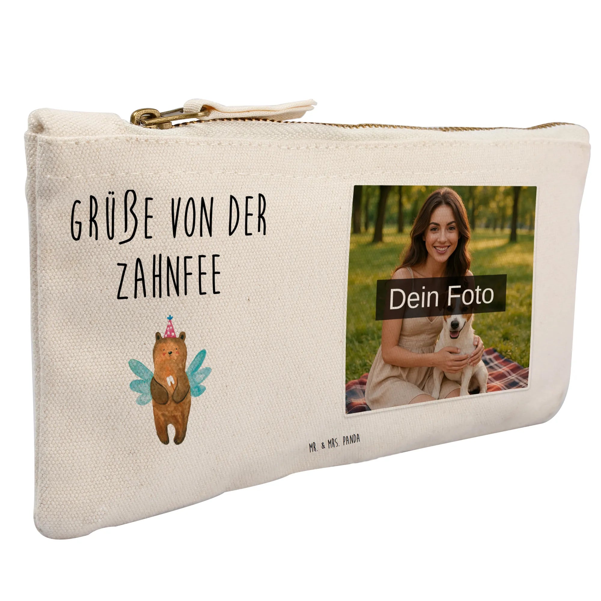 Spersonalizowana kosmetyczka ze zdjęciem niedźwiedź Wróżka zębów - Größe S Klein